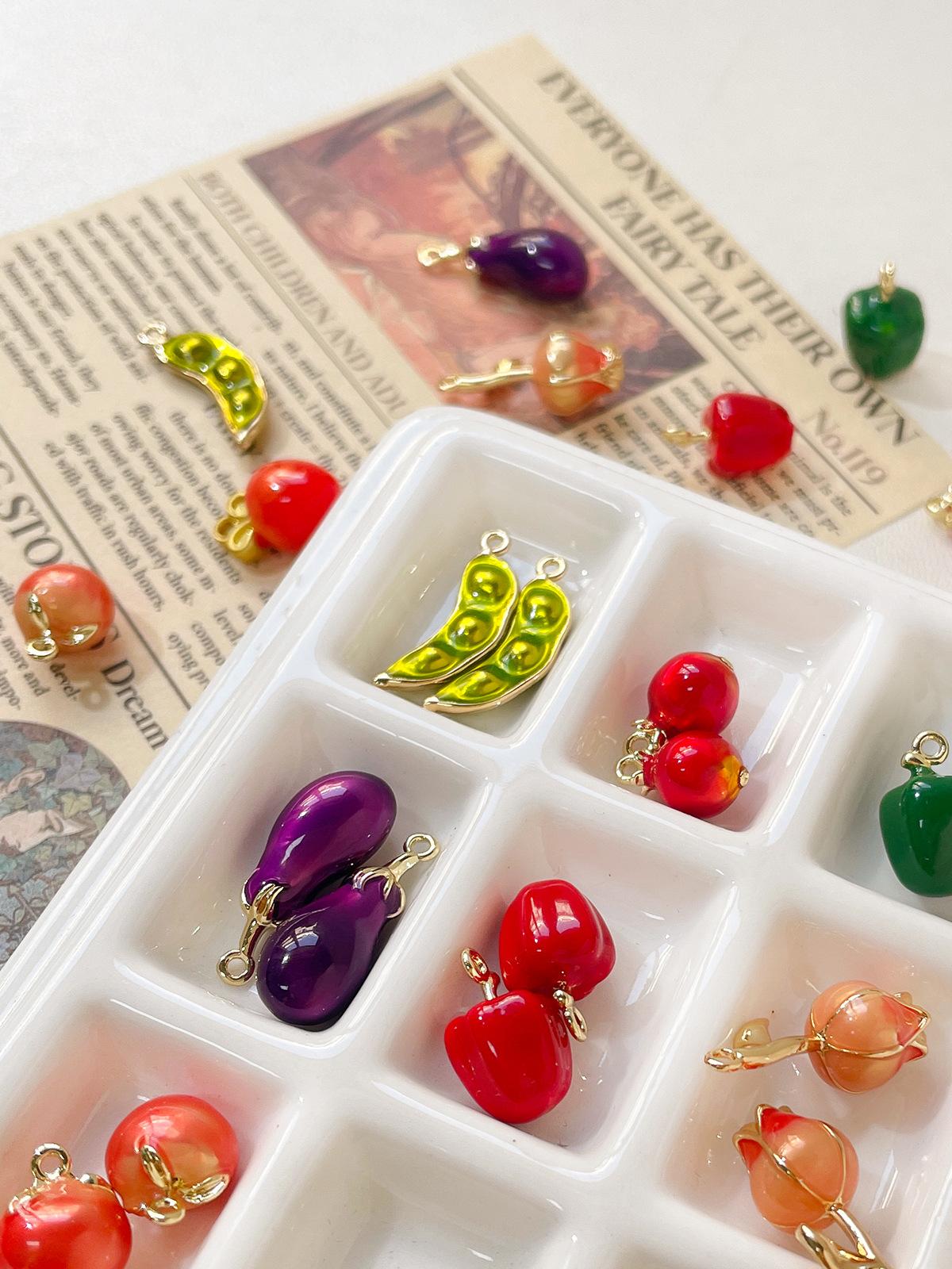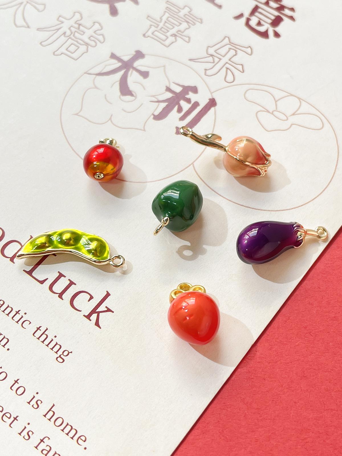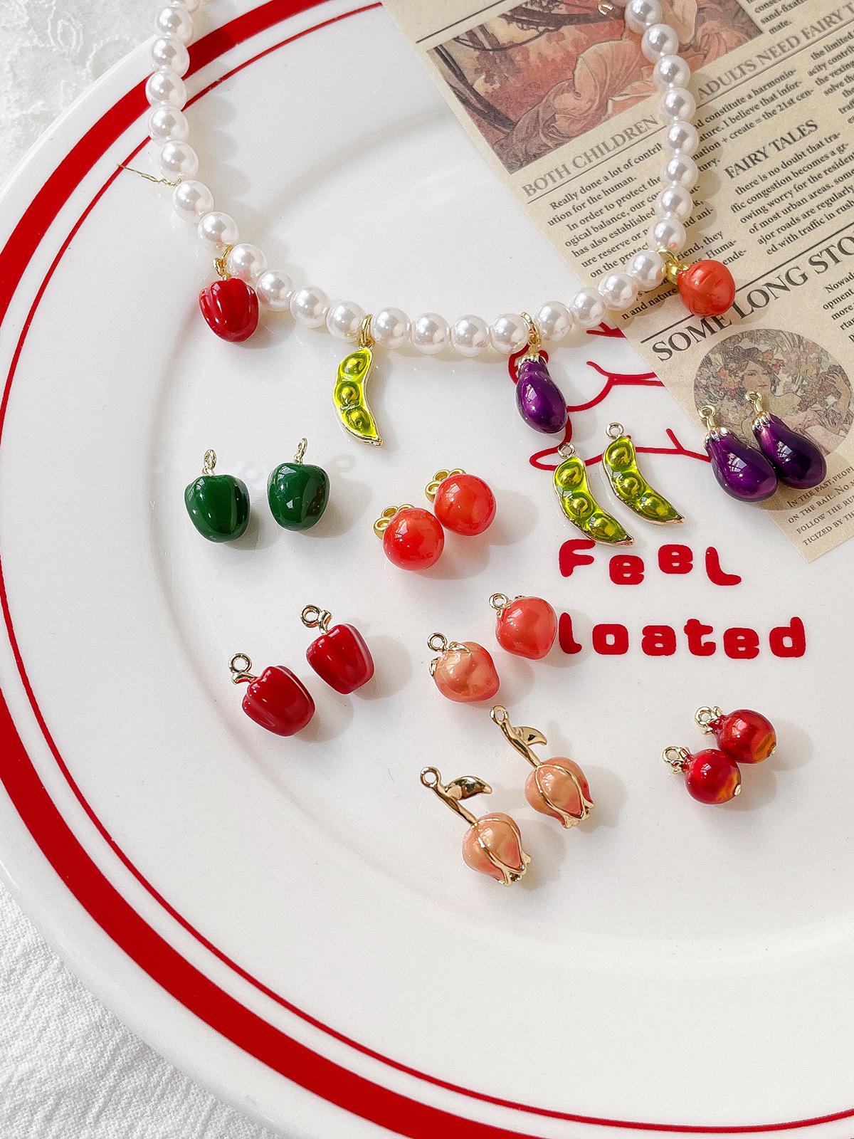 Colgante pequeño con forma de berenjena, melocotón, judías, fruta, para pulsera, collar, pendientes, cuentas, bonitos accesorios de joyería