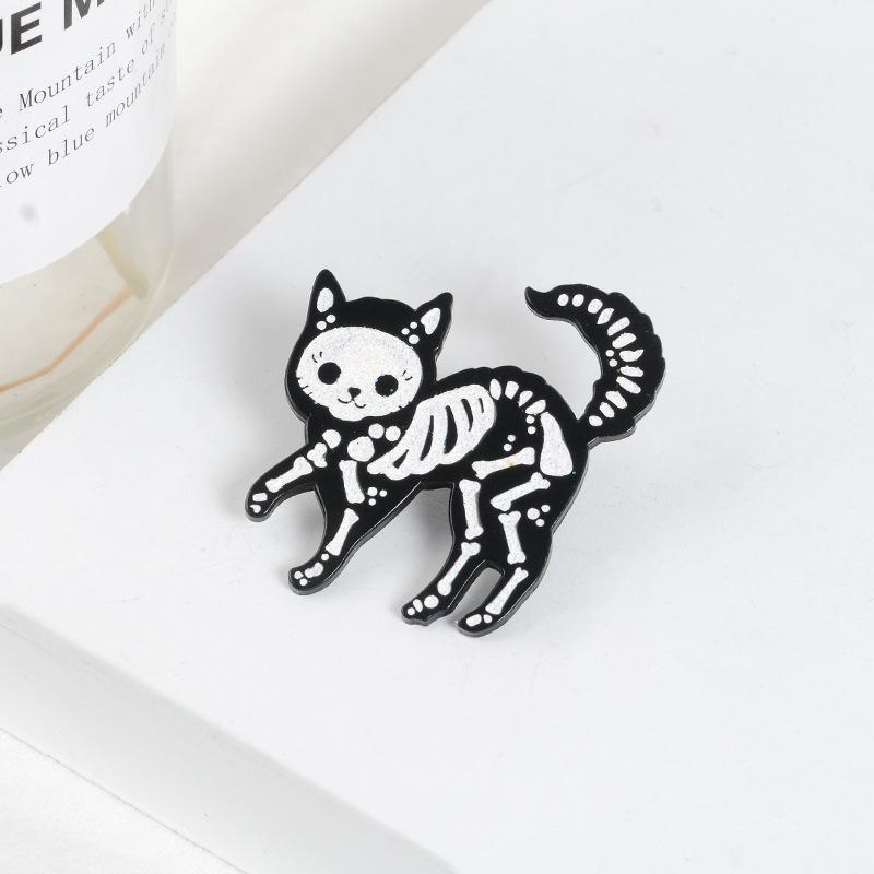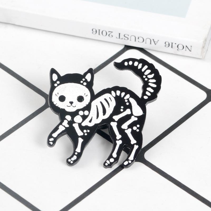 Broche de Joyería de Gato Calavera Creativo de Dibujos Animados Elegante Animal Lindo Insignia de Gatito con Forma de Calavera Joyería Creativa de Moda