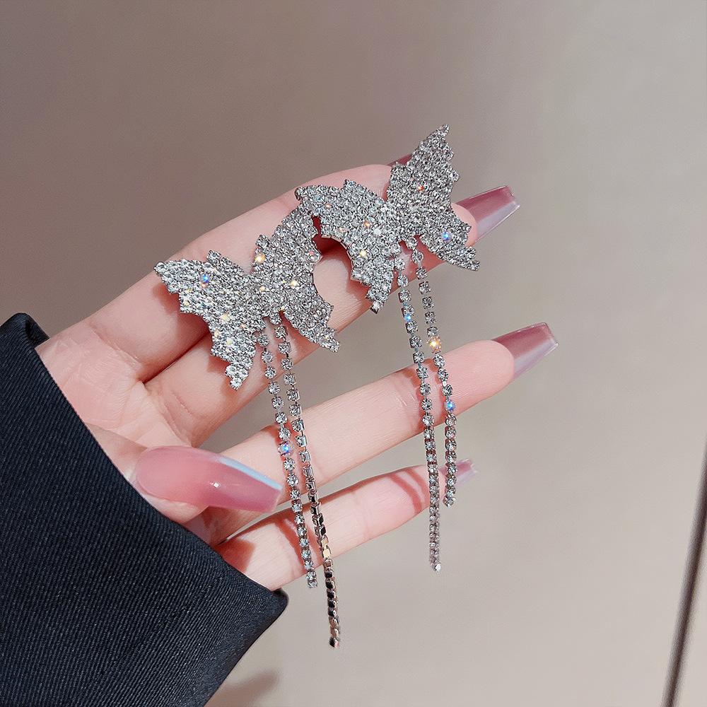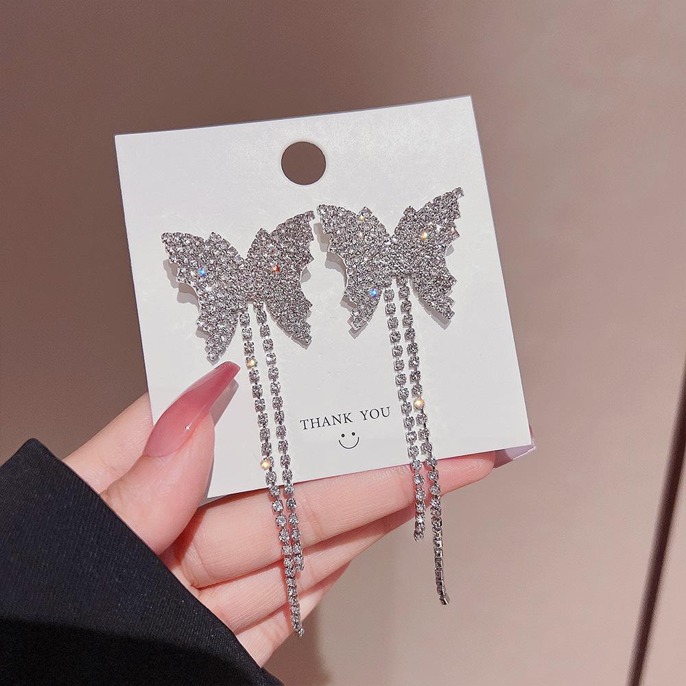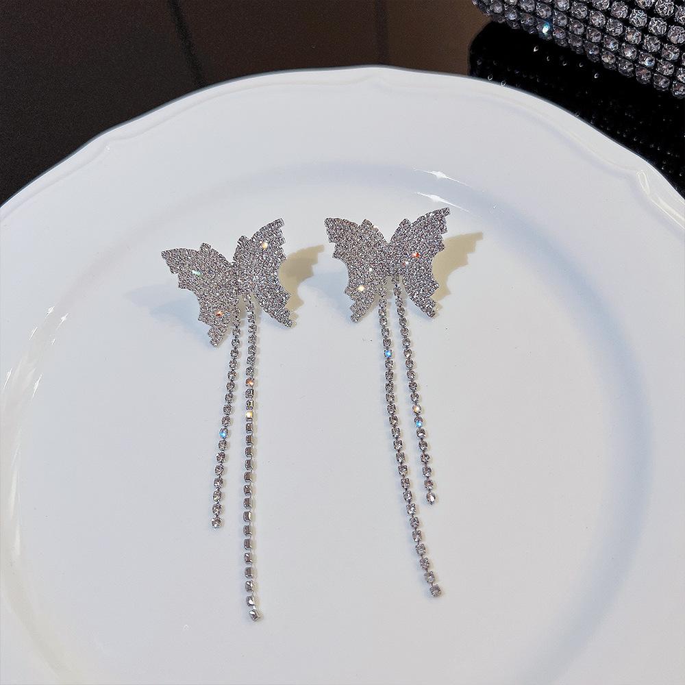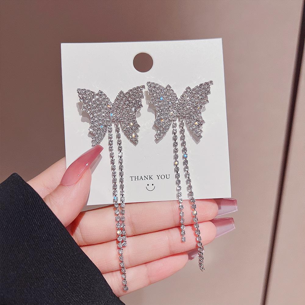 Pendientes de estilo coreano con borlas de mariposa y diamantes, ligeros, de lujo, de alta gama, elegantes y combinables, pendientes de moda para mujer.