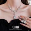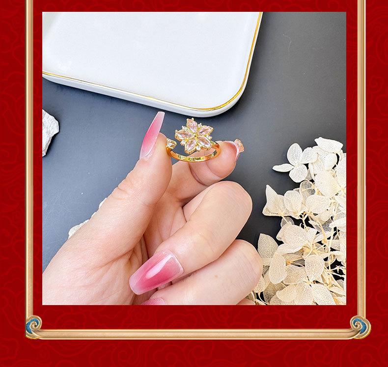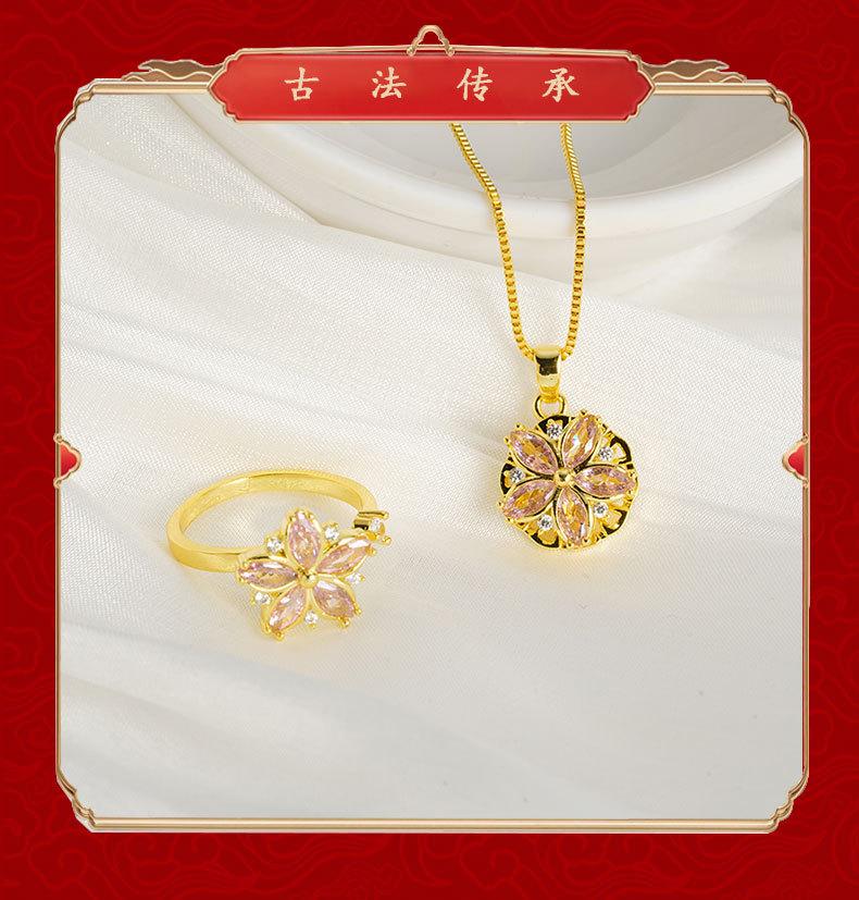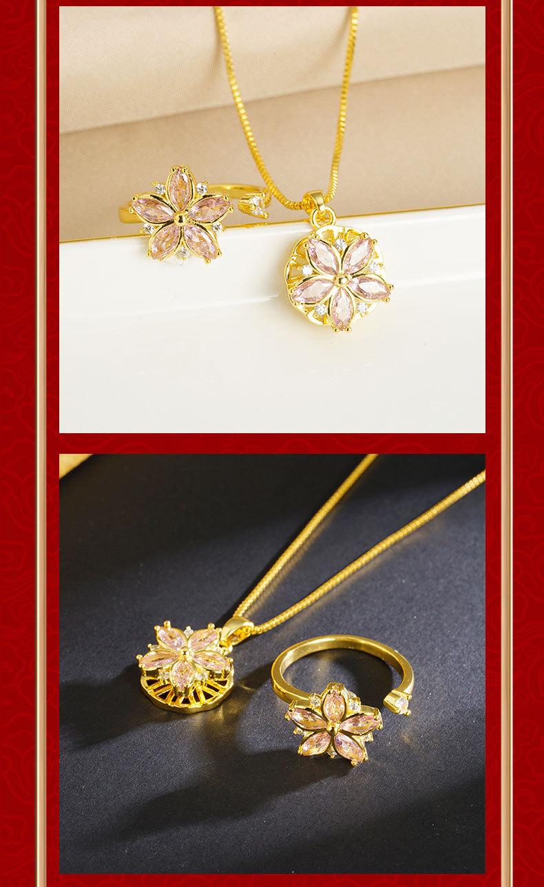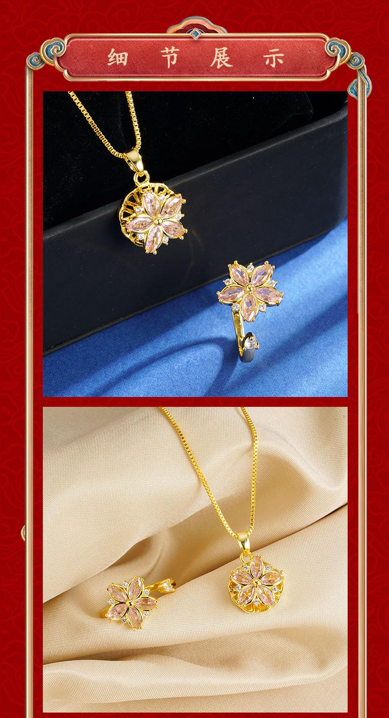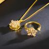 Collar con flor de oro arena, anillo, joyería, traje de moda, lujo, nicho, alta gama, sentido micro incrustación, cobre, chapado en oro, accesorios de joyería