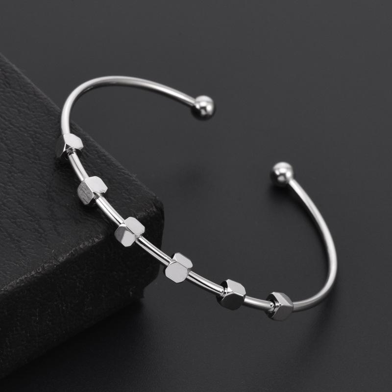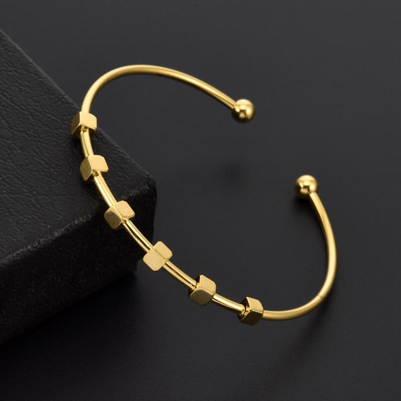European and american simple titanium steel women's c-shaped bracelet k-style elegant square accessories rose ...