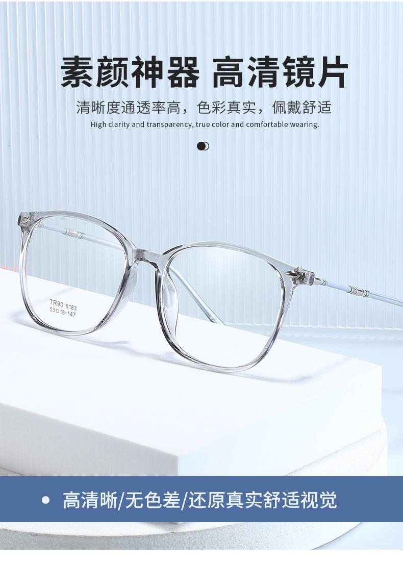 2023 nuevas gafas con montura personalizada para mujer TR90 HD, lentes planas, fabricantes al por mayor de monturas para miopía.