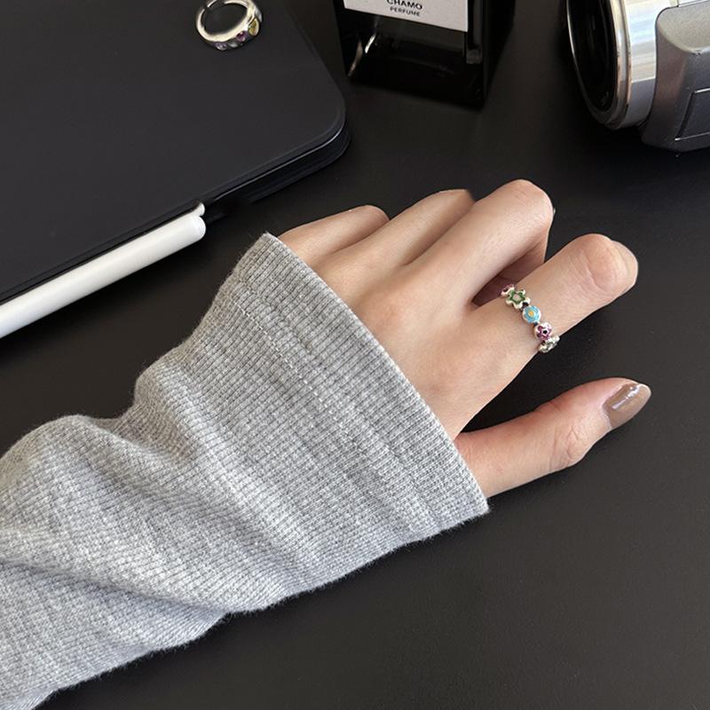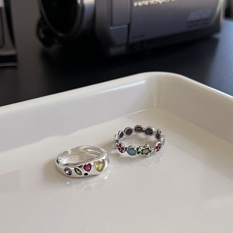 Corea del Sur 2023 Nuevo Color de Moda Flor Gota Aceite Forma Especial Amor Diamante Gema Flash Anillo Apertura Ajustable