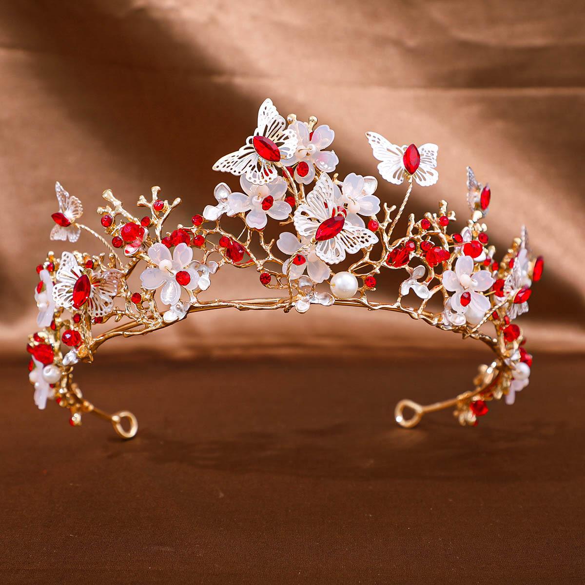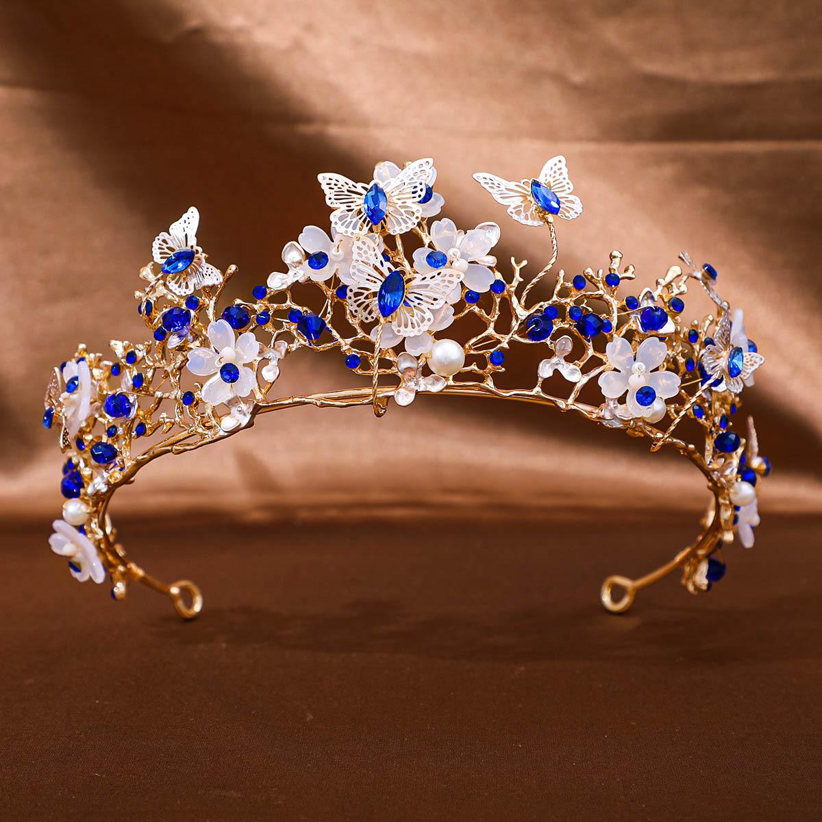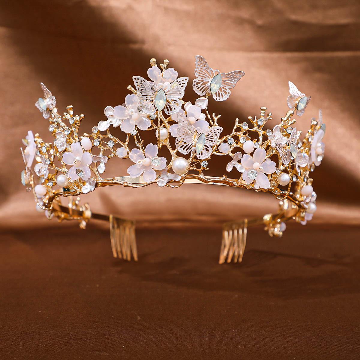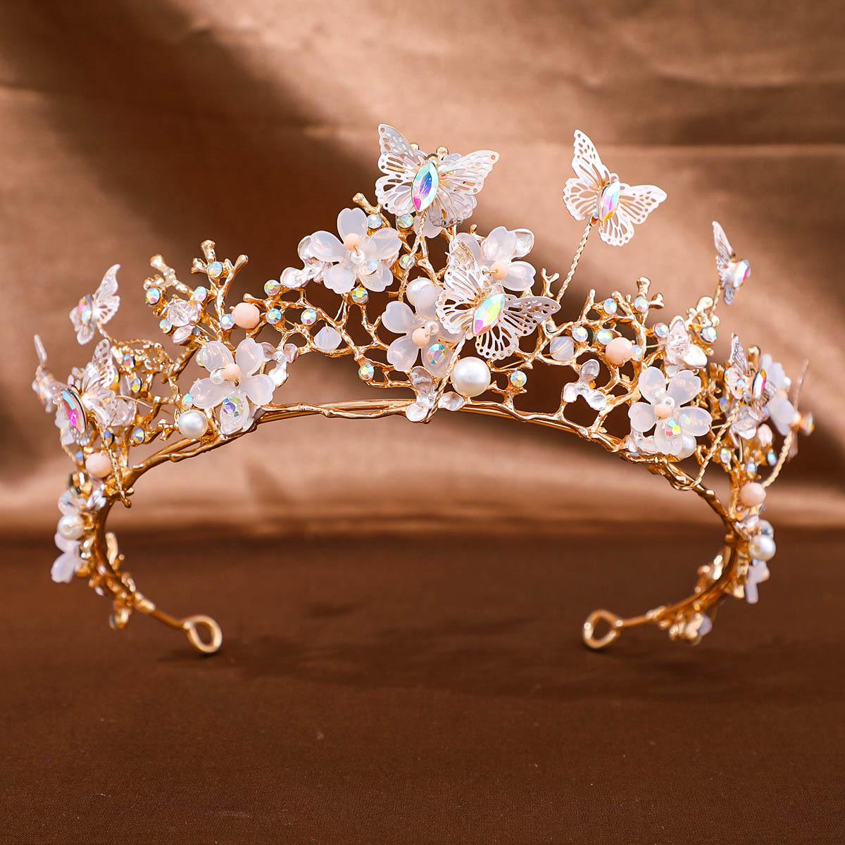 Estilo Europeo Novia Corona Transfronteriza Tiara Hecha a Mano Mariposa Pedrería Marquesa Diadema Accesorios Boda Novia Fotografía de Viaje Accesorios para el Cabello