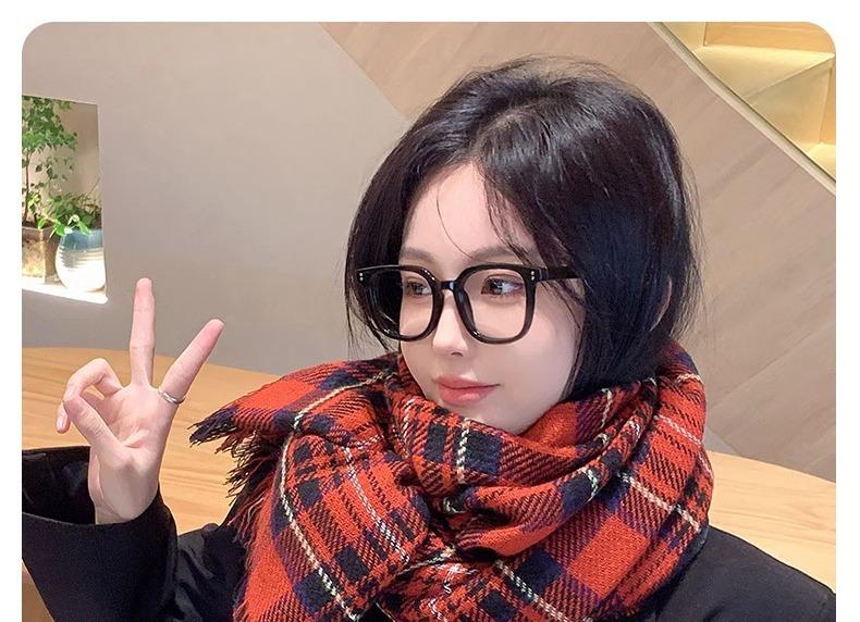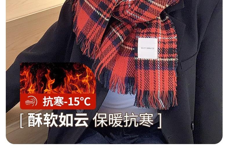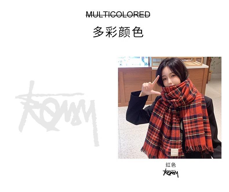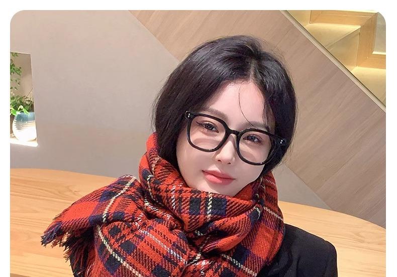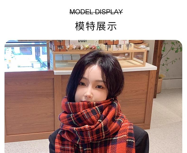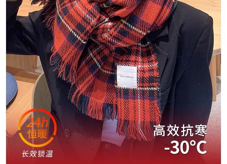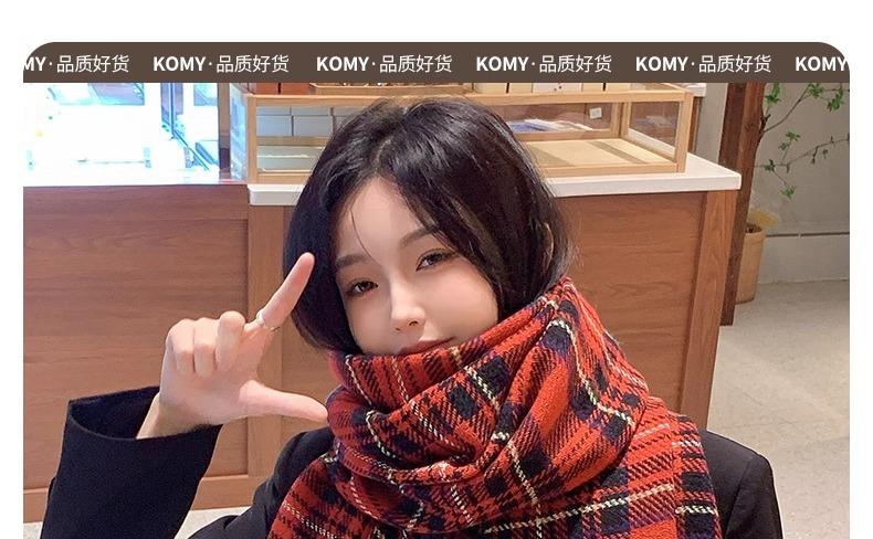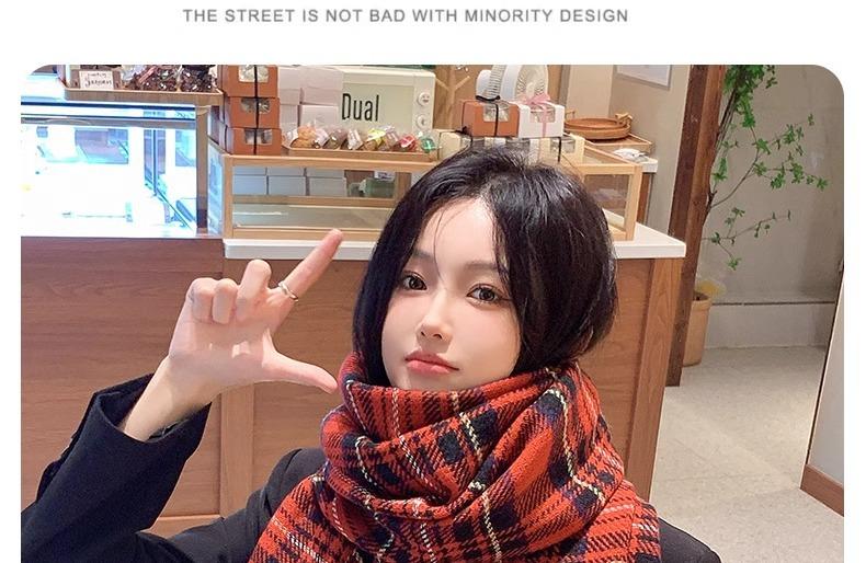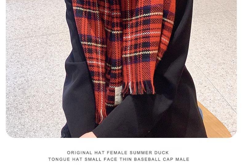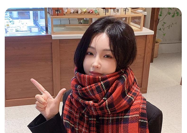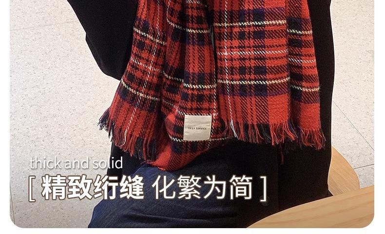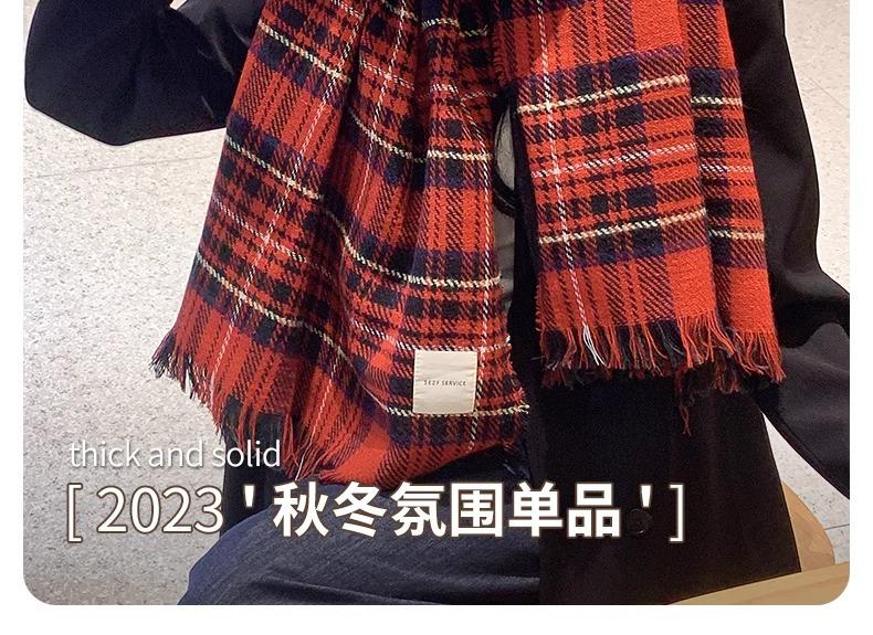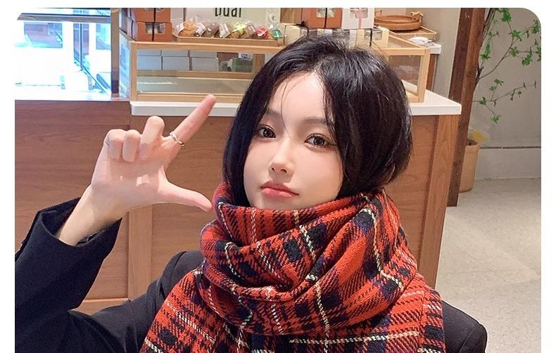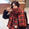 Bufanda a cuadros retro para mujer, otoño e invierno 2023, nueva, roja, versátil, para parejas, chal grande, gruesa y cálida.