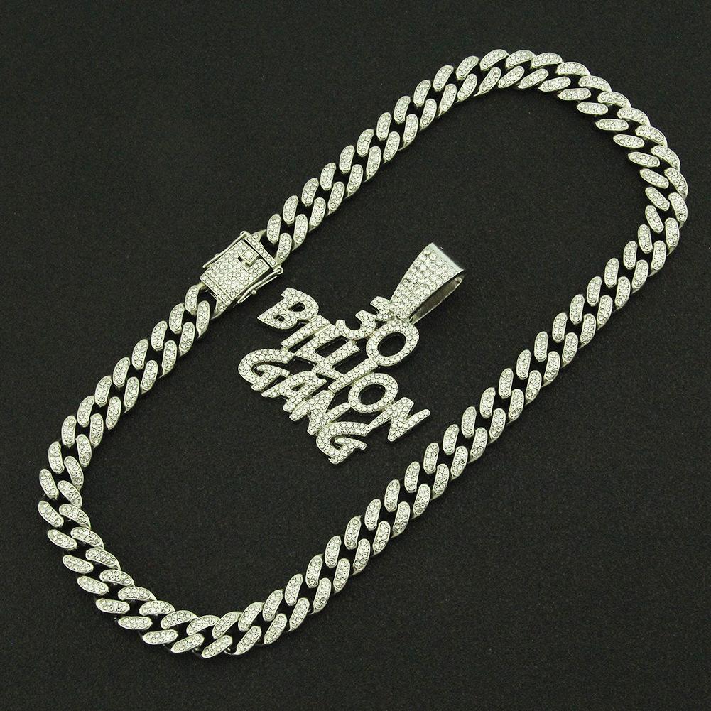 Collar dominante para hombre con colgante de letra de diamante completo, cadena cubana ancha, estilo hip hop, hip-hop, baile callejero europeo y americano