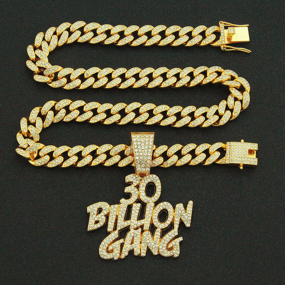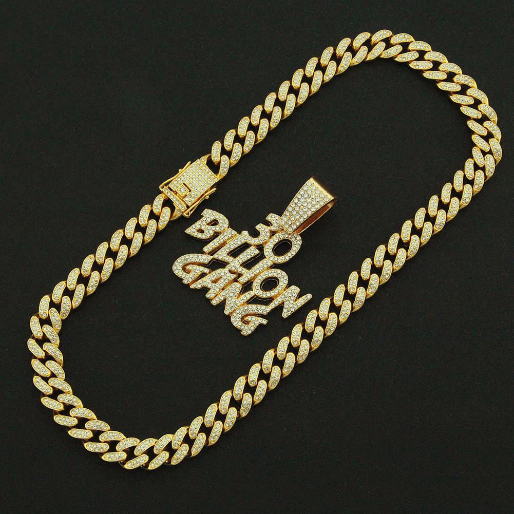 Colgante de letra de empalme creativo de hip-hop europeo y americano, colgante de collar de cadena cubana, accesorios de discoteca con diamantes llenos de estilo moderno