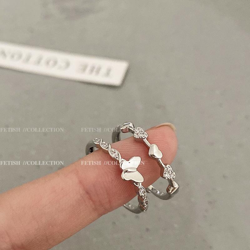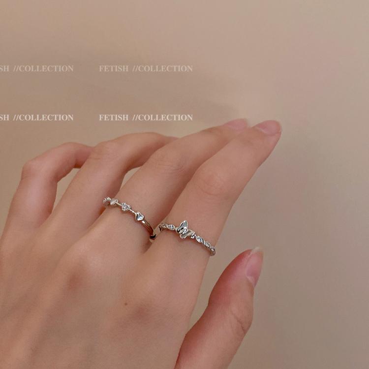 Anillo Mariposa Amor Circonita Micro-incrustada para Mujer Anillo de Dedo Estilo Frío Pequeño Grupo ins Moda Personalizado Anillo Decorativo