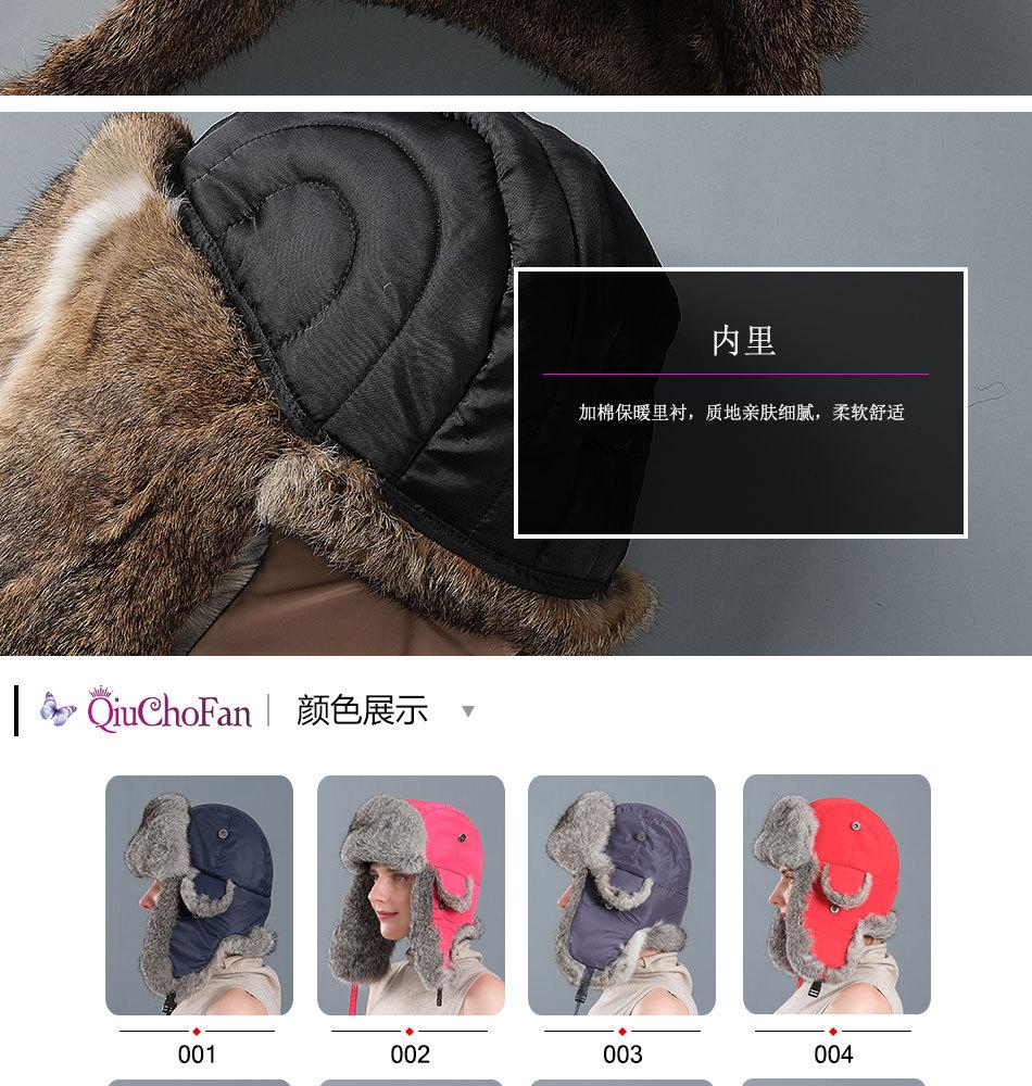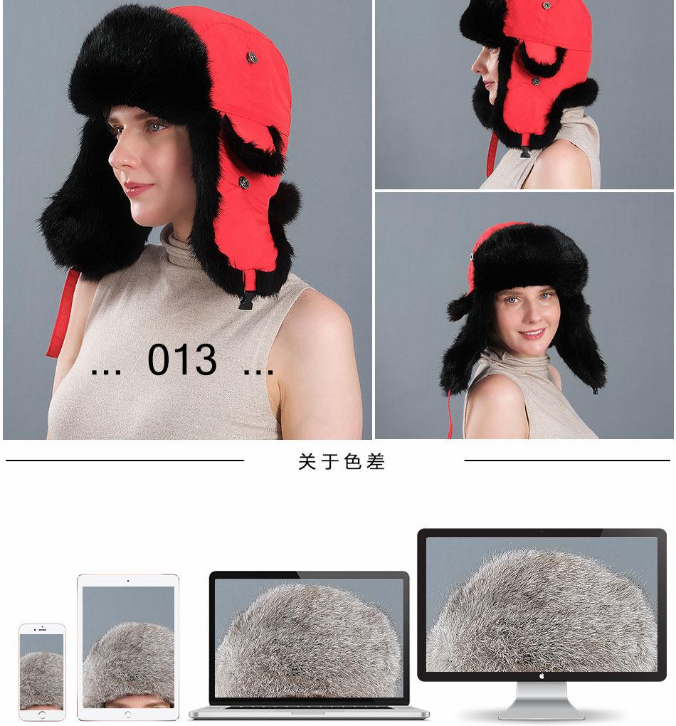 Sombrero Lei Feng de Pelo de Conejo para Hombre y Mujer Invierno Estilo Coreano Sombrero de Algodón Noreste Deportes al Aire Libre Grueso Cálido Protección para las Orejas Gorro de Esquí Moda