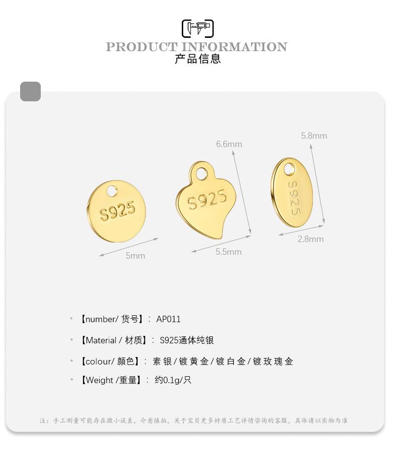 Cadena de extensión de cola con etiqueta ovalada redonda en forma de corazón de un solo agujero en plata esterlina S925, accesorios de joyería para bricolaje chapados en oro K