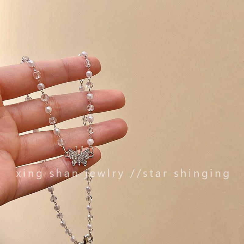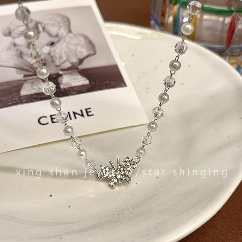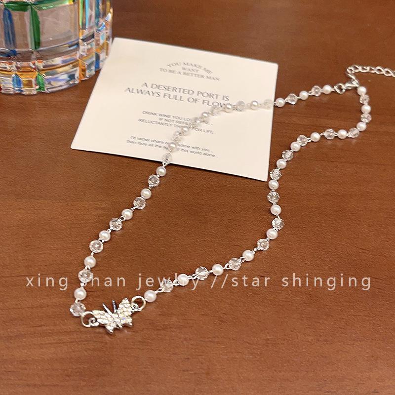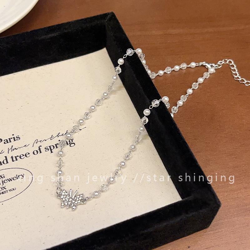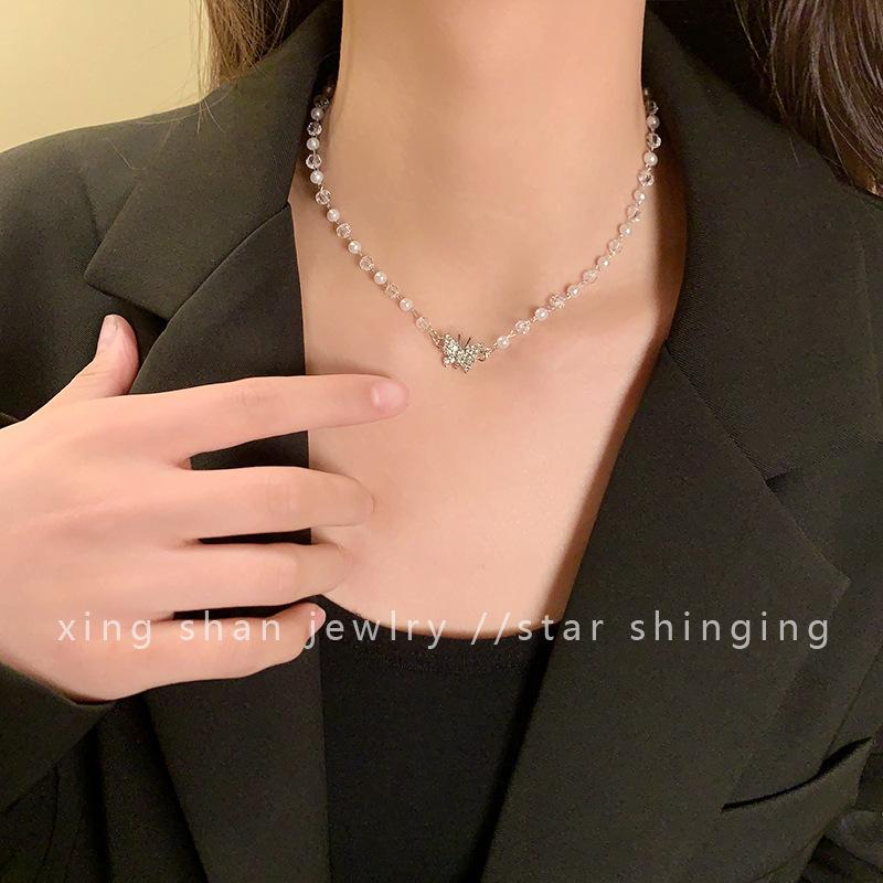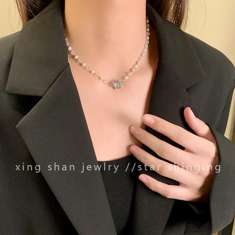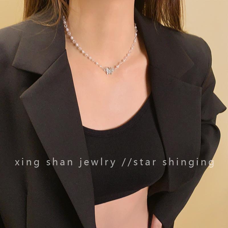 2025 Nuevo Collar de Mariposa de Perla de Imitación para Mujer Verano Diseño Nicho Simple Elegante Gargantilla Cadena Clavícula