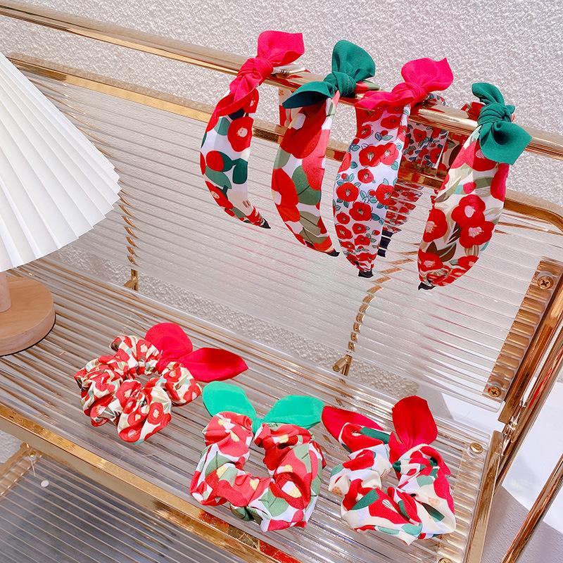 4. Retro red rabbit ears hair ring, 5. Printed green rabbit ears hair ring, 6. Big flower red rabbit ears hair...