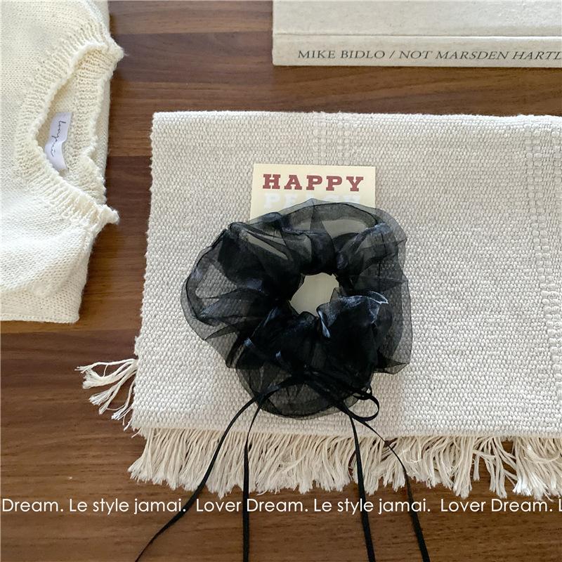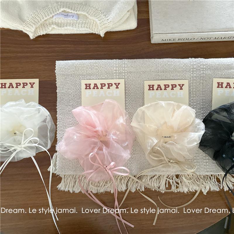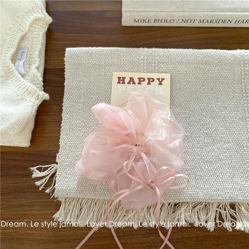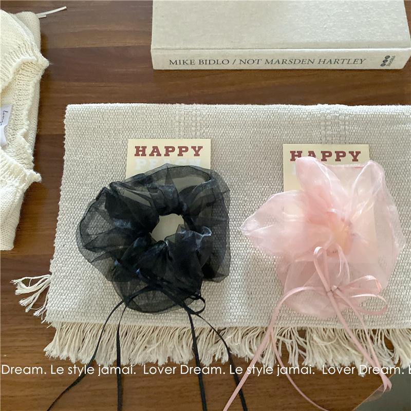 Corea del Sur - Nuevo lazo de cinta rosa de malla para el pelo de intestino grueso, aro para el pelo para niña dulce, accesorios para el pelo de cola de caballo alta para mujer