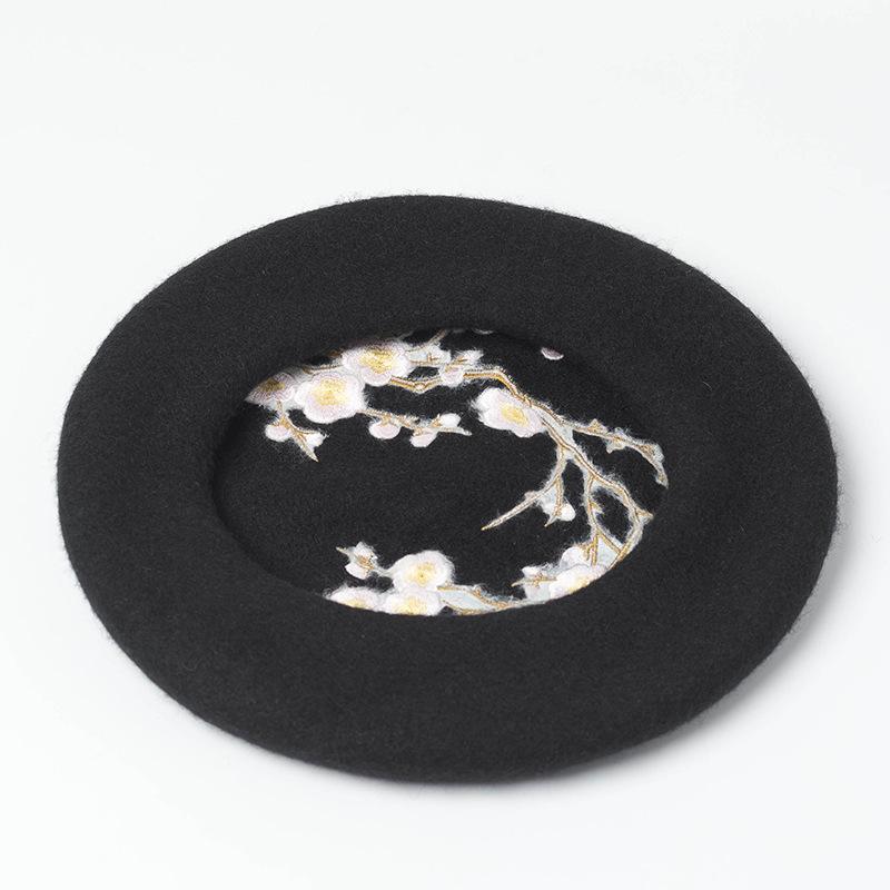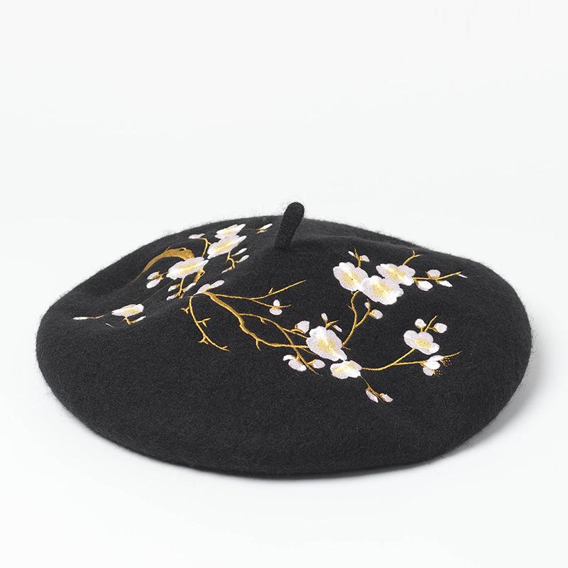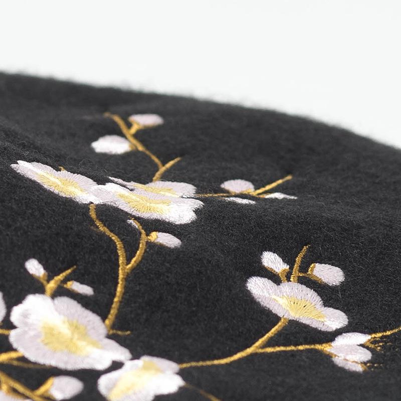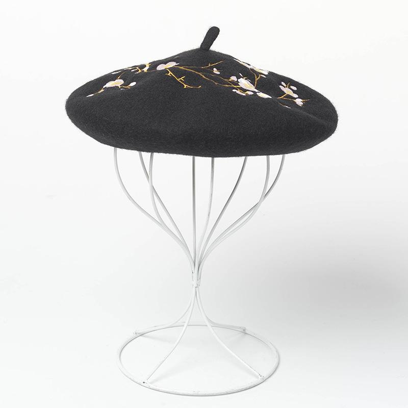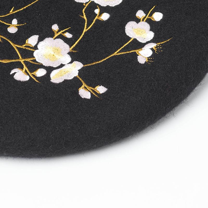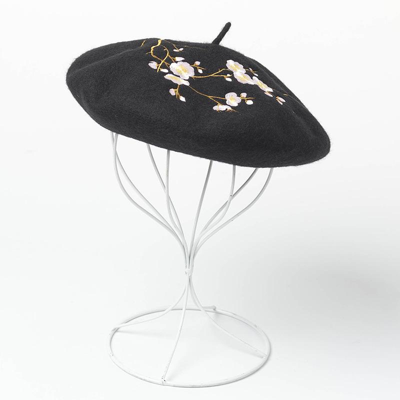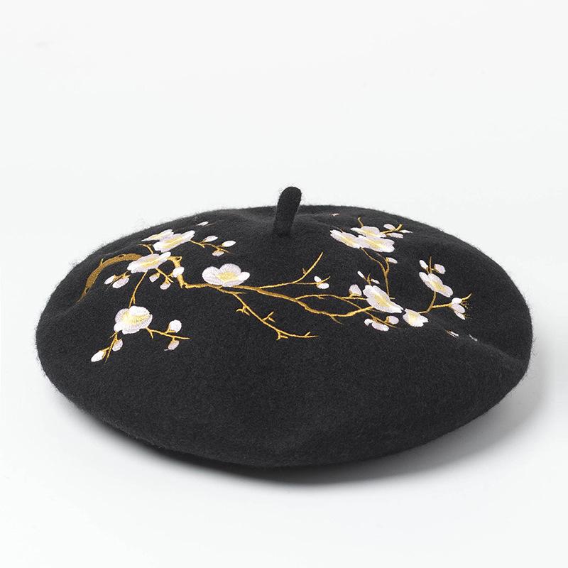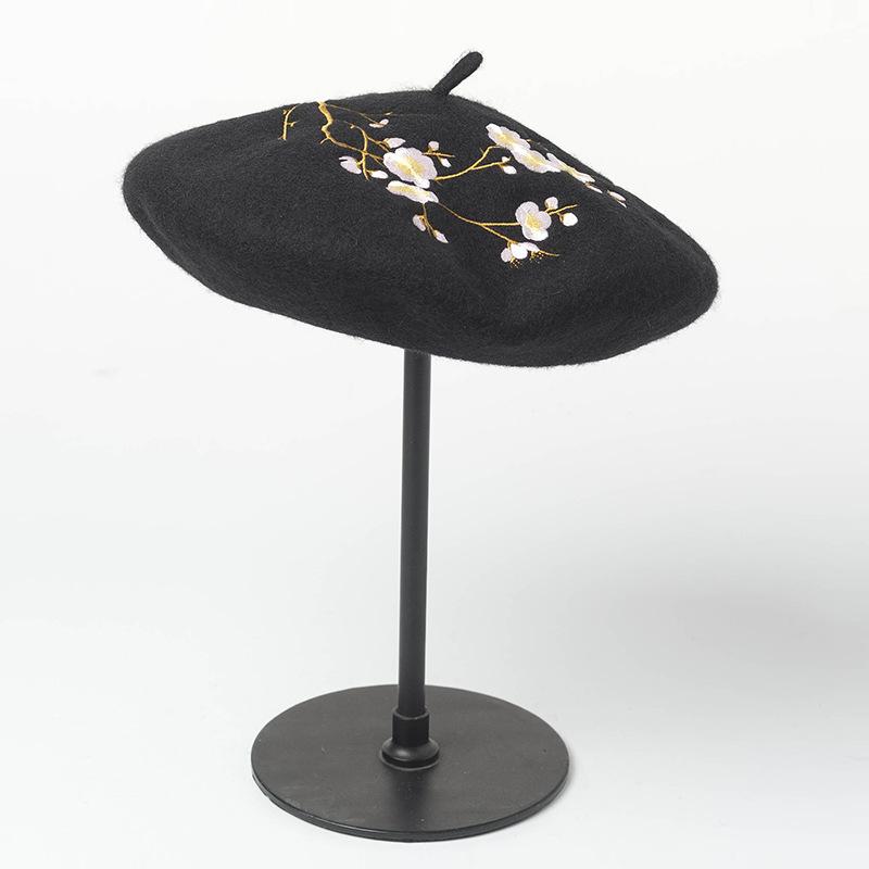 Boina de lana con bordado de ciruelas de estilo coreano para otoño e invierno, gorro de pintor, boina de lana de moda para mujer