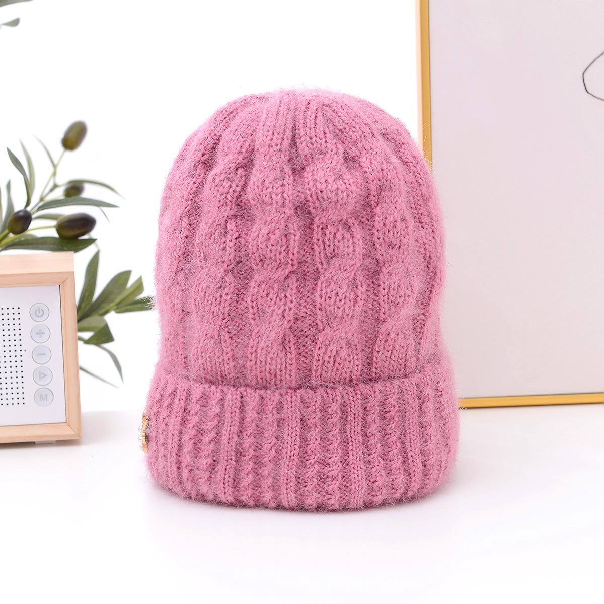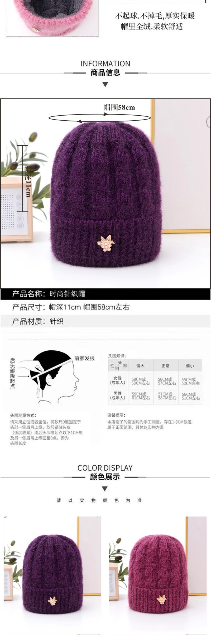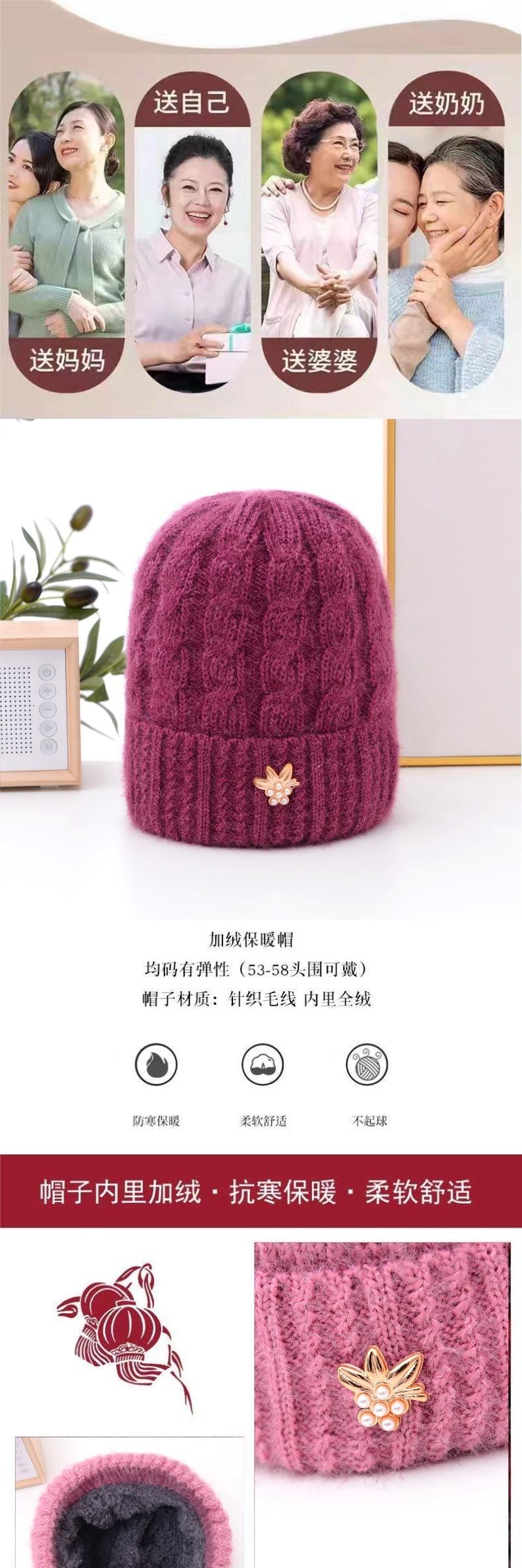 Sombrero de otoño e invierno para mujer, gorro de lana para madres de mediana edad y mayores, gorro de punto de algodón y terciopelo cálido, gorro de punto para abuela, gorro de punto con protección para los oídos.