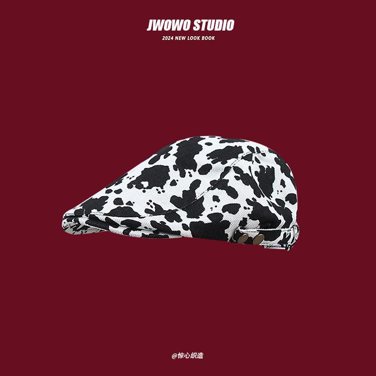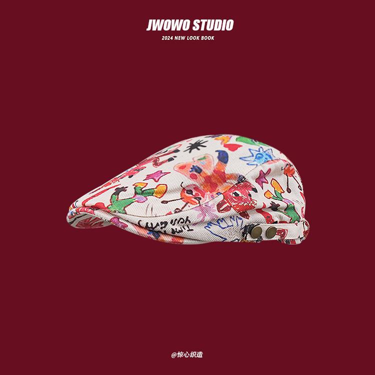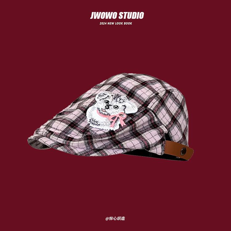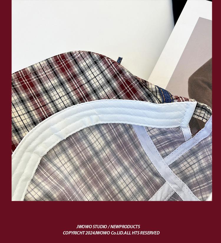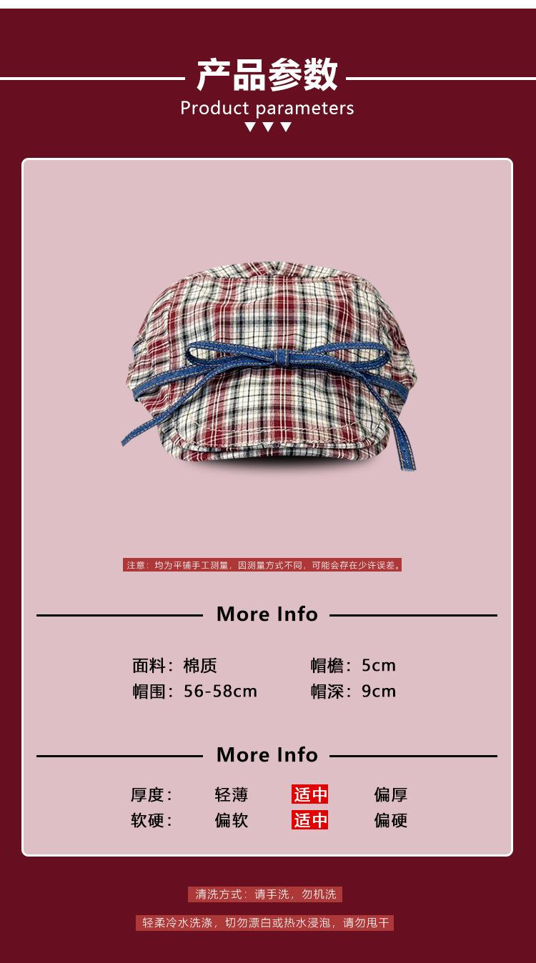 Sombrero de pintor vintage con lazo de mezclilla, rojo y negro, a cuadros, para mujer, primavera y verano, informal, combinable, 2024