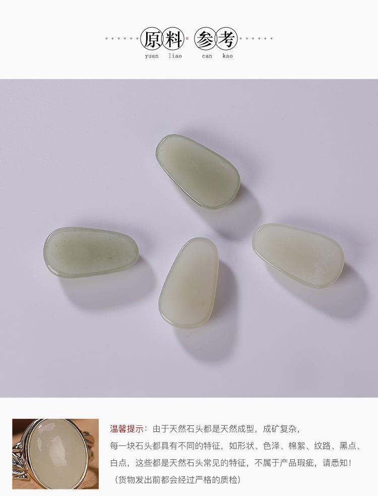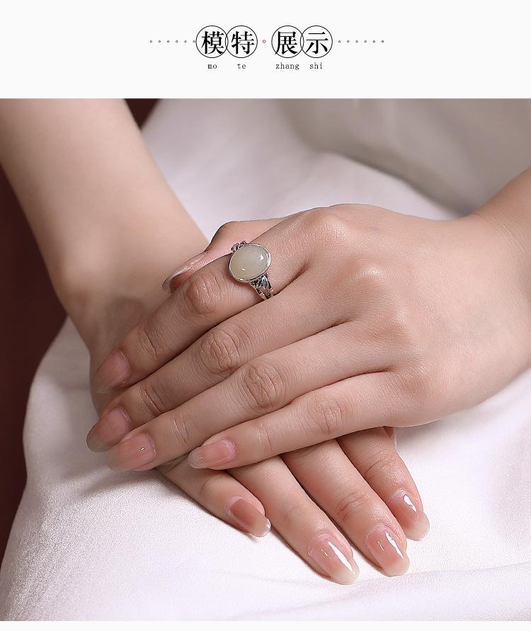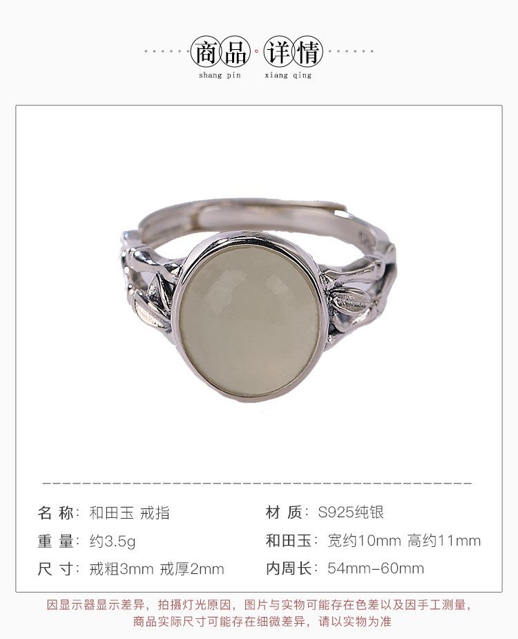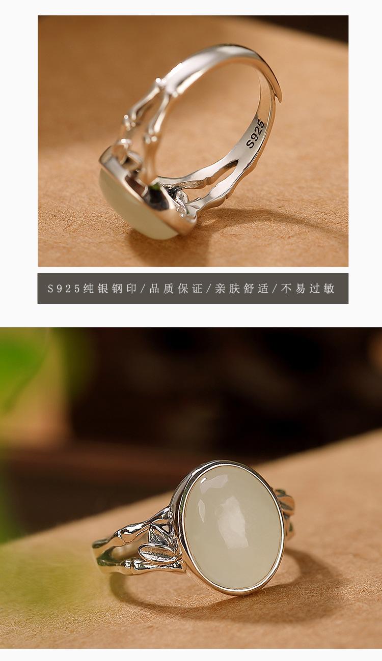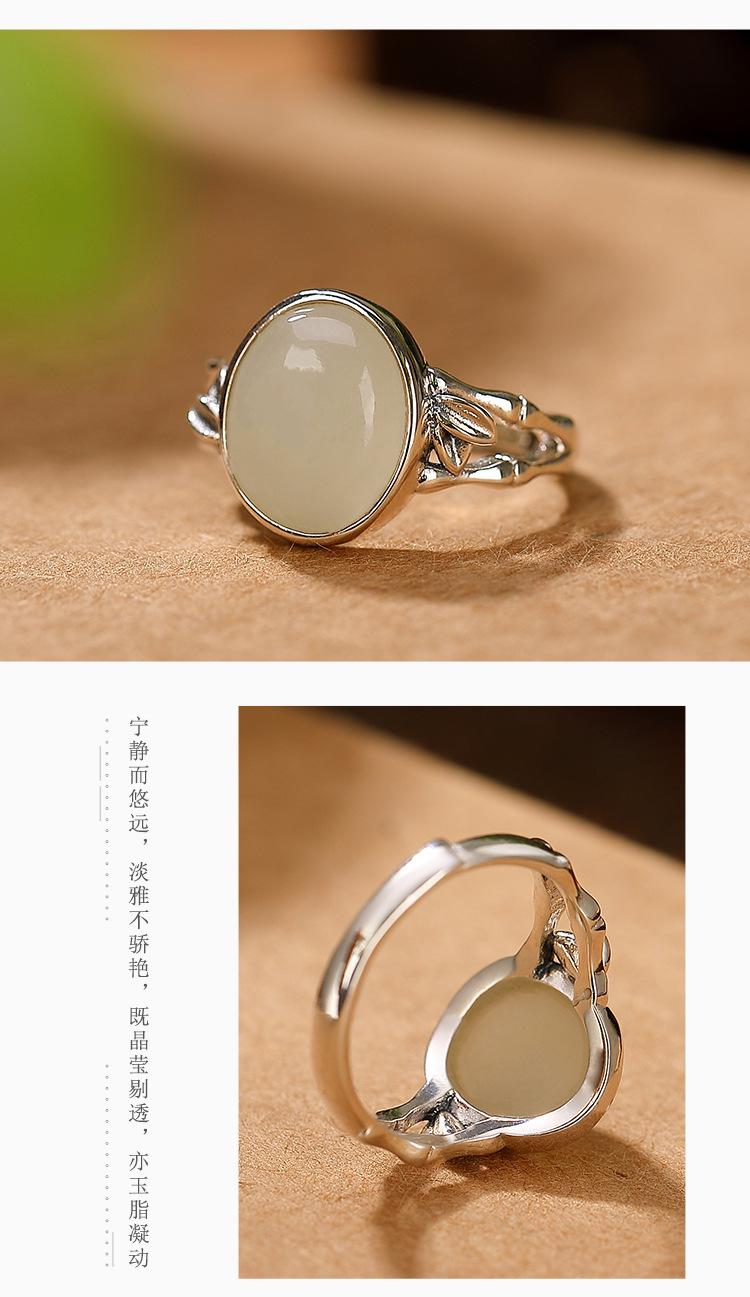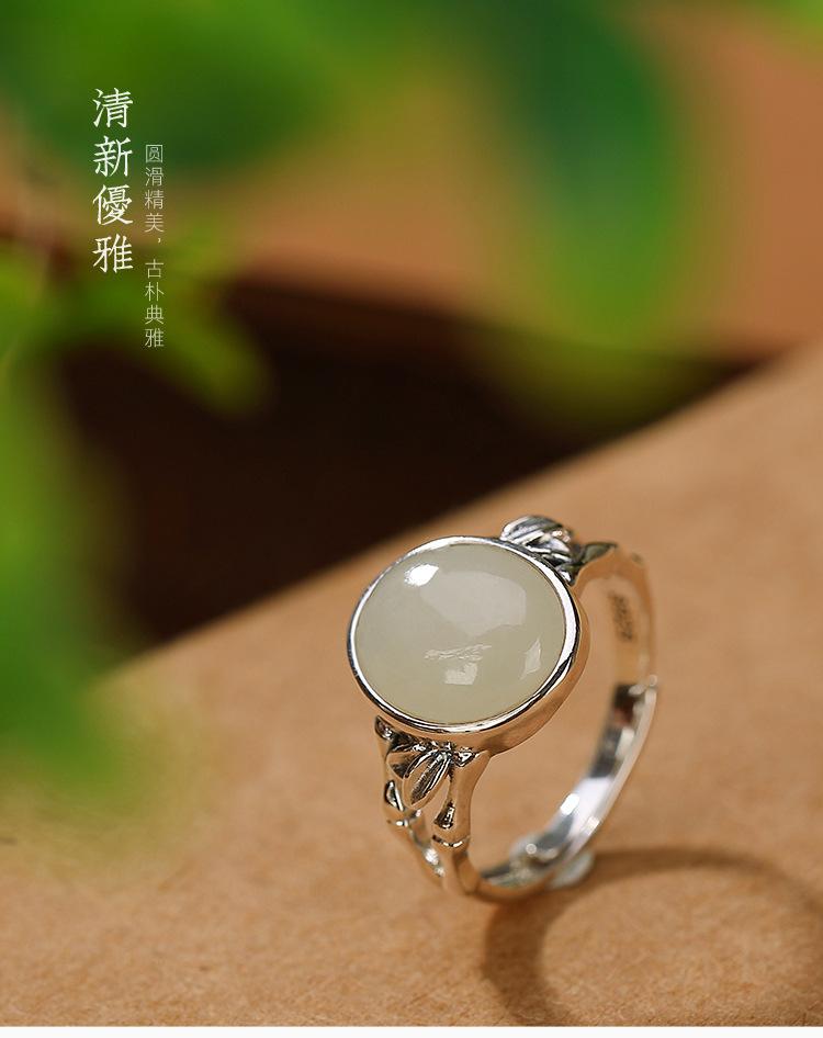 Anillo de plata de ley Yilu S925 con diseño de jade hetiano, jade blanco, hoja de bambú, cara hueca, temperamento versátil para damas.
