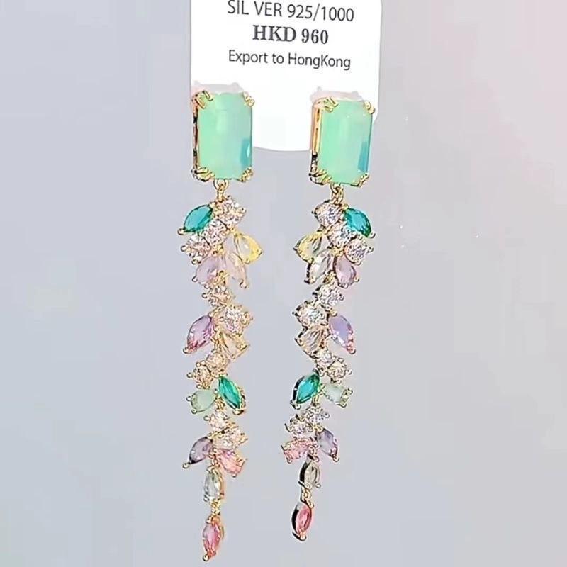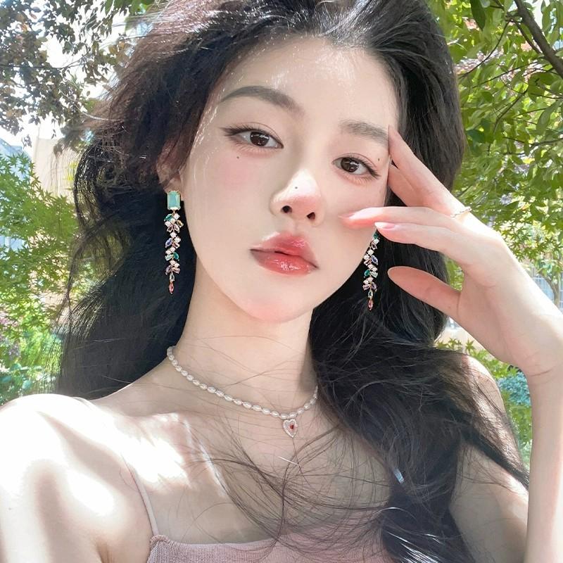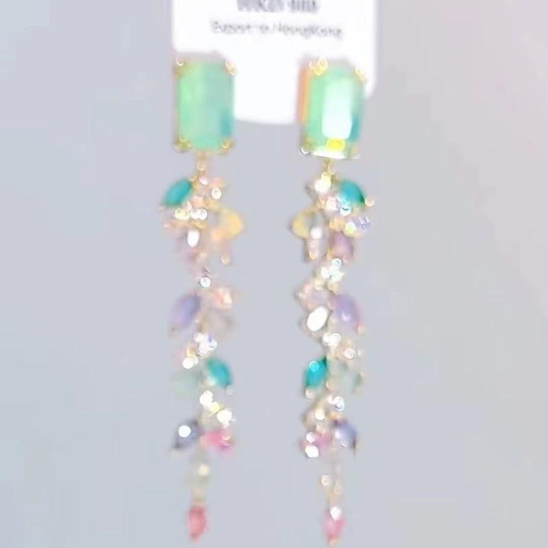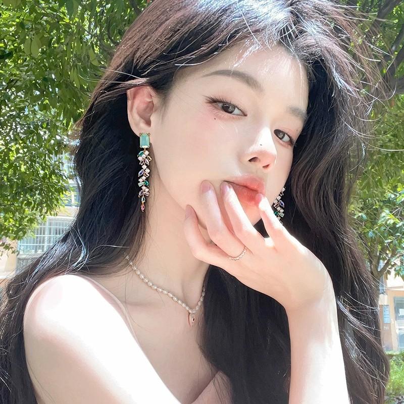 Pendientes de borlas de trigo con diamantes brillantes, ligeros, lujosos y de alta gama, de estilo nicho, nuevos y elegantes pendientes de cara redonda cuadrada.