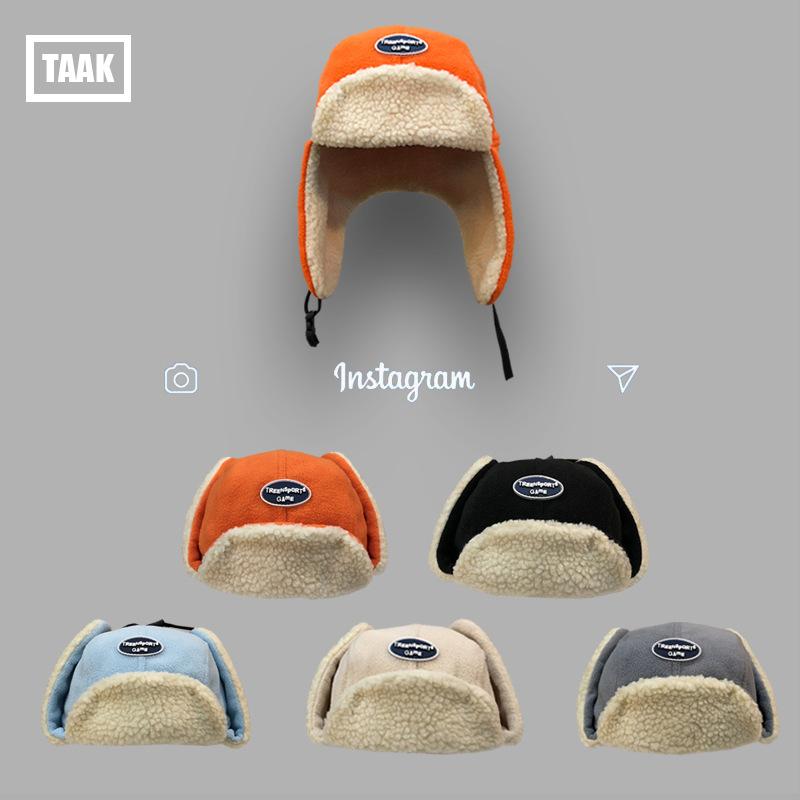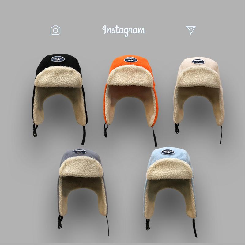 Corea del Sur Sombrero de piloto Lei Feng para mujer invierno esquí cálido engrosado a prueba de viento orejeras de felpa de cordero moderno para hombre estilo coreano