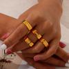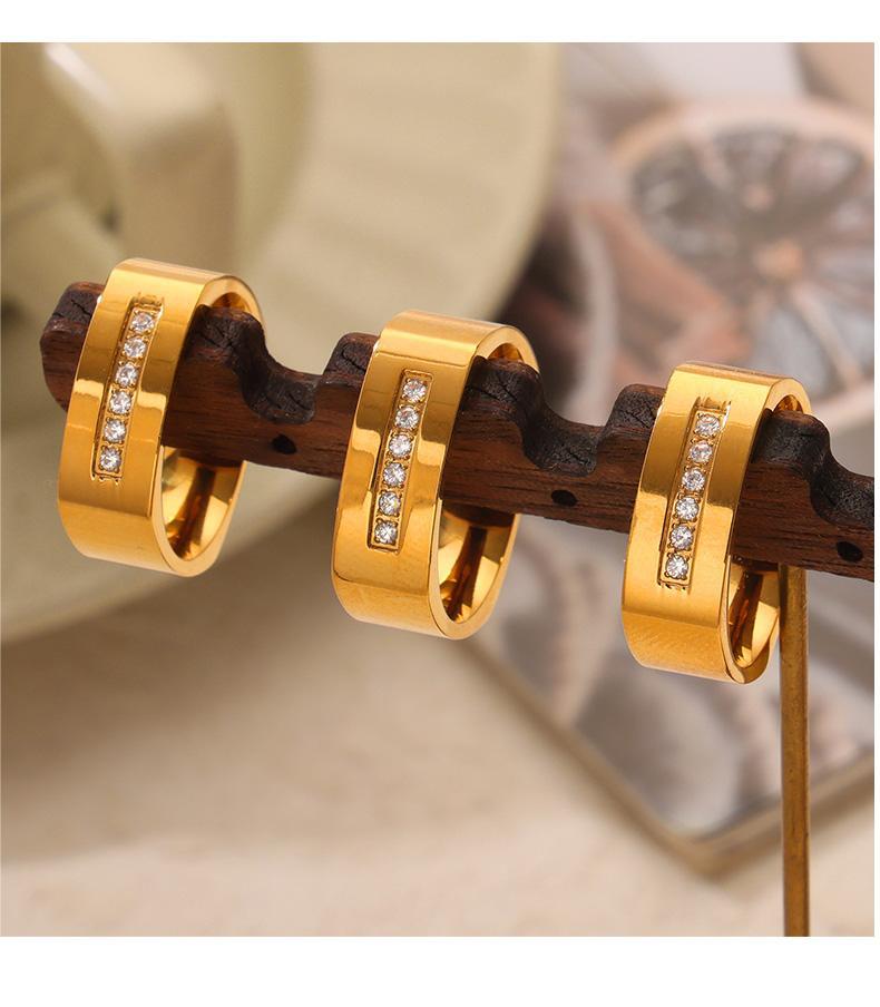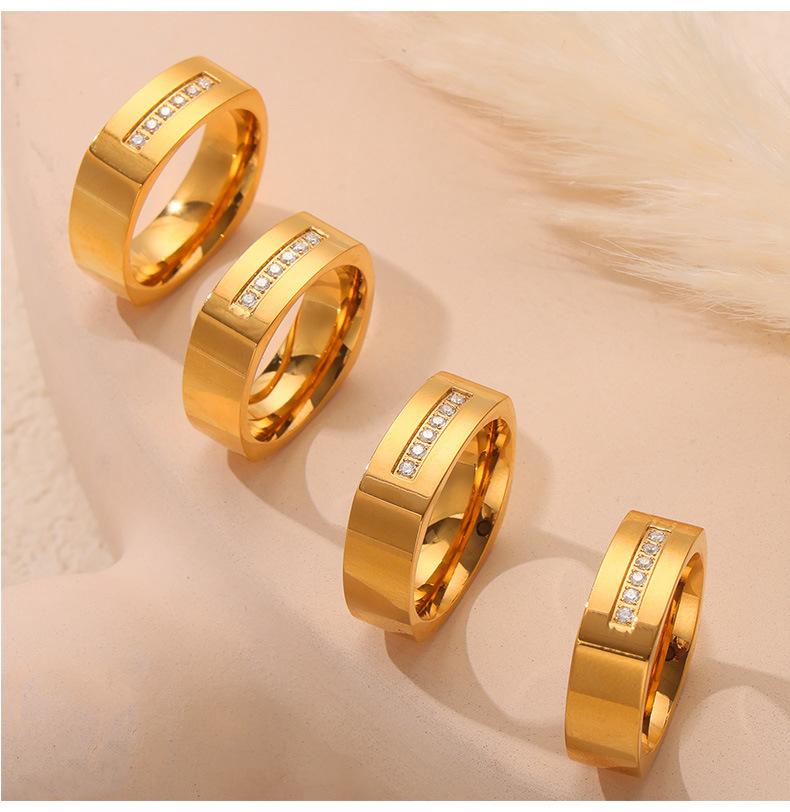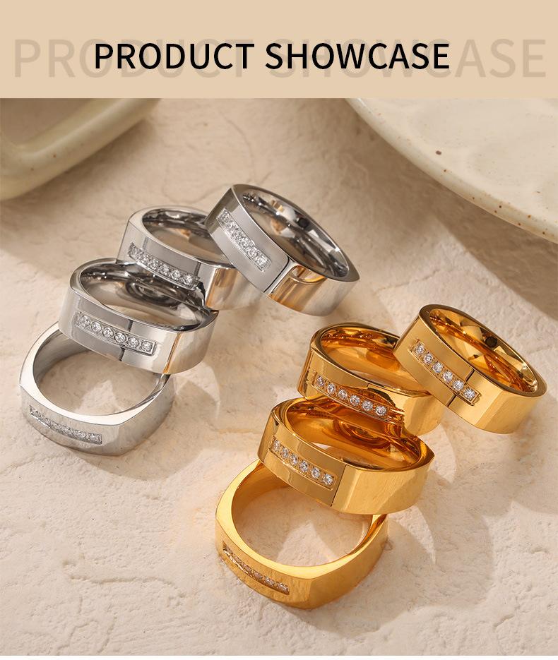 Anillo de dedo con nicho de acero de titanio chapado en oro, elegante y chic, con adornos de diamantes, combina con todo.
