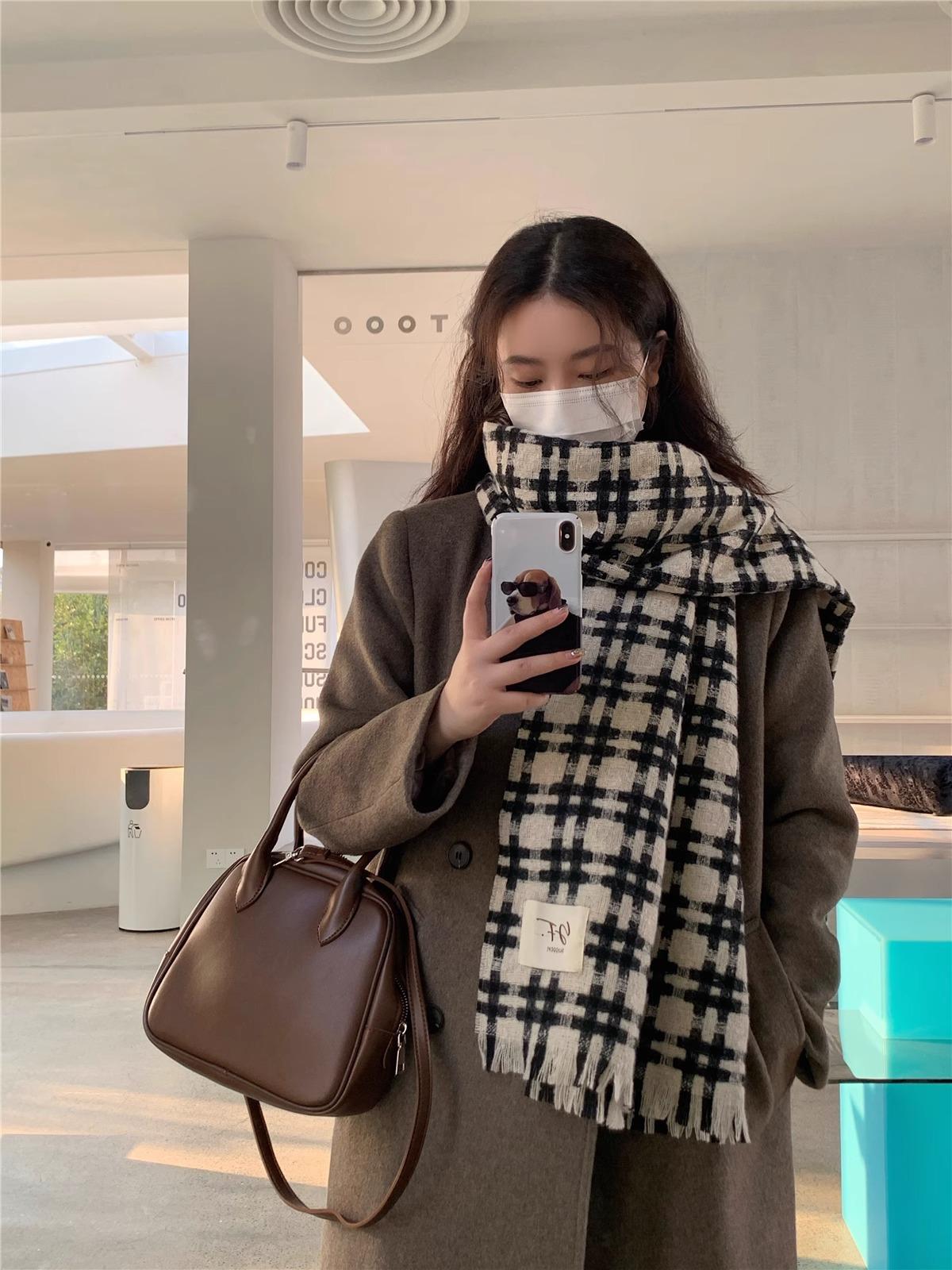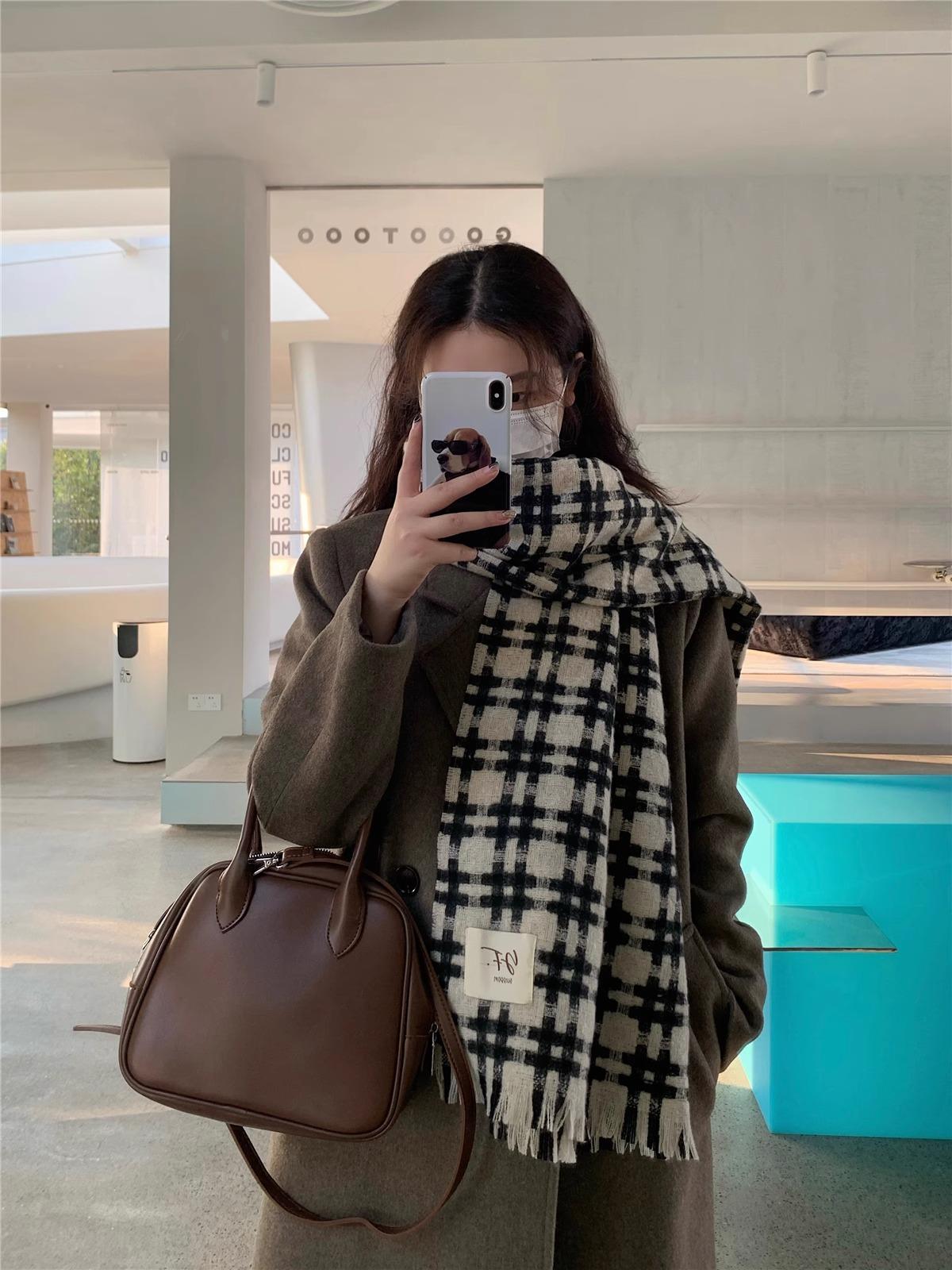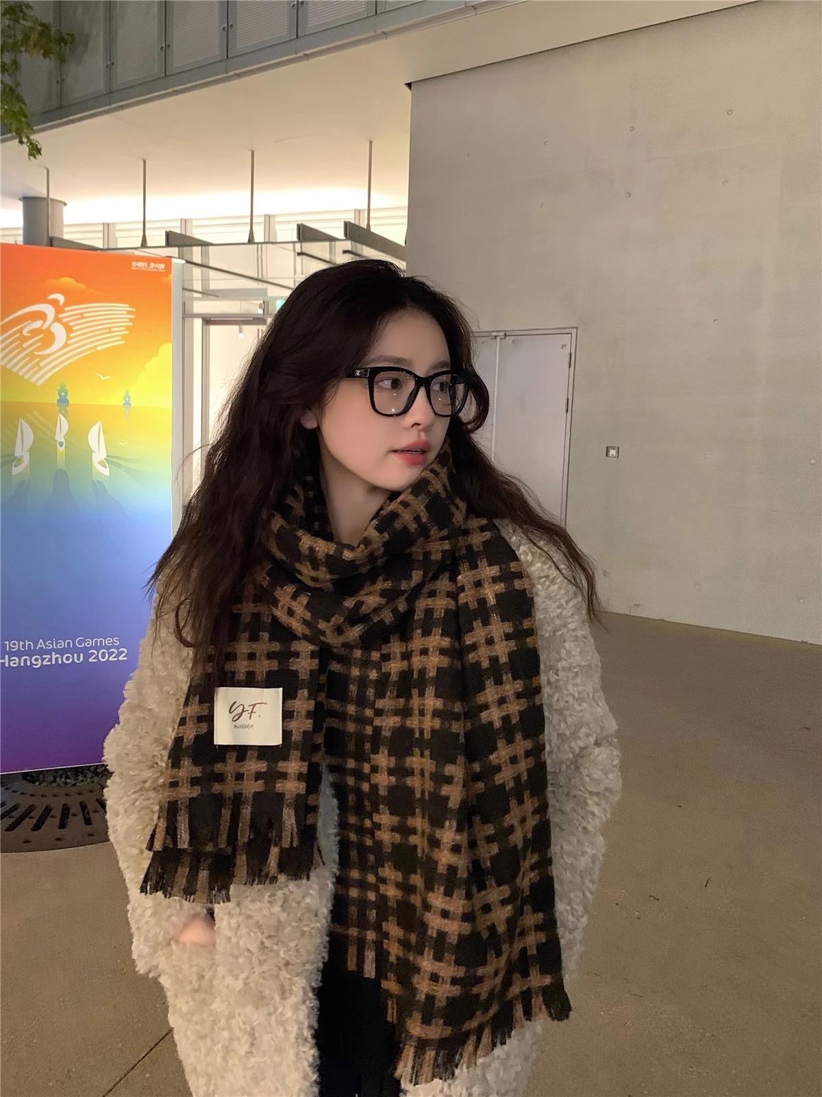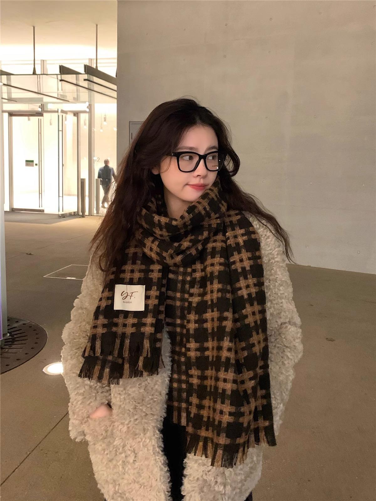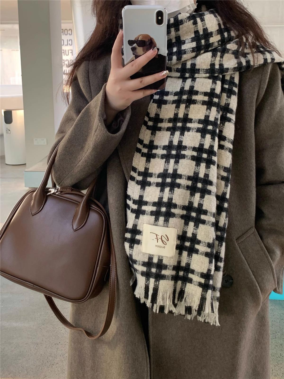 Bufanda a cuadros elegante de alta calidad para mujer, cálida y combinable en invierno, estilo cachemir, estilo retro para estudiantes, moda coreana.