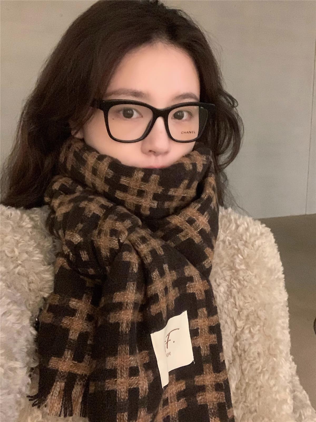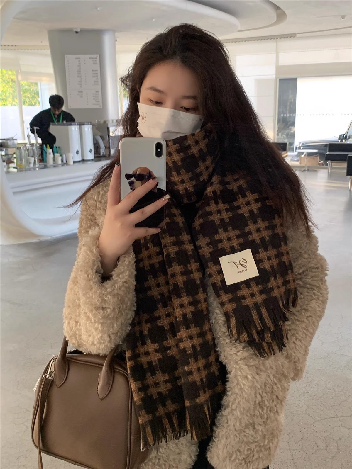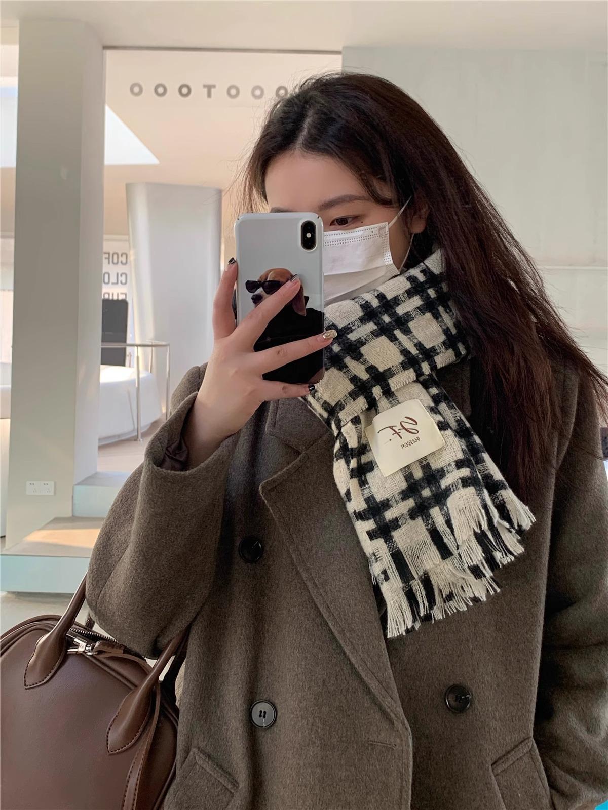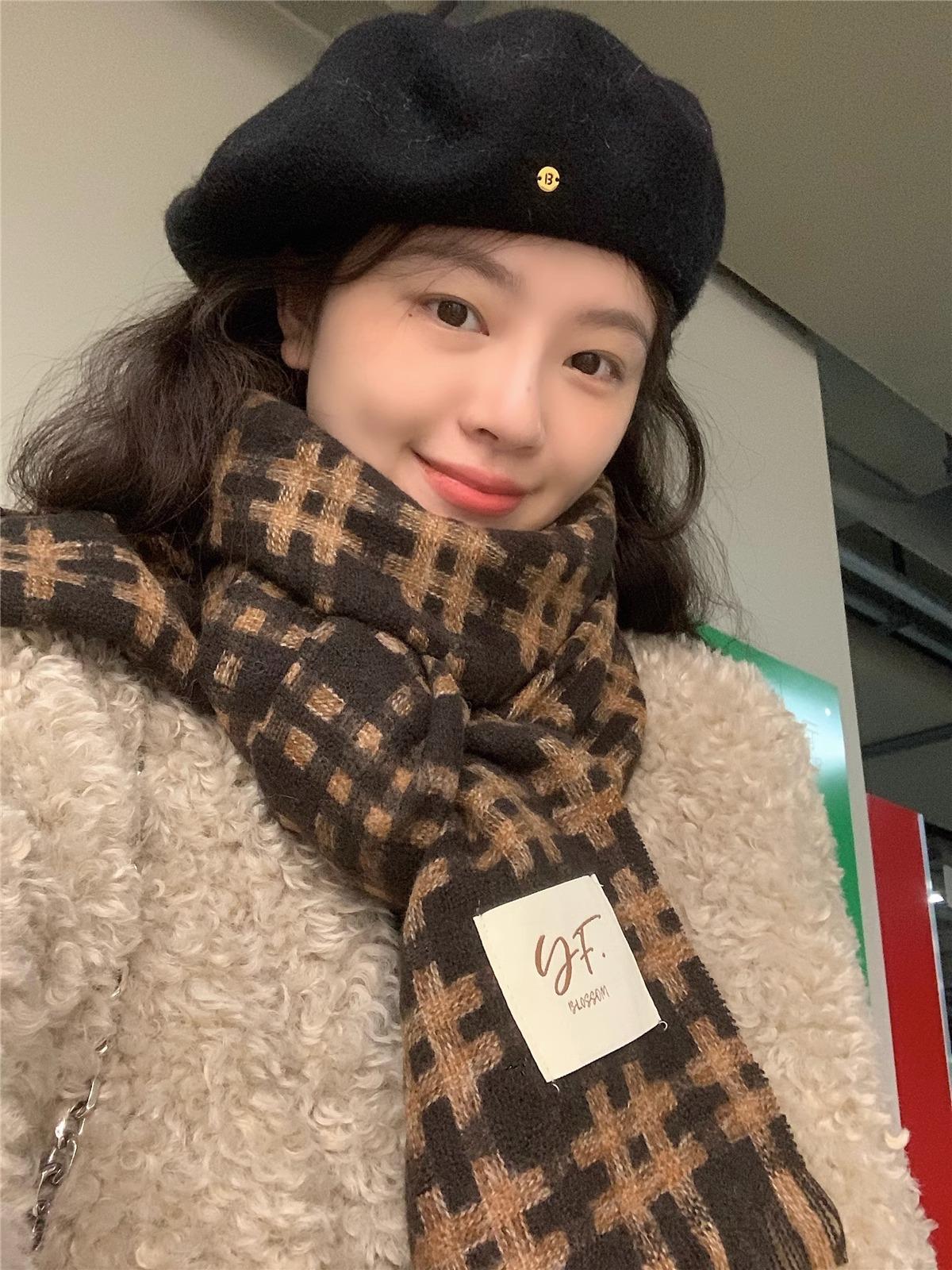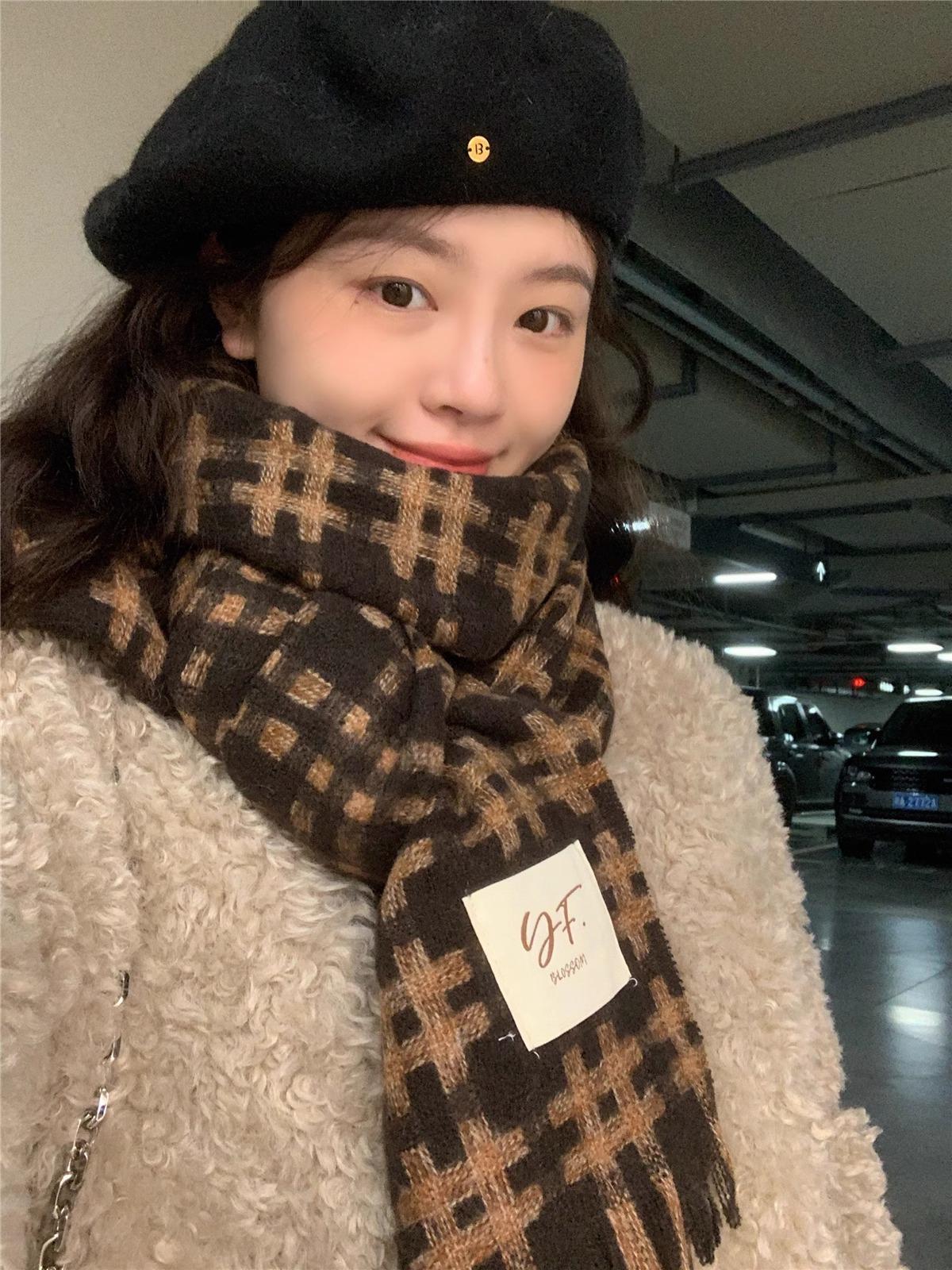 Bufanda a cuadros elegante de alta calidad para mujer, cálida y combinable en invierno, estilo cachemir, estilo retro para estudiantes, moda coreana.