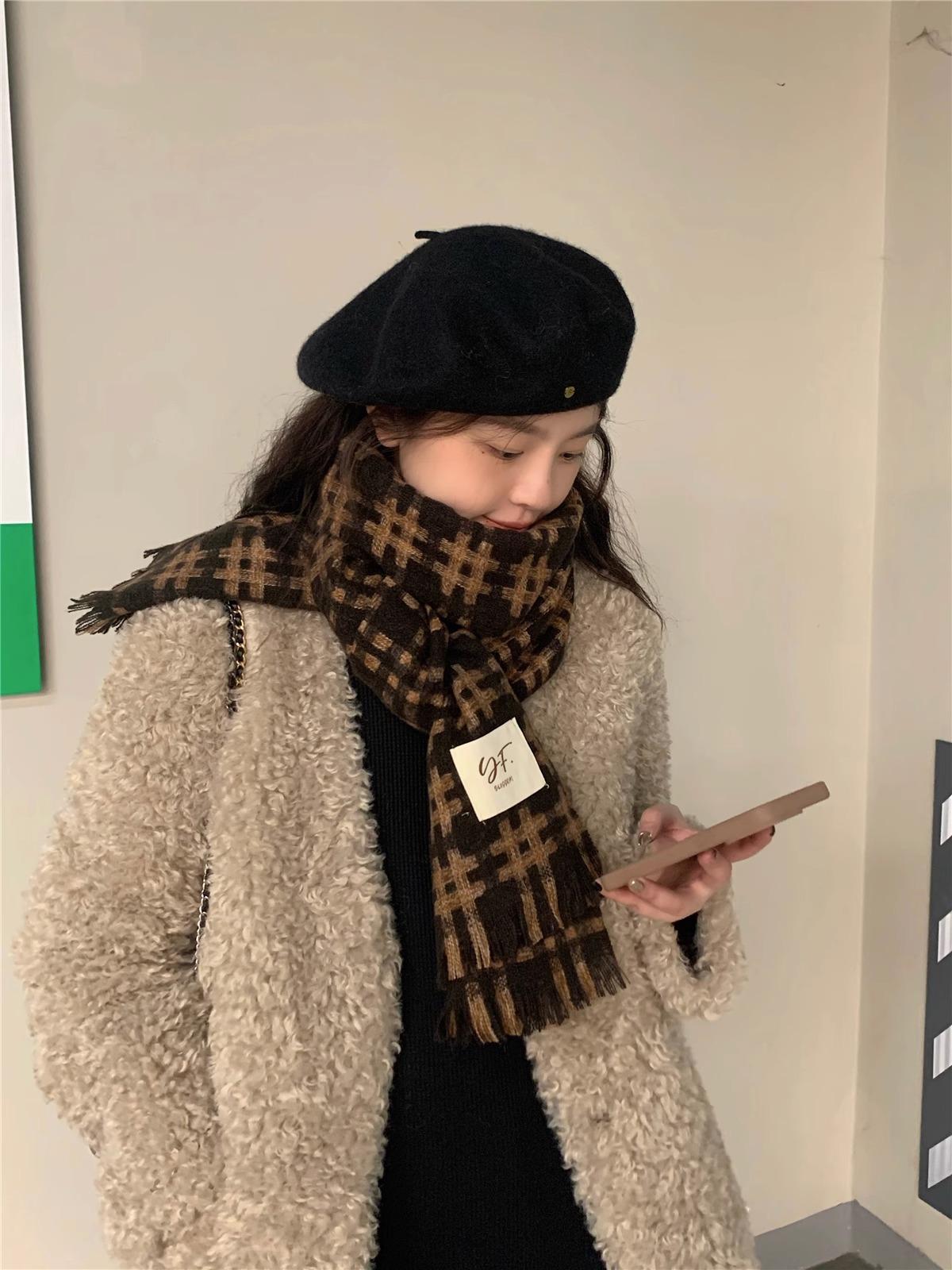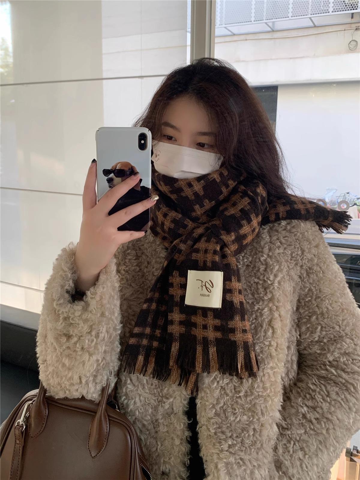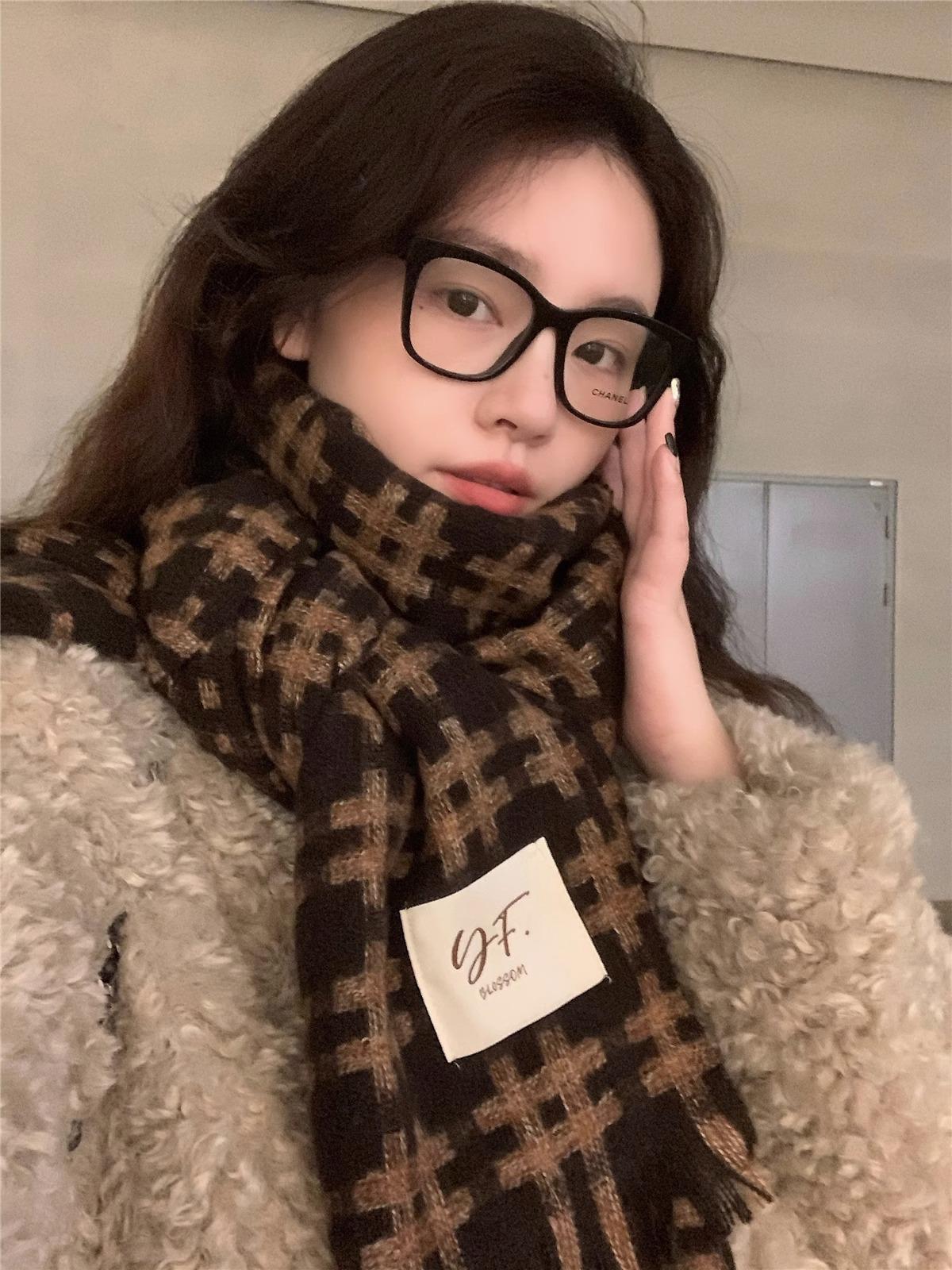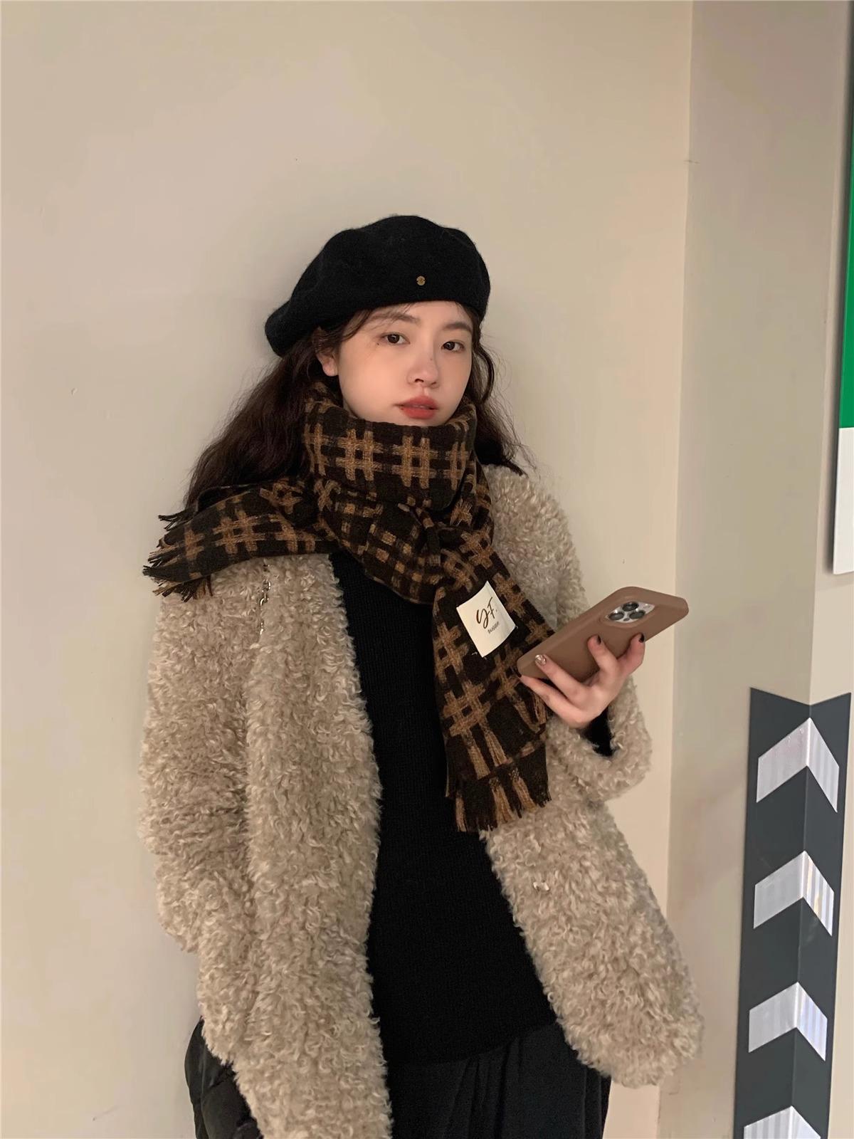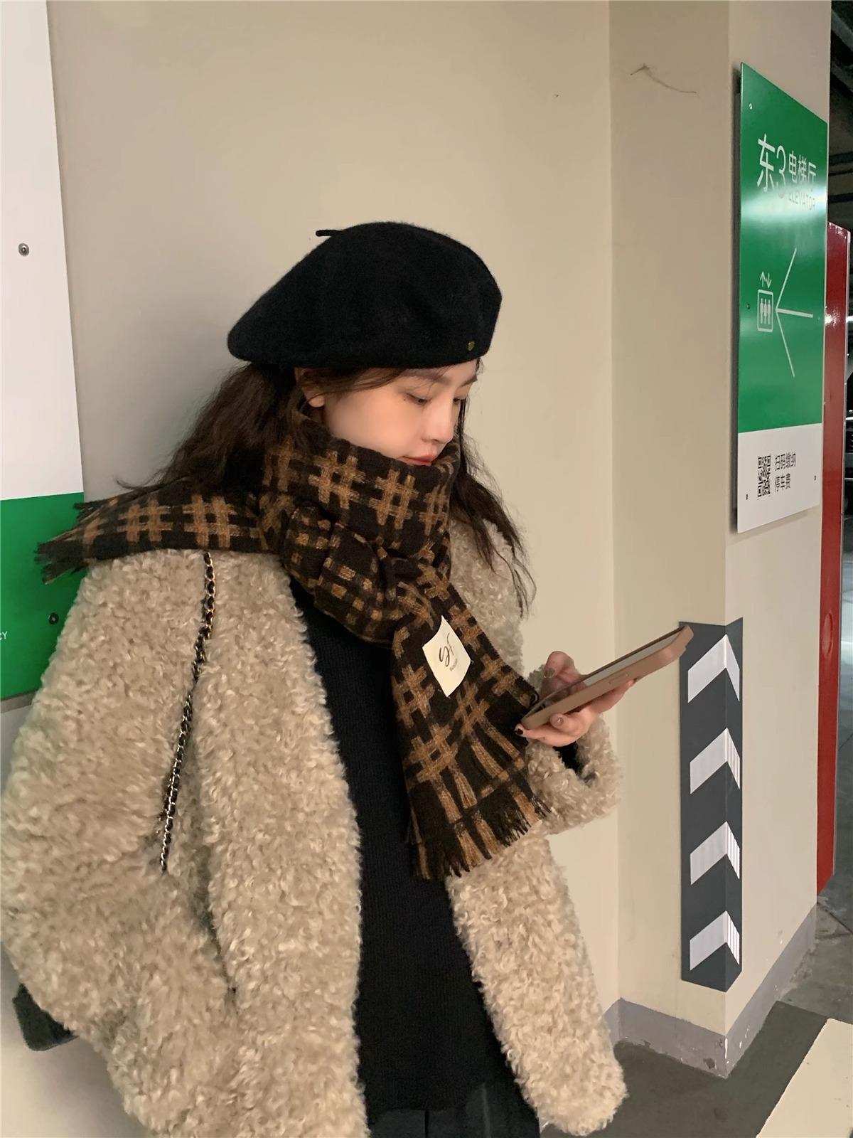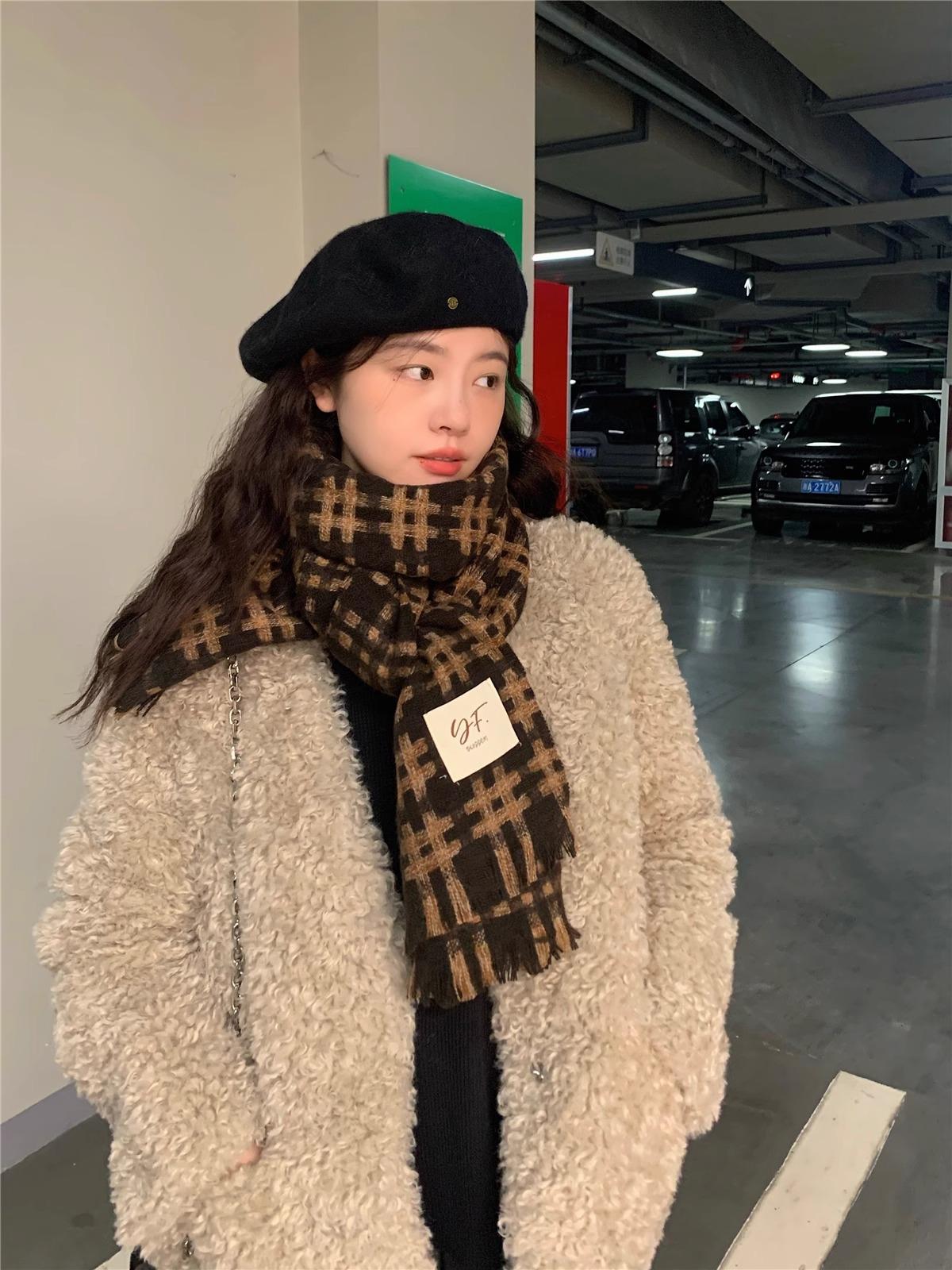 Bufanda a cuadros elegante de alta calidad para mujer, cálida y combinable en invierno, estilo cachemir, estilo retro para estudiantes, moda coreana.