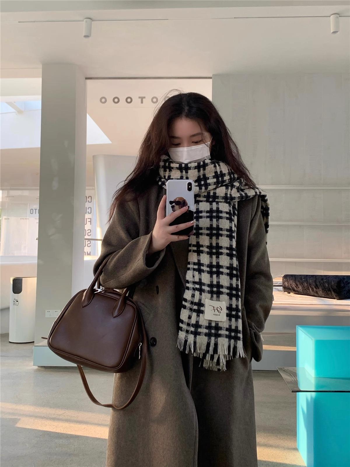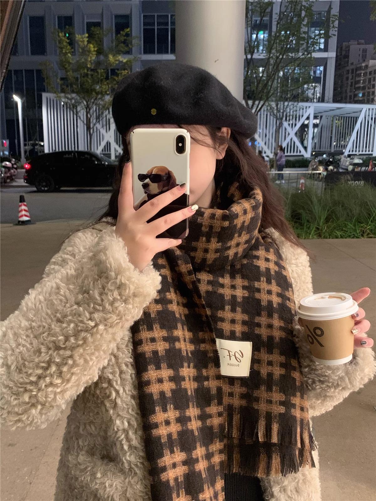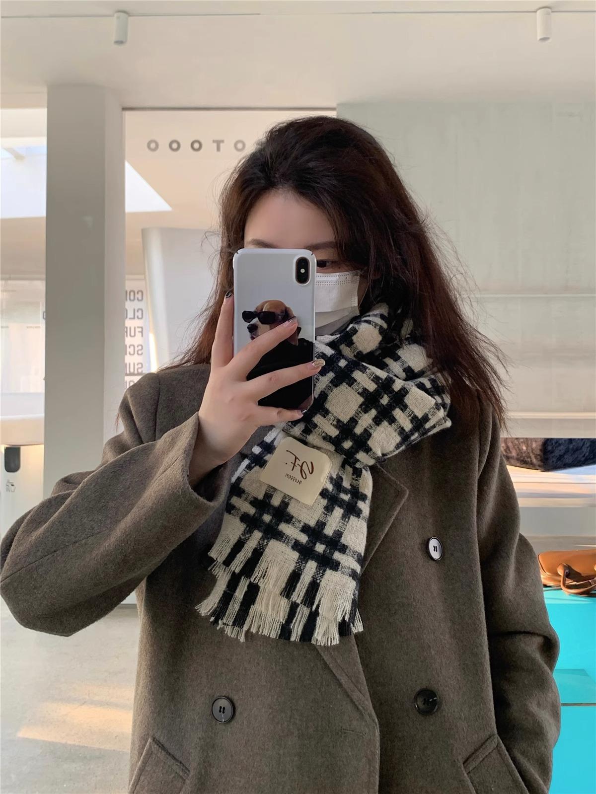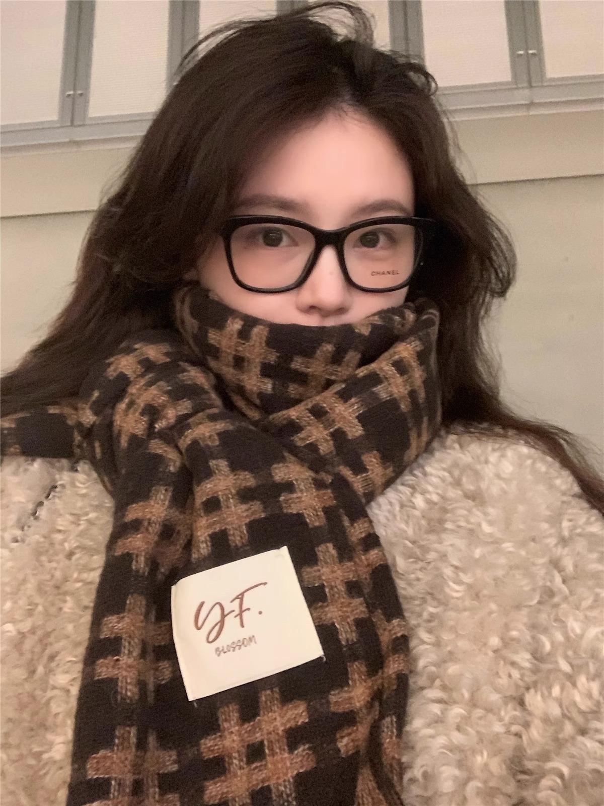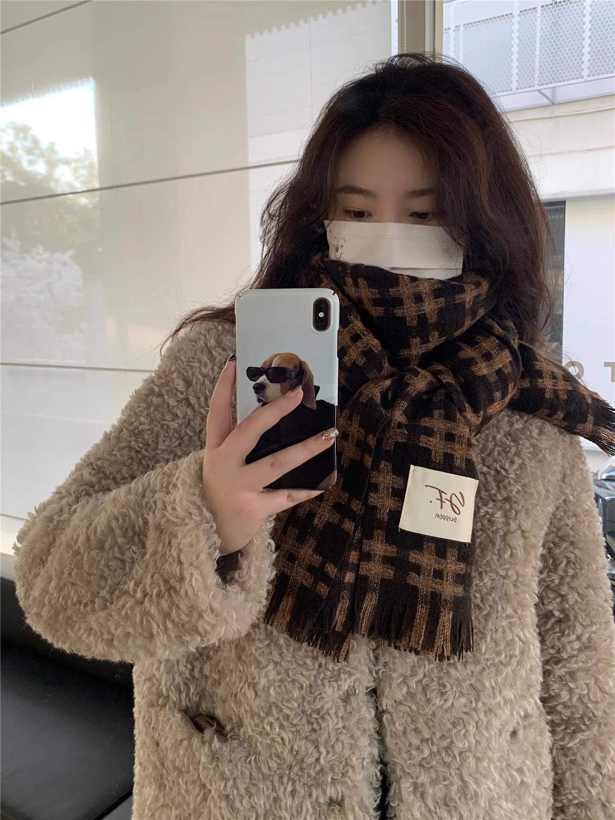 Bufanda a cuadros elegante de alta calidad para mujer, cálida y combinable en invierno, estilo cachemir, estilo retro para estudiantes, moda coreana.