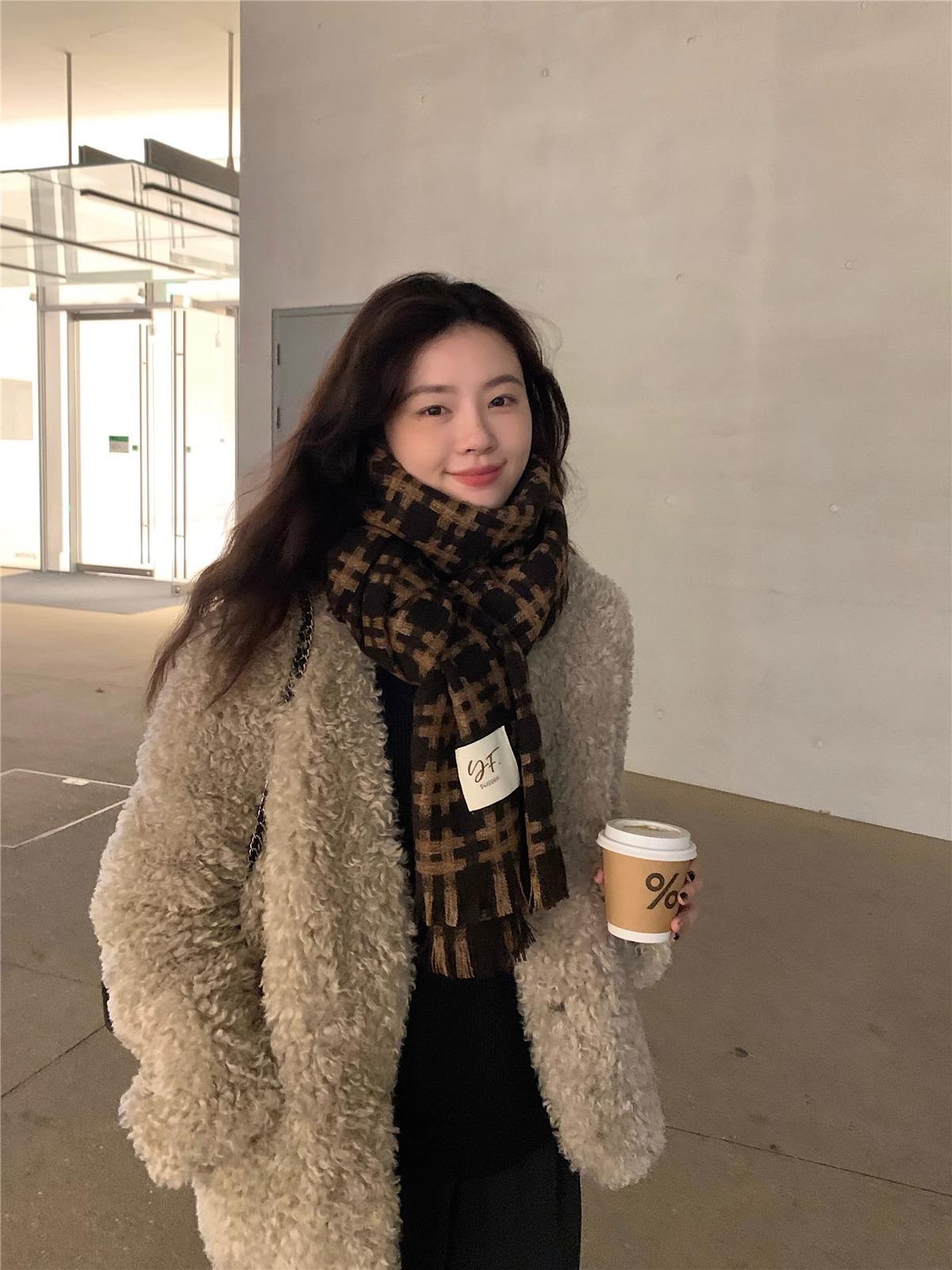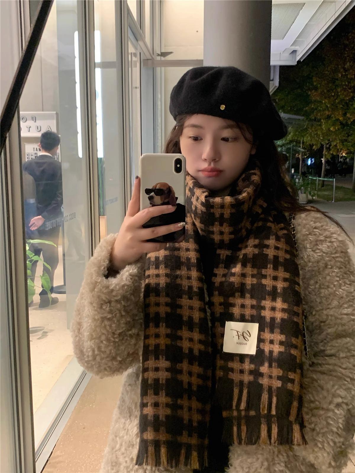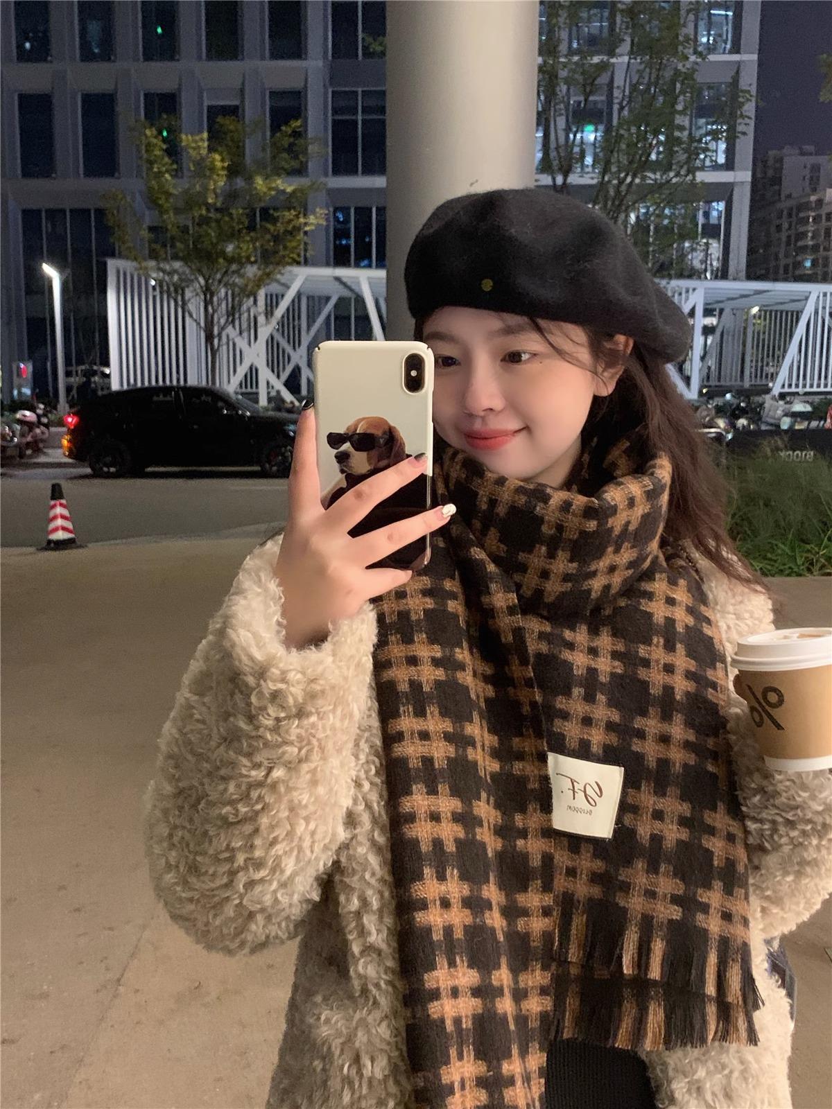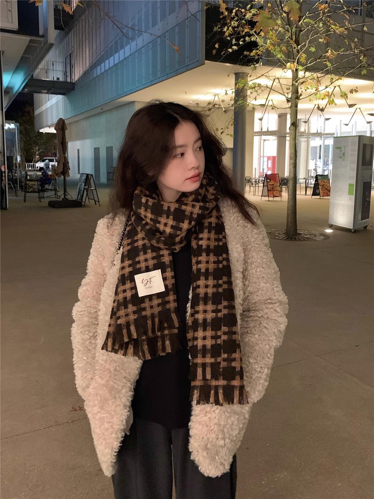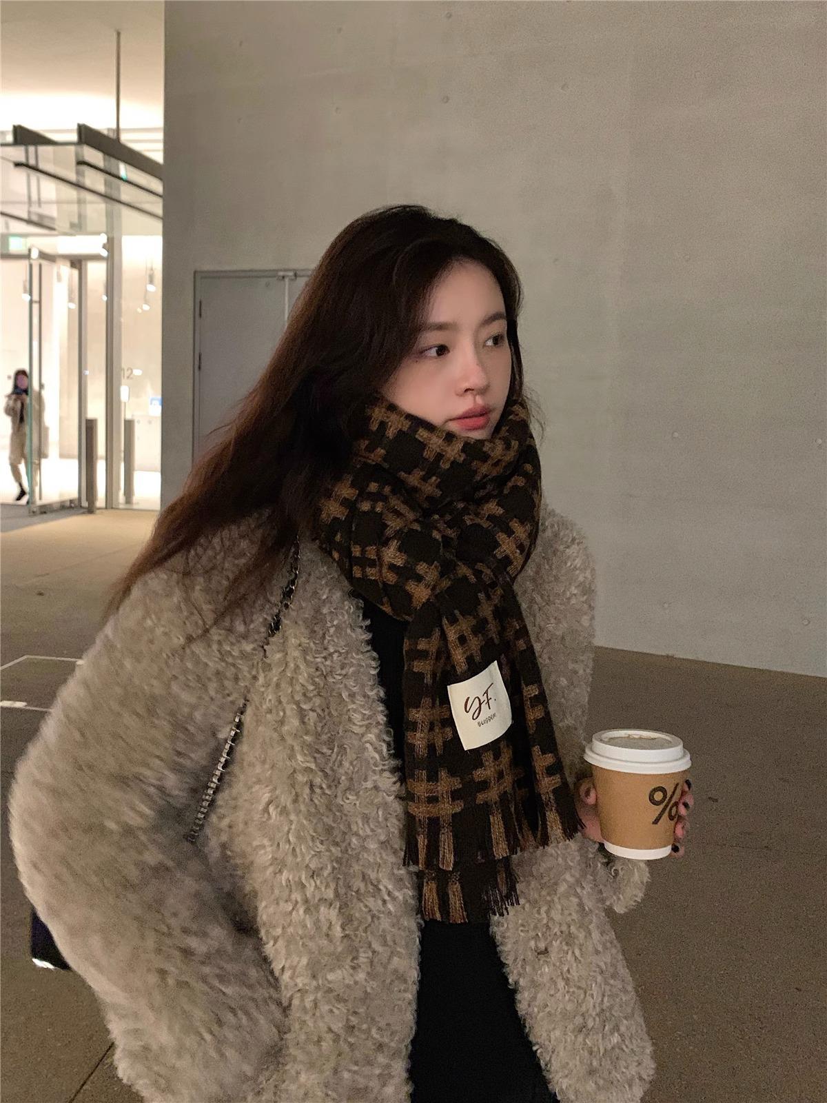 Bufanda a cuadros elegante de alta calidad para mujer, cálida y combinable en invierno, estilo cachemir, estilo retro para estudiantes, moda coreana.