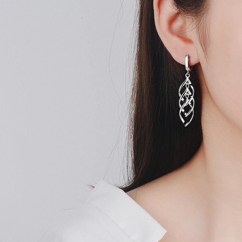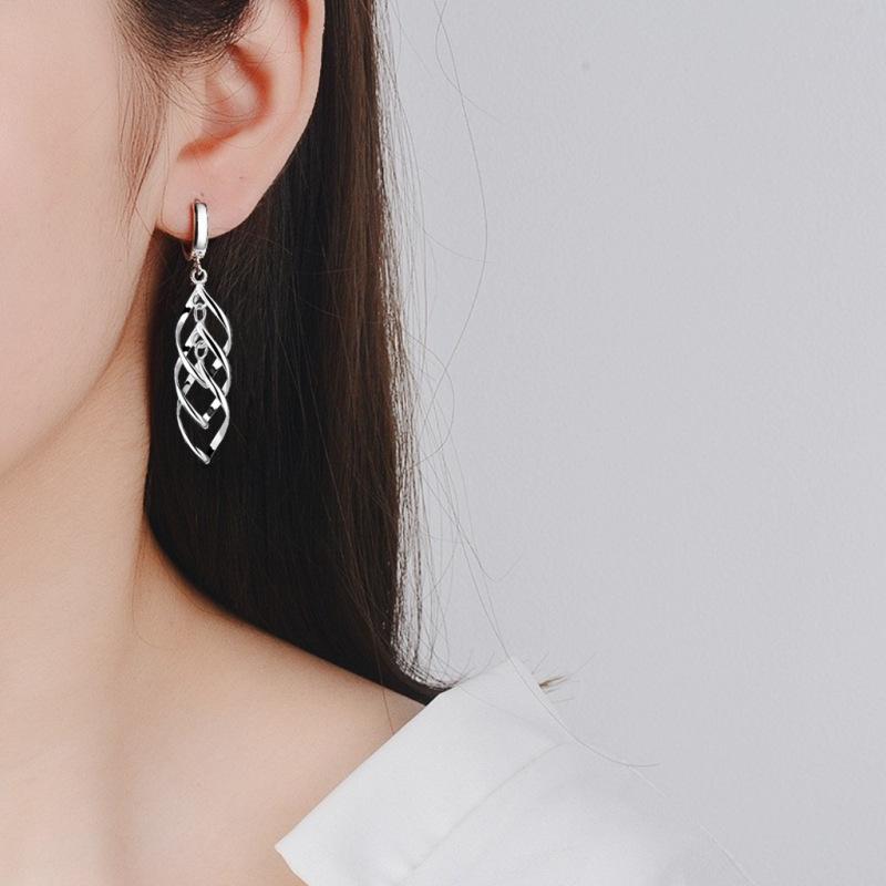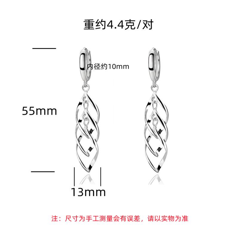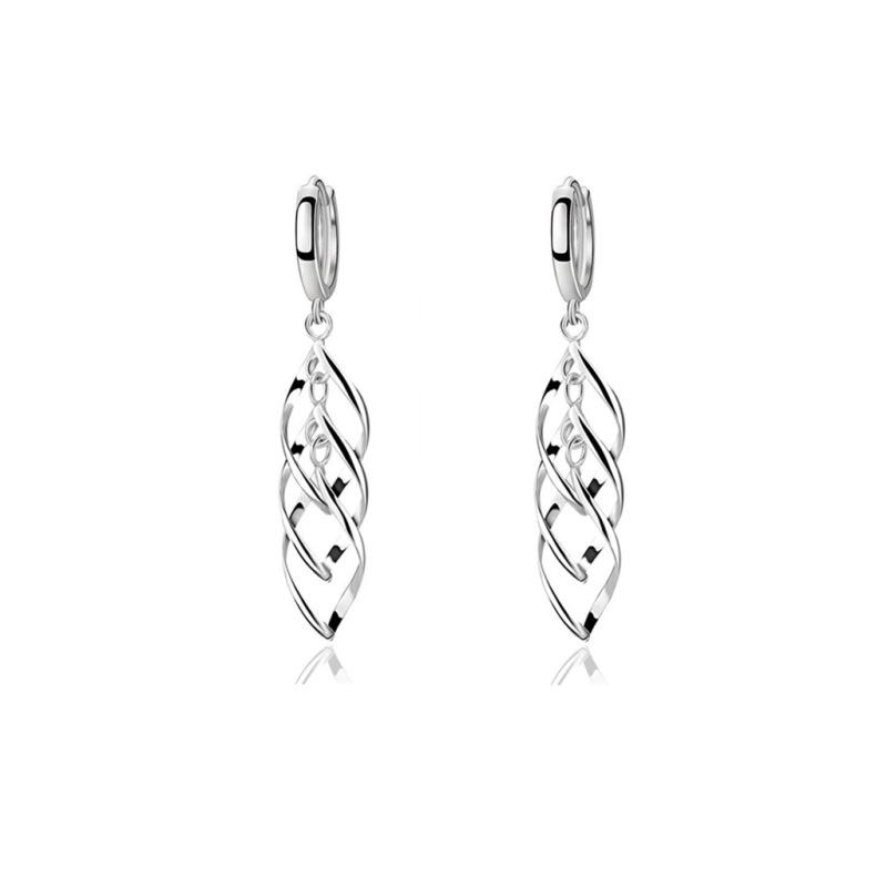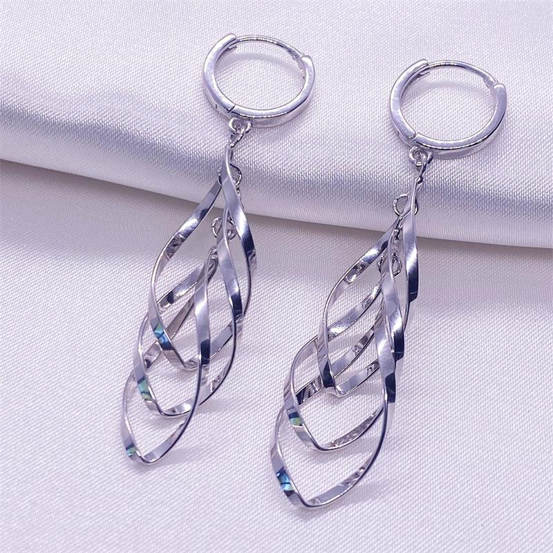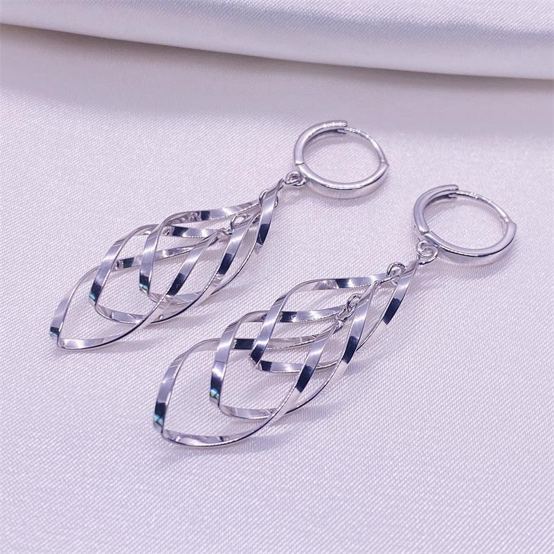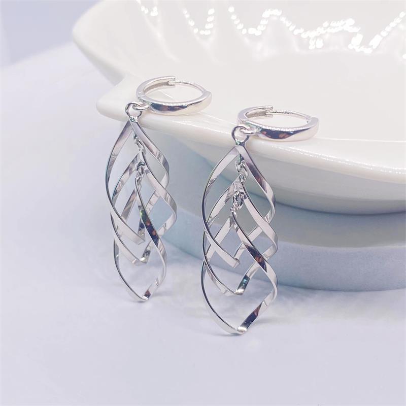 Nuevos pendientes de plata de ley S925 de tres vueltas con borde cruzado, largos y ondulados, de alta gama, con hebilla de oreja para niñas, joyería al por mayor