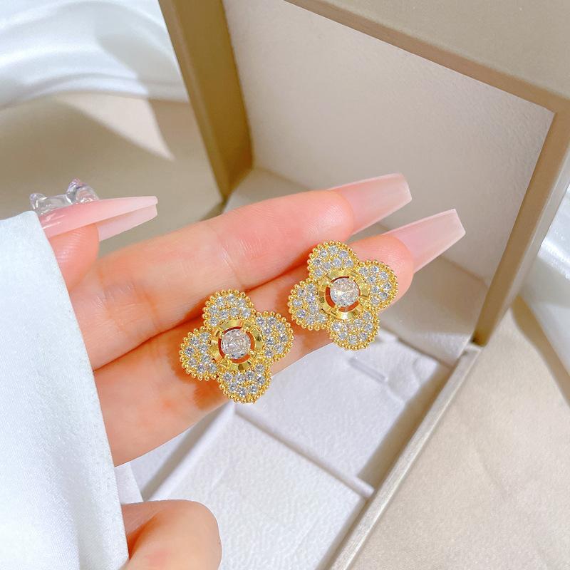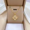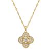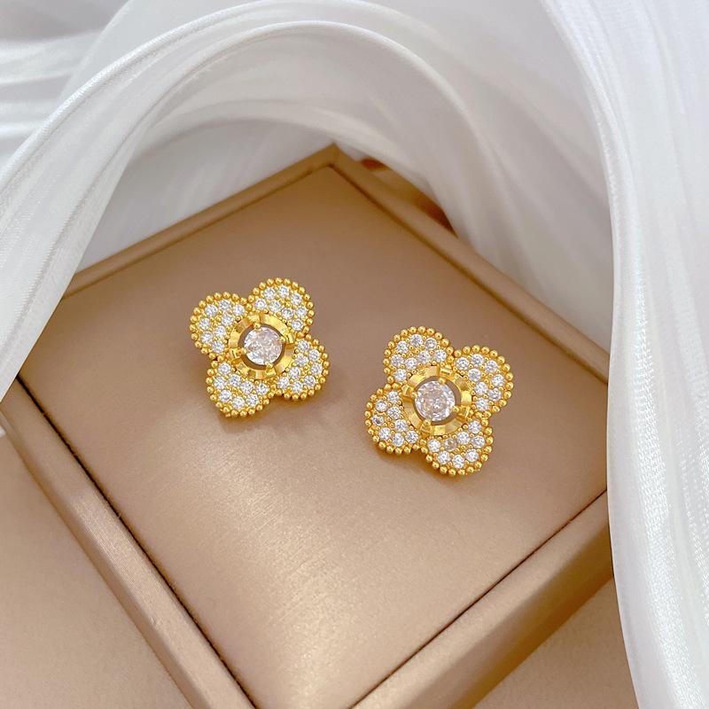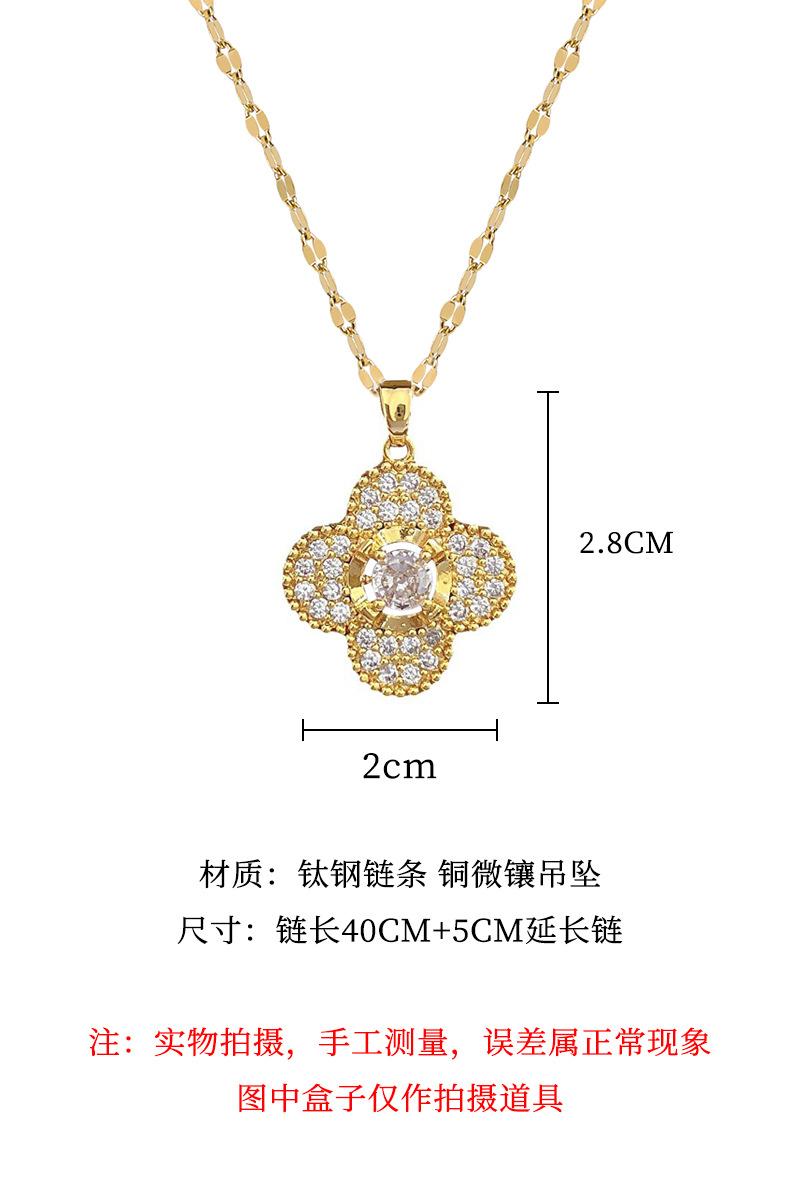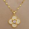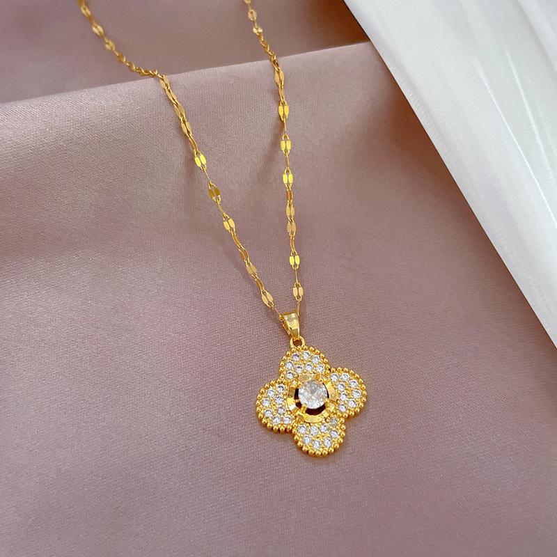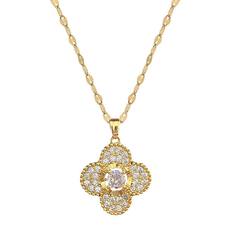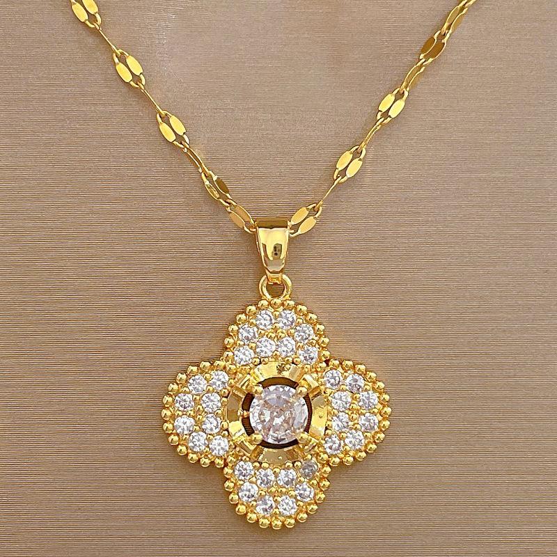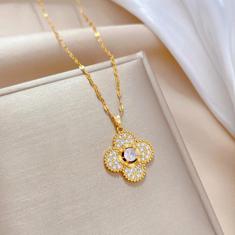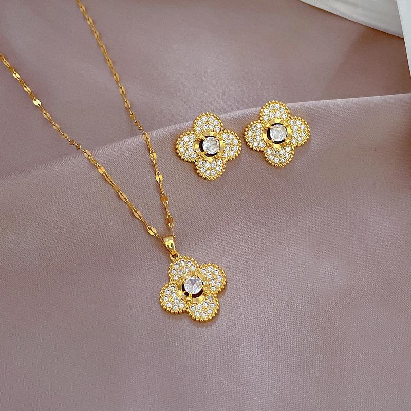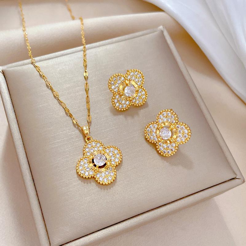[Acero de titanio] Collar y pendientes con microincrustaciones, elegante combinación de collar y pendientes de banquete con flor de cuatro hojas y microincrustaciones de lujo.