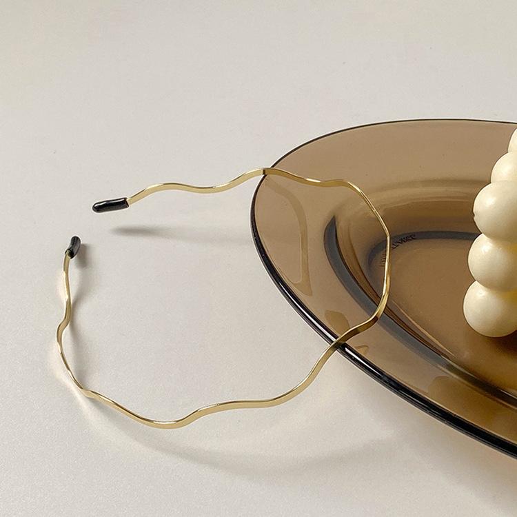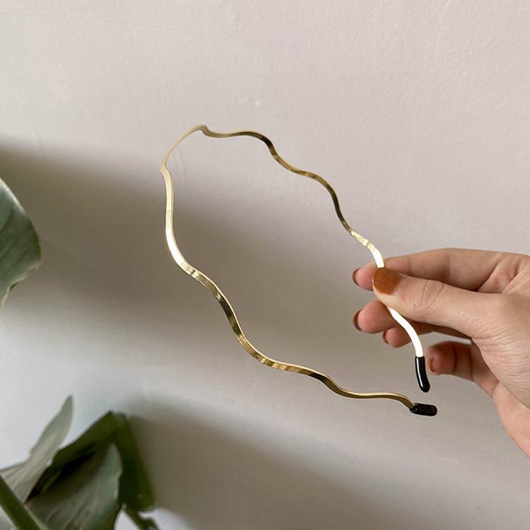 Diadema de onda de aleación dorada retro elegante de alta gama, moderna, versátil, doble de metal, para presionar el cabello, pasador