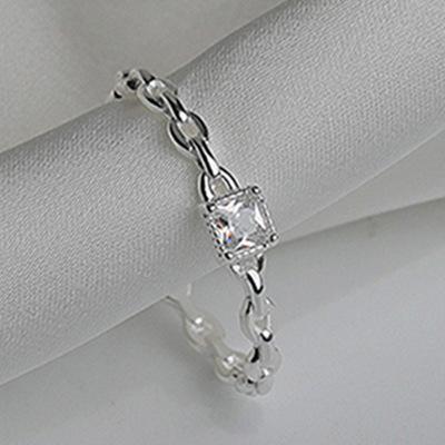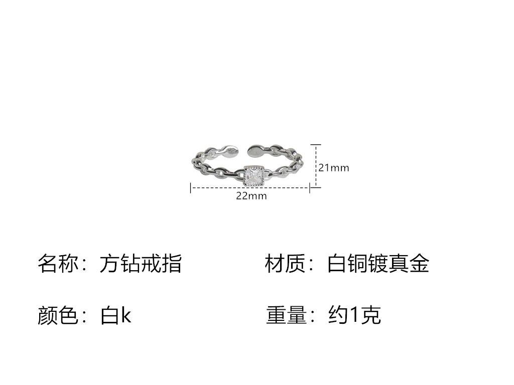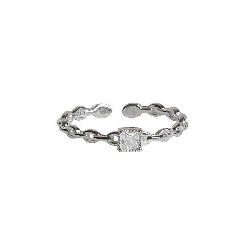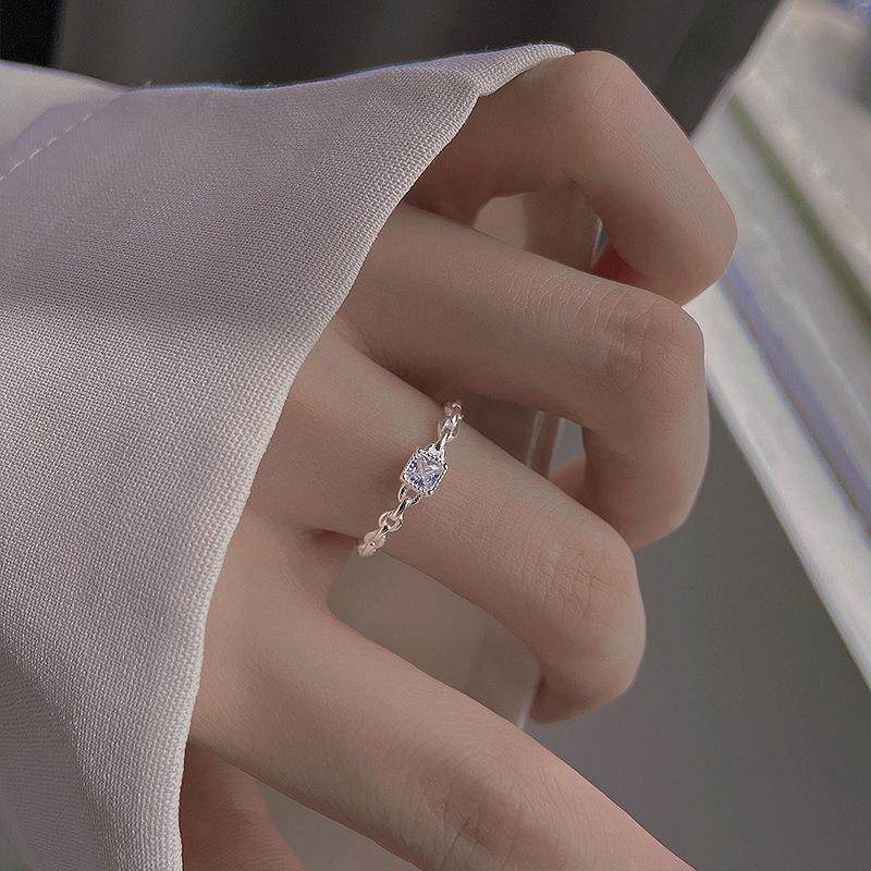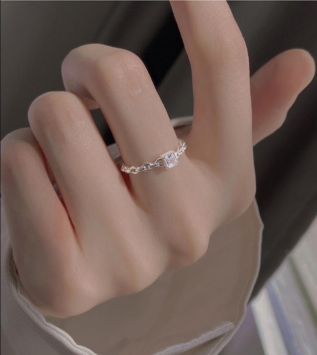 Anillo Abierto de Cadena Geométrica de Diamante Cuadrado para Mujer Estilo Coreano Lujo Ligero Nicho Diamante Único Cuadrado Anillo de Zircón Joyería