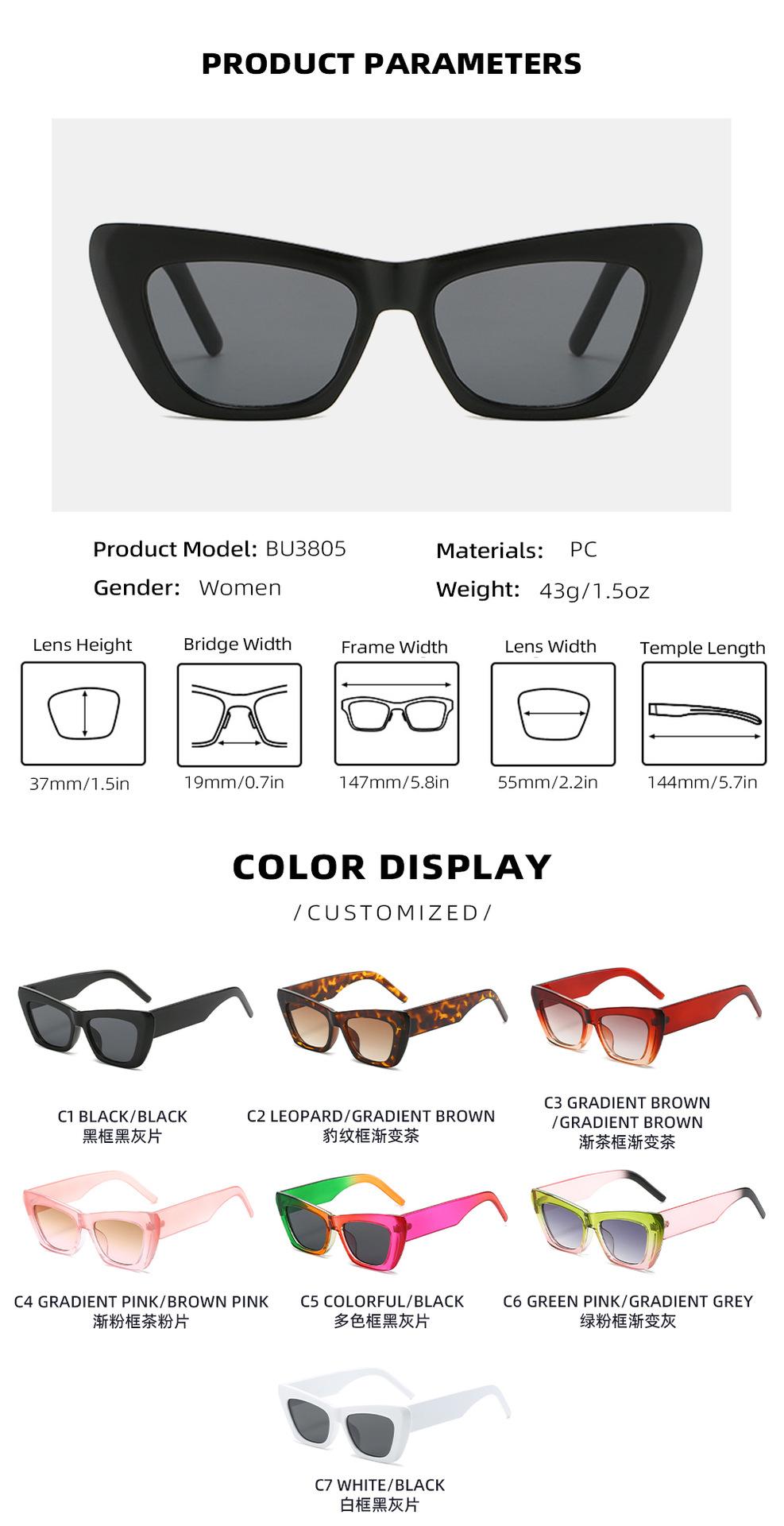 Gafas de sol cuadradas retro de ojo de gato para mujer, protección solar UV400, a prueba de rayos UV, gafas de sol de moda con montura pequeña con degradado transfronterizo.