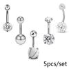 Plataforma de comercio electrónico europea y americana explosiones anillo para el ombligo juego de 5 piezas de clavo para el ombligo de piedra suelta con joyería para perforación del ombligo de circonita