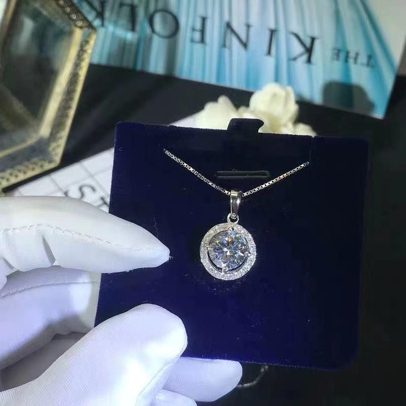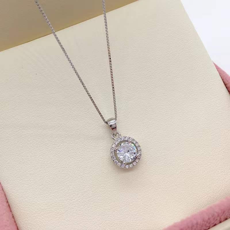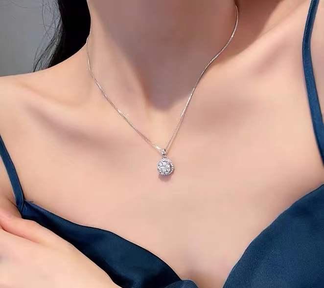 Bolsa cuadrada de cuatro garras cadena de clavícula redonda de diamante único plateada simulación collar simple de moda de lujo ligero para mujer
