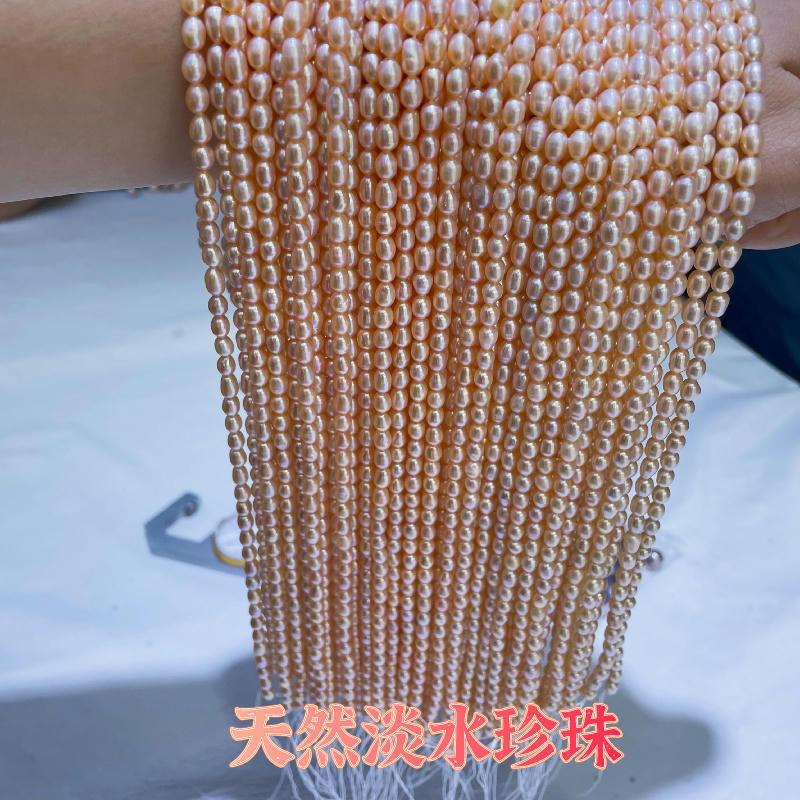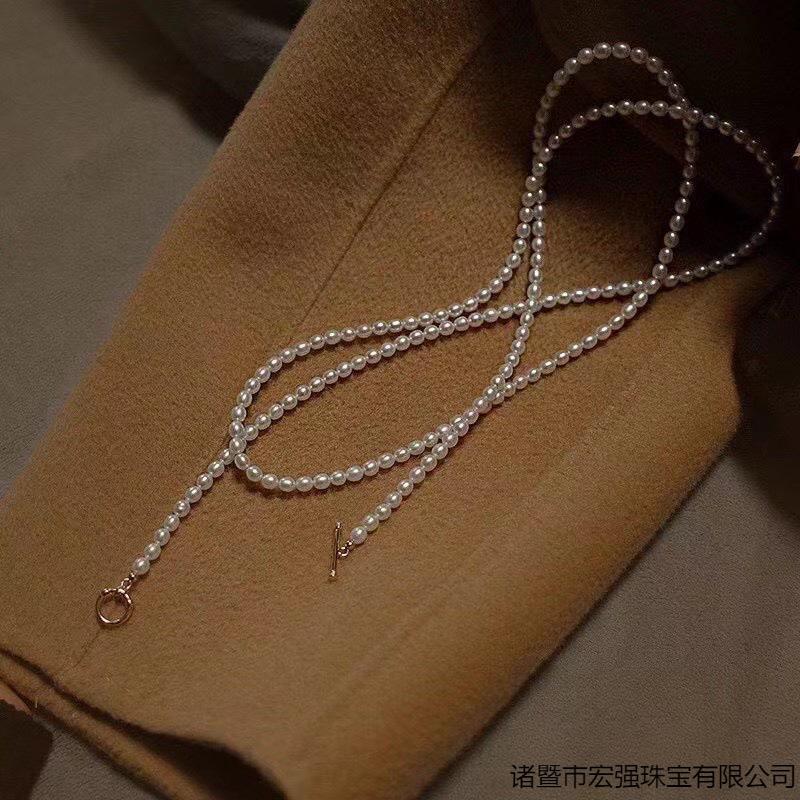 Collar de perlas de agua dulce de 3-5 mm con forma de mijo fino, hebilla OT, accesorio de ropa, cadena de suéter con cuentas de mijo ligeras y resistentes de alta calidad |