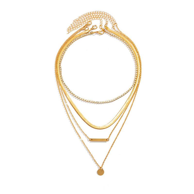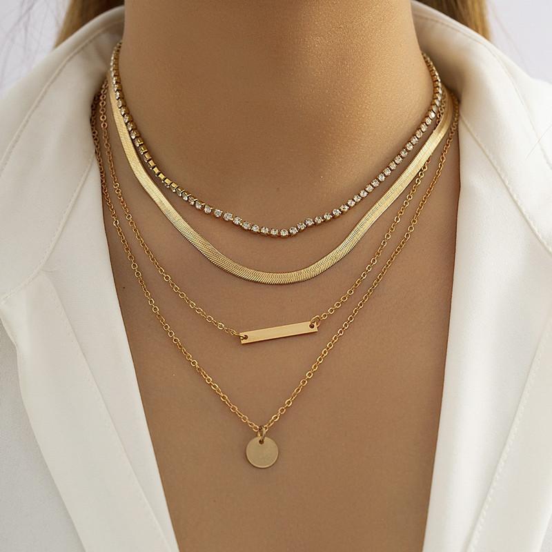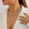 Collar de diamantes con cadena de clavícula de diamantes de imitación de moda transfronteriza europea y americana para mujer, cadena de metal geométrica multicapa con diamantes