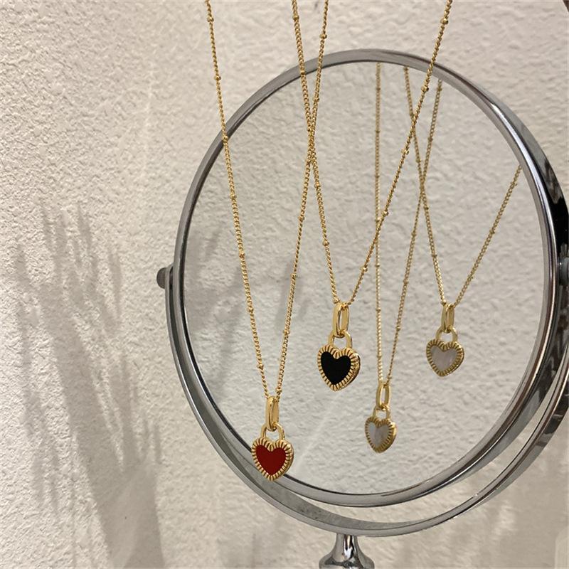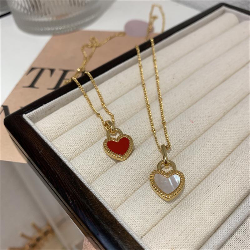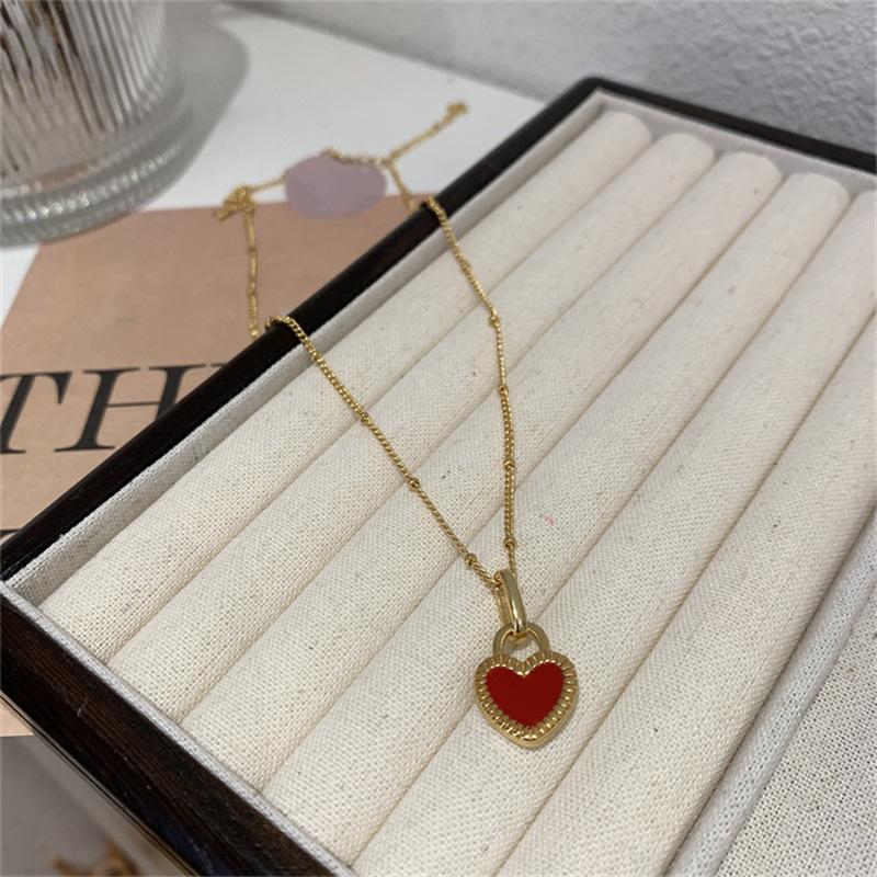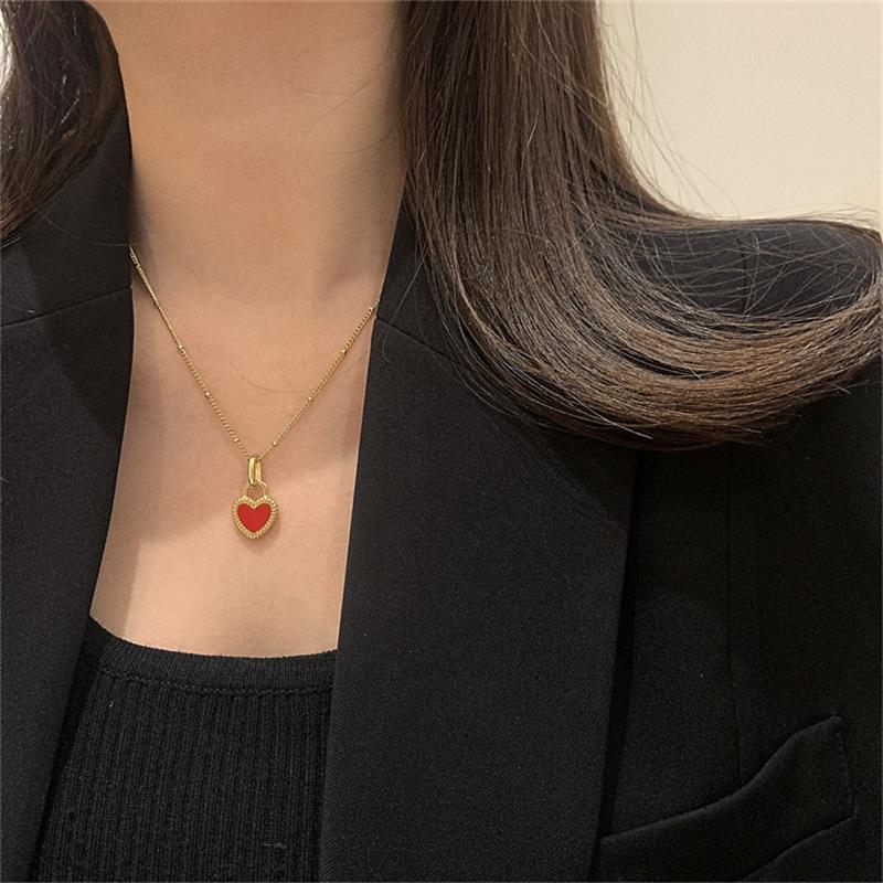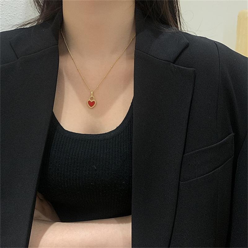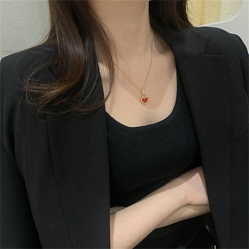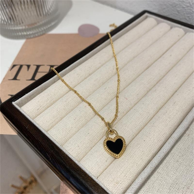 Collar de Corazón Doble Cara Retro Nicho de Lujo Ligero Dorado para Mujer 2025 Nuevo Versátil Collar Corto Cadena Clavicular Mayorista de Moda