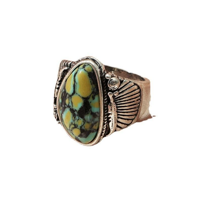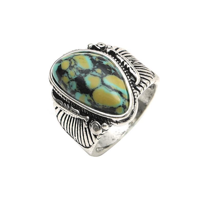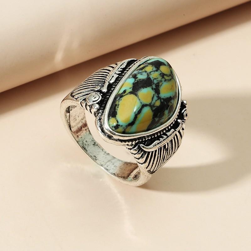 Moda nueva tendencia temperamento personalidad anillo articulado anillo geométrico de aleación turquesa Europa y Estados Unidos exagerado tallado
