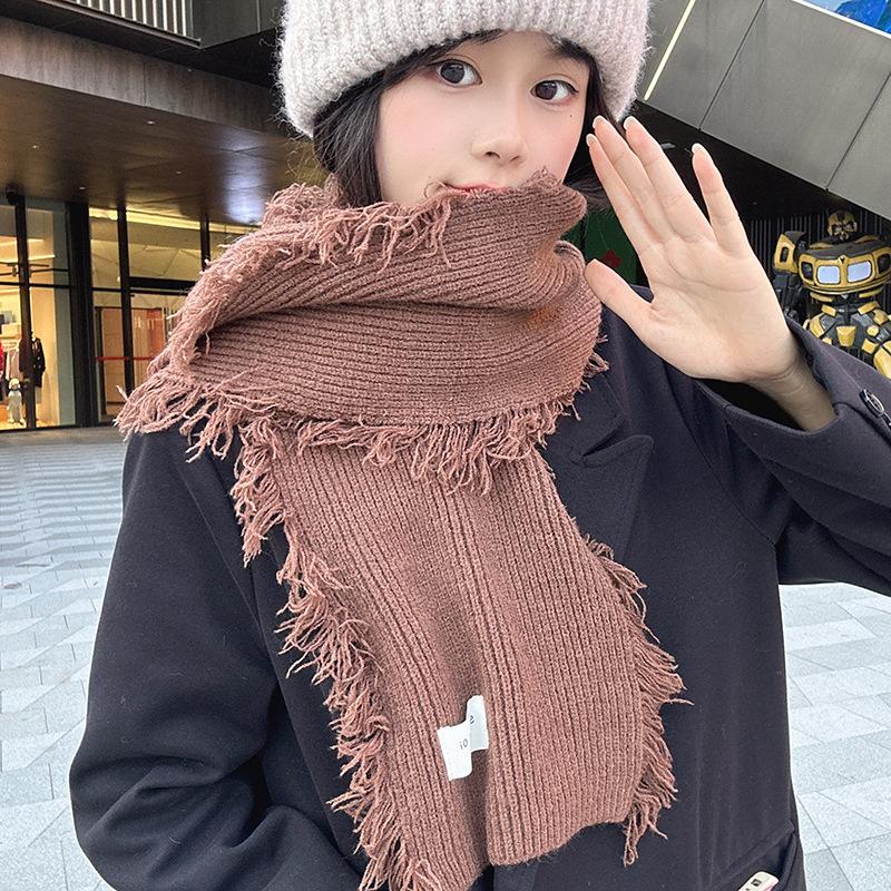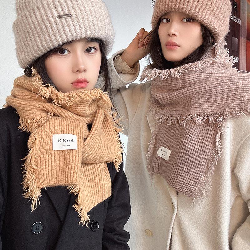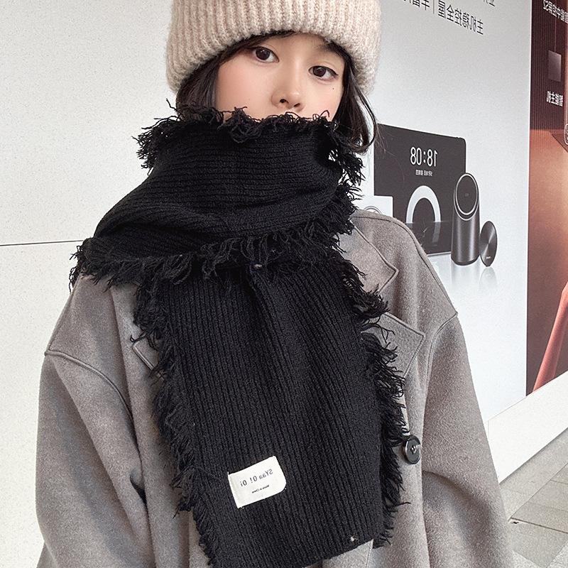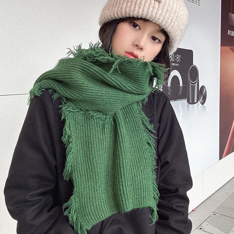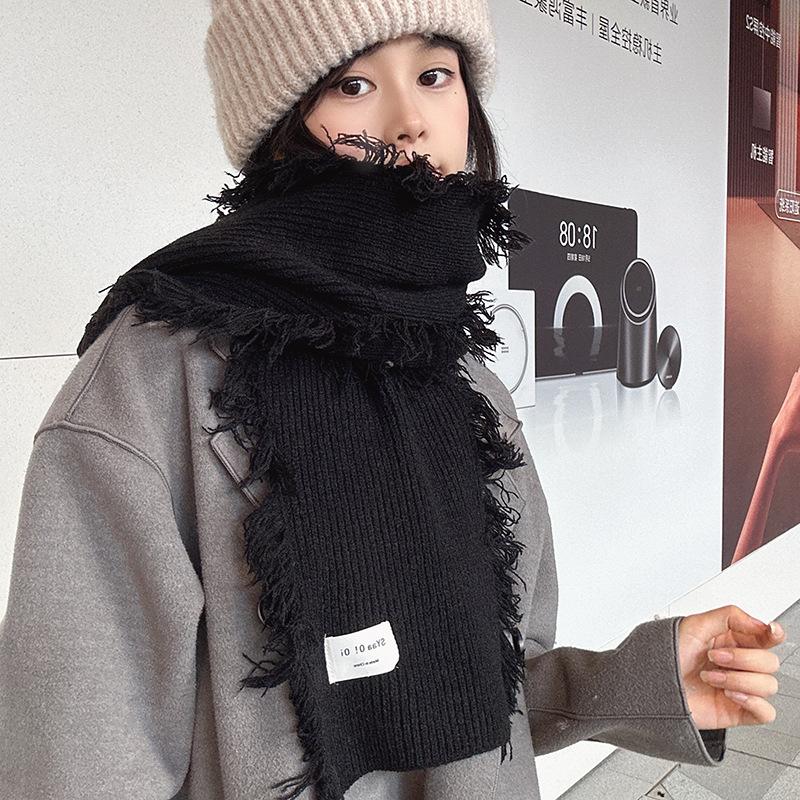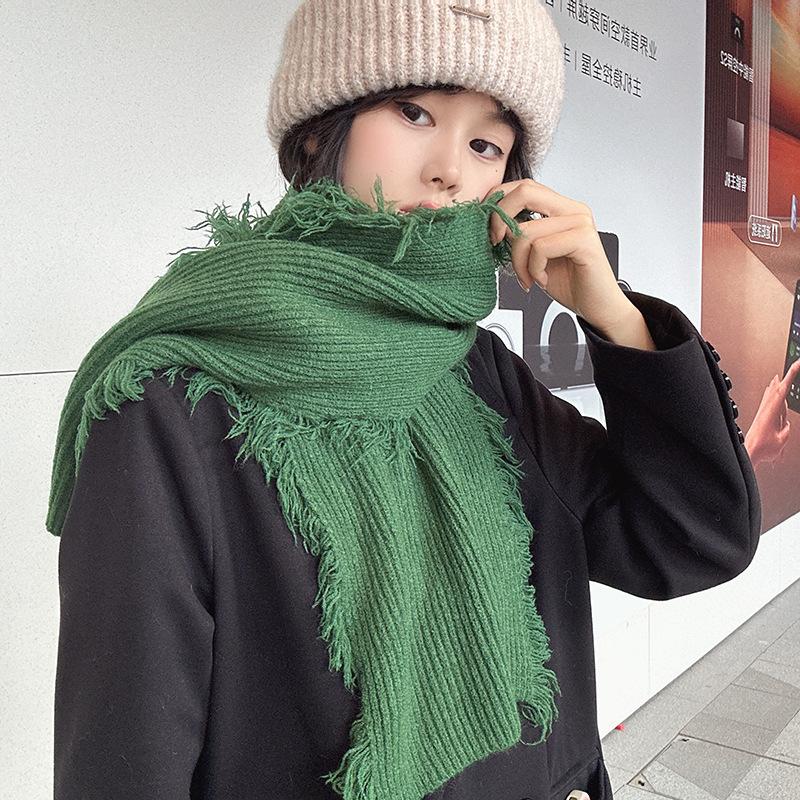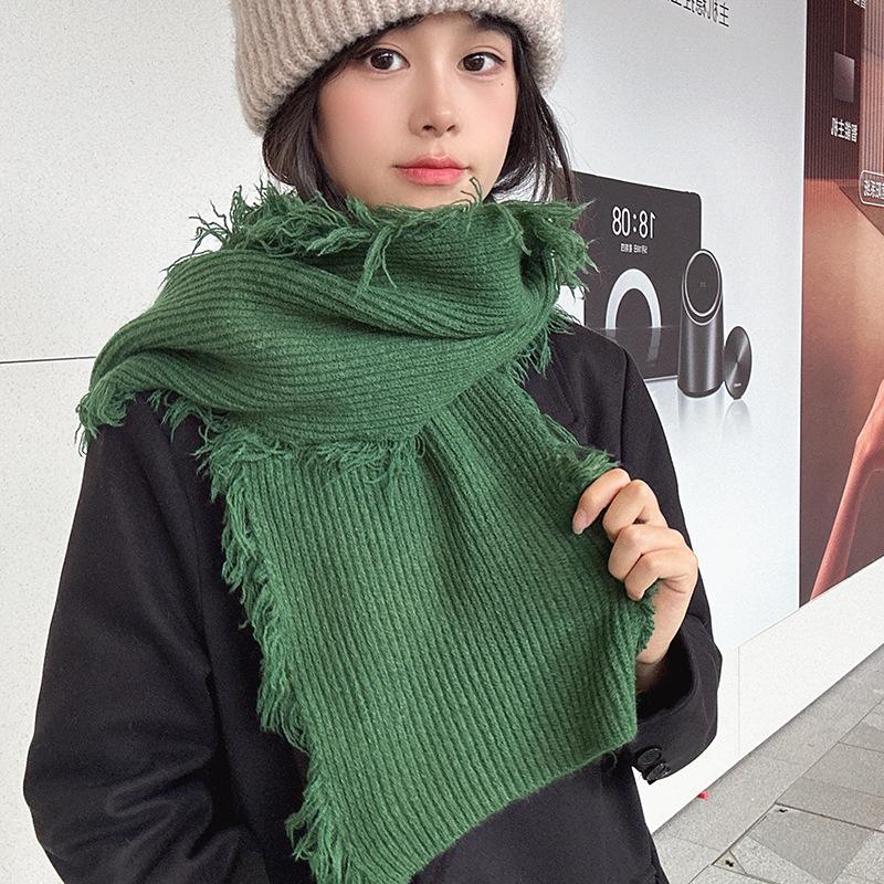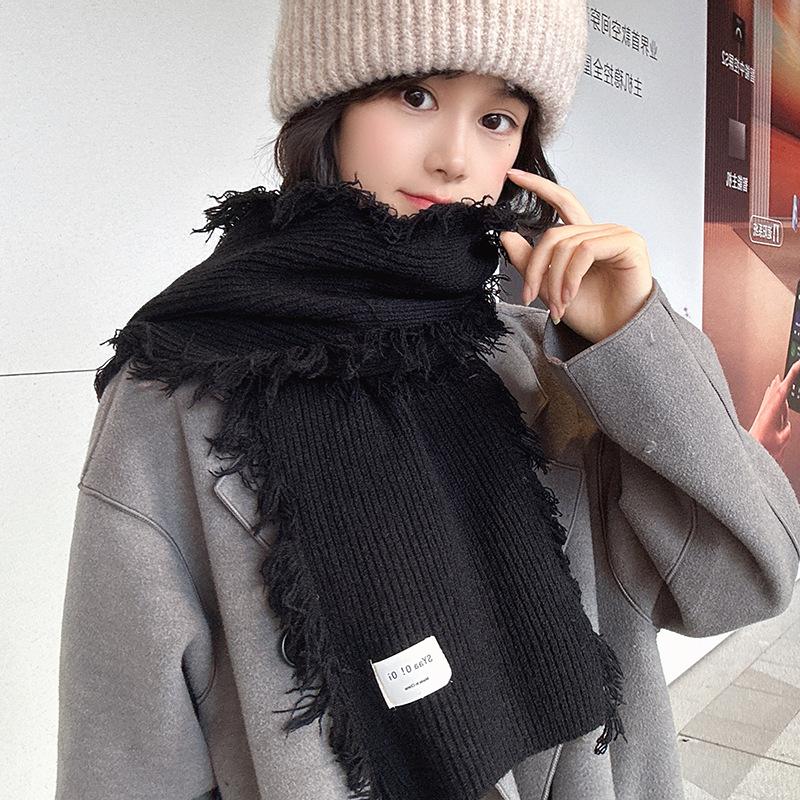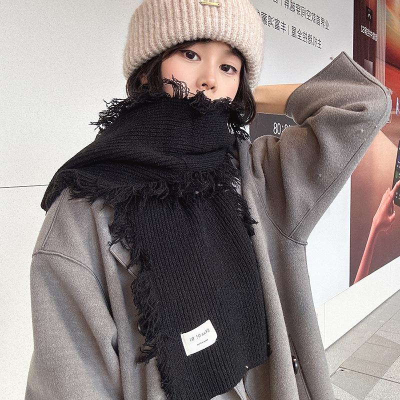 Estilo de diseñador ~ azul oscuro azul claro * bufanda versátil de color sólido estilo coreano deshilachado bufanda cálida gruesa otoño e invierno