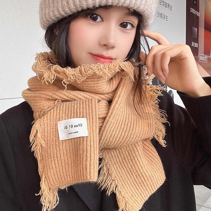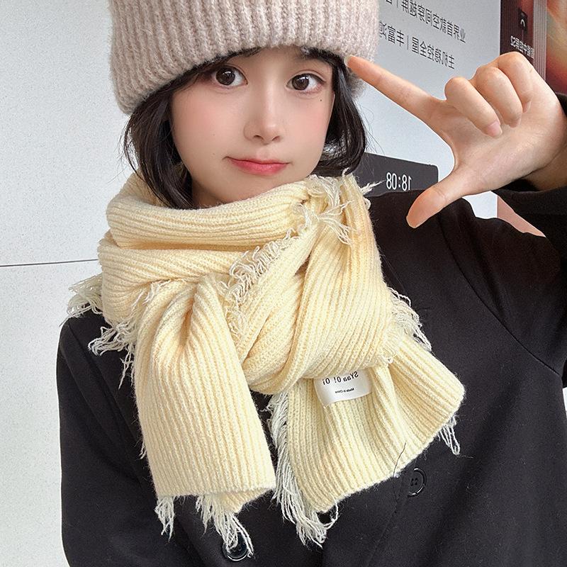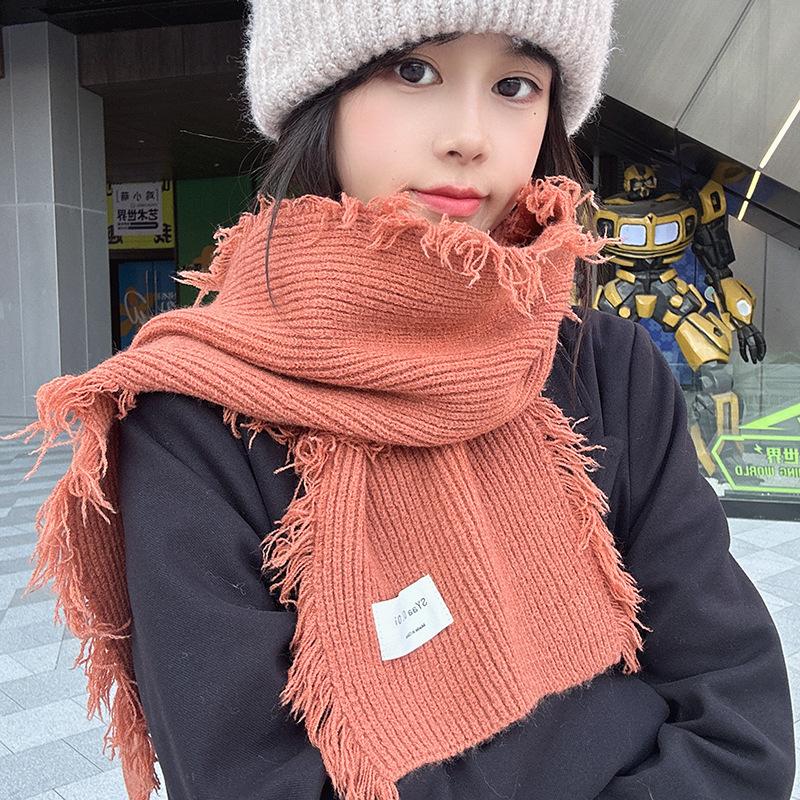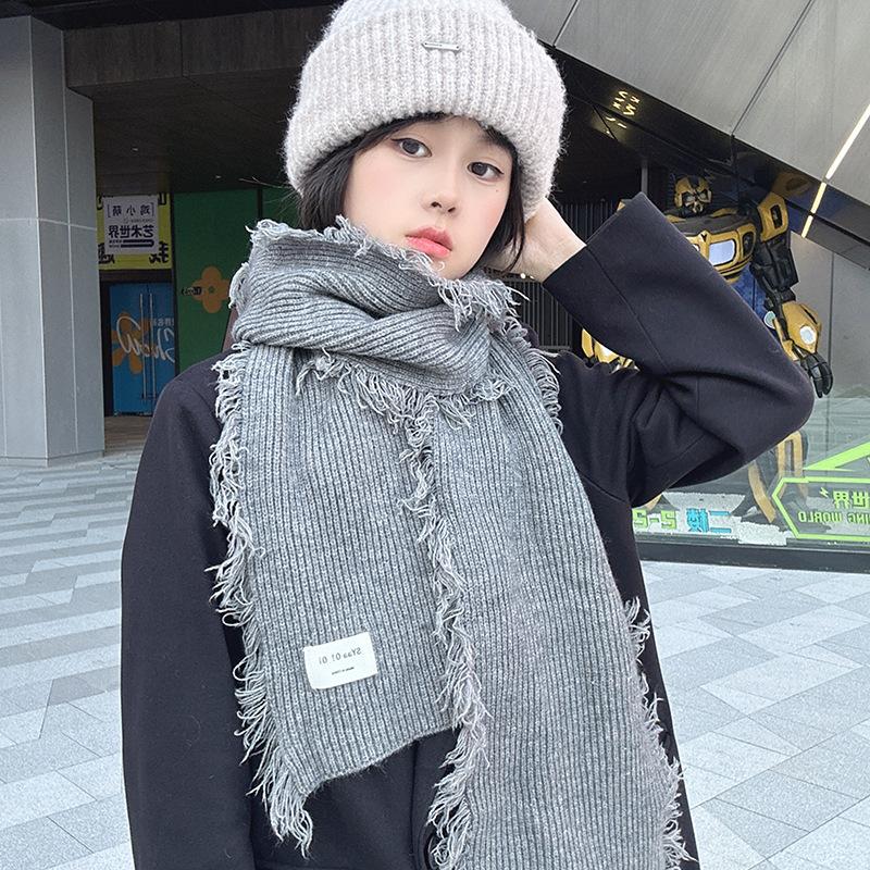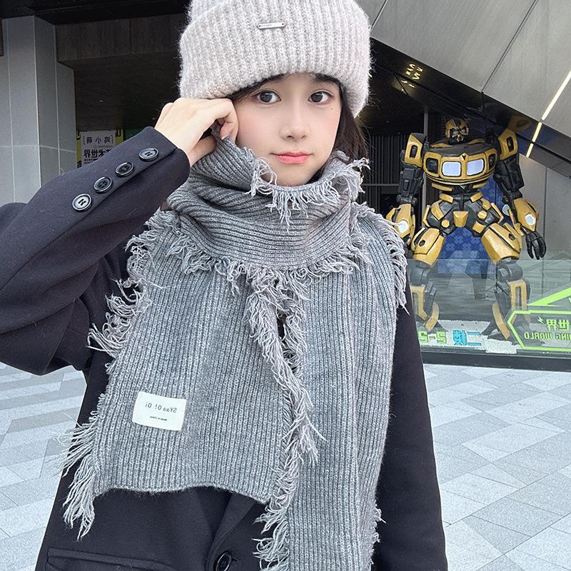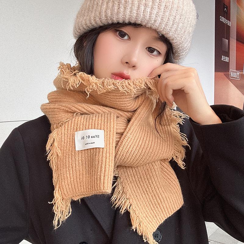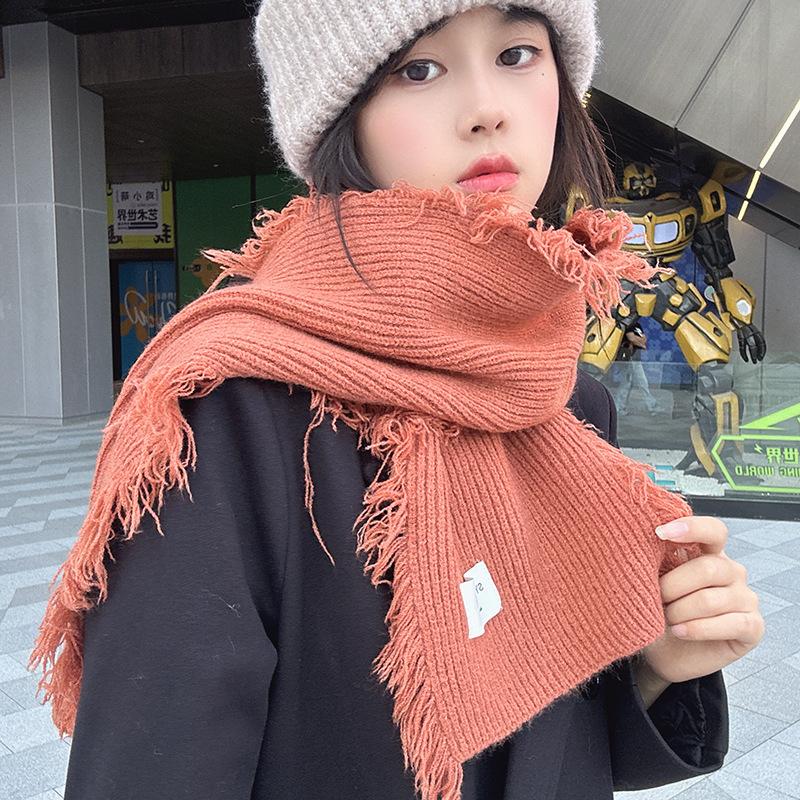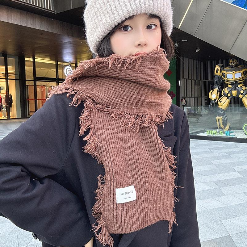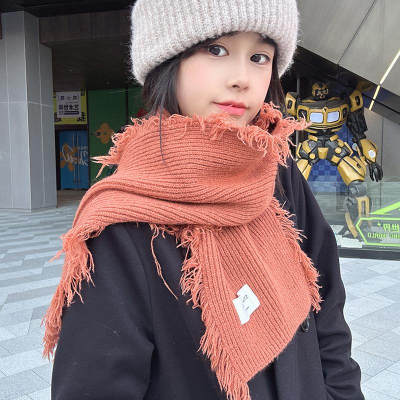 Estilo de diseñador ~ azul oscuro azul claro * bufanda versátil de color sólido estilo coreano deshilachado bufanda cálida gruesa otoño e invierno
