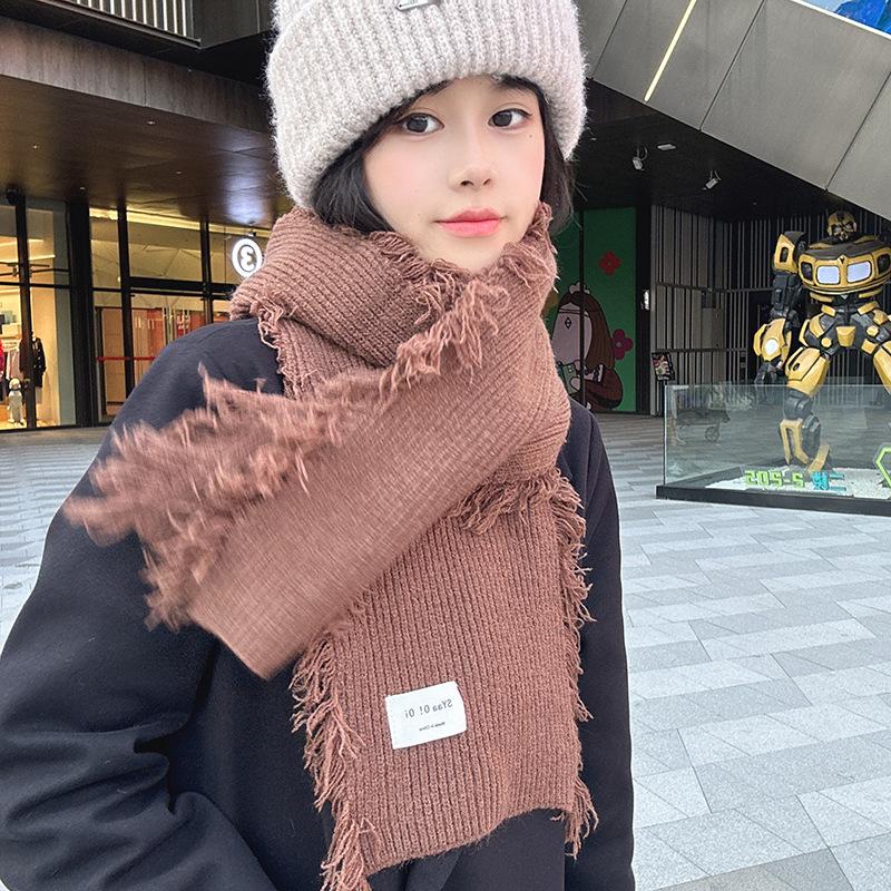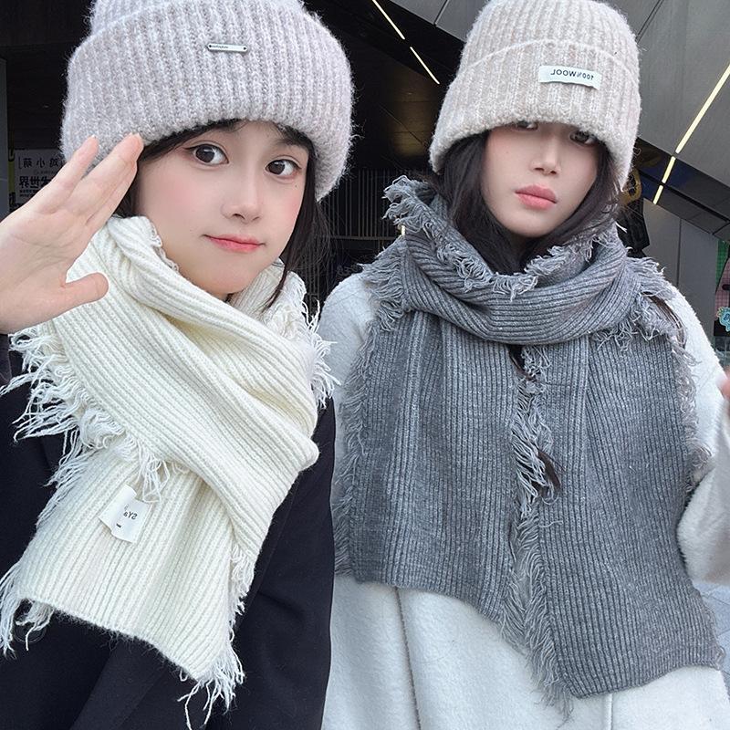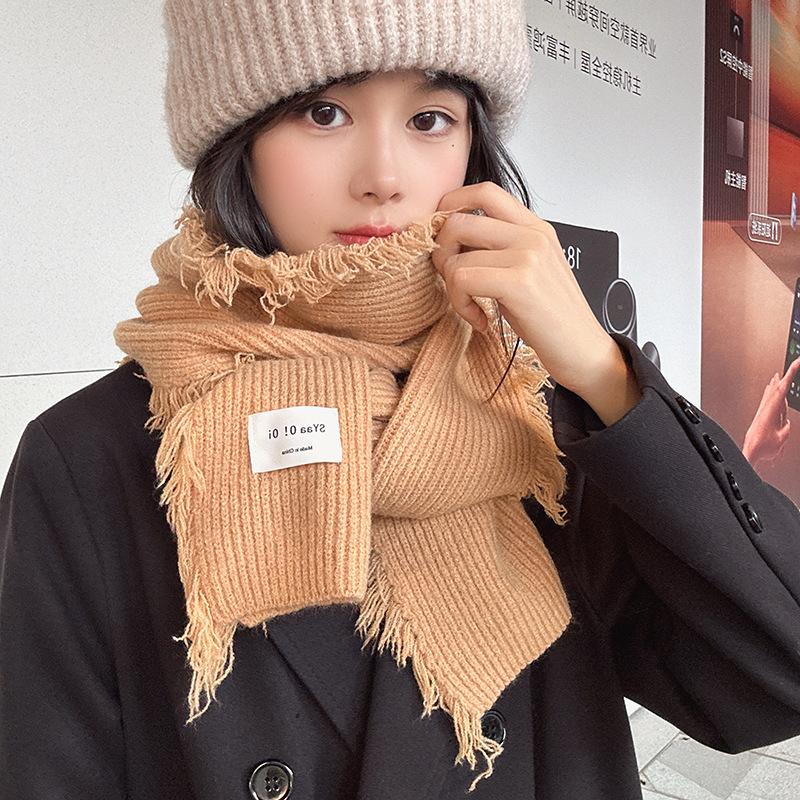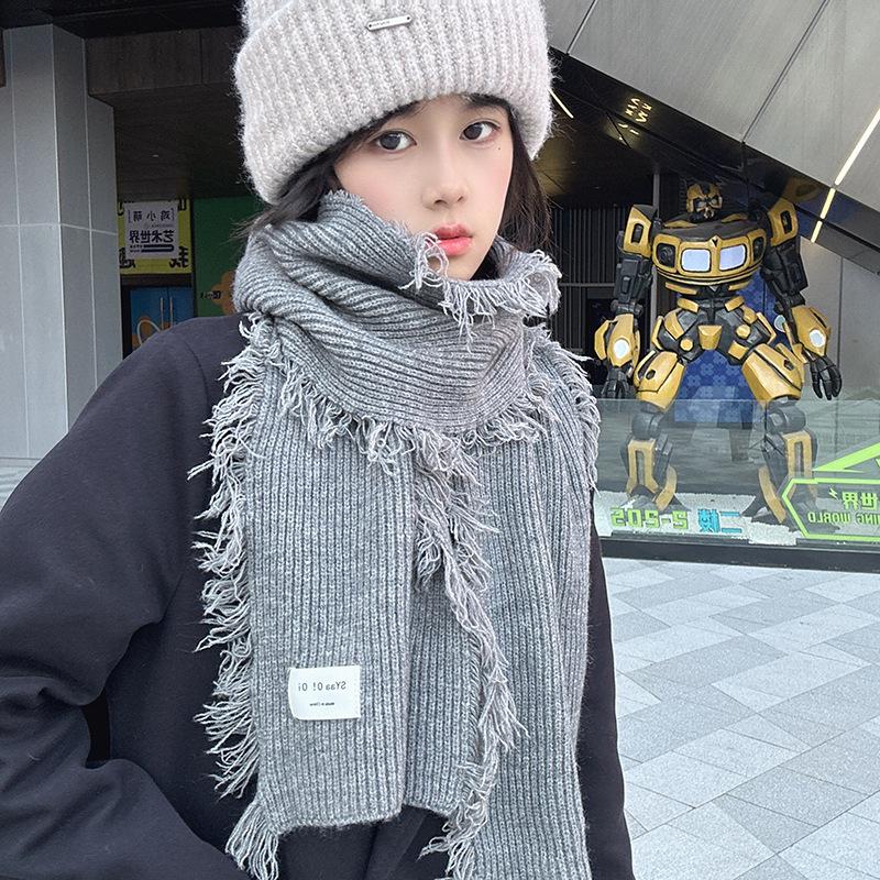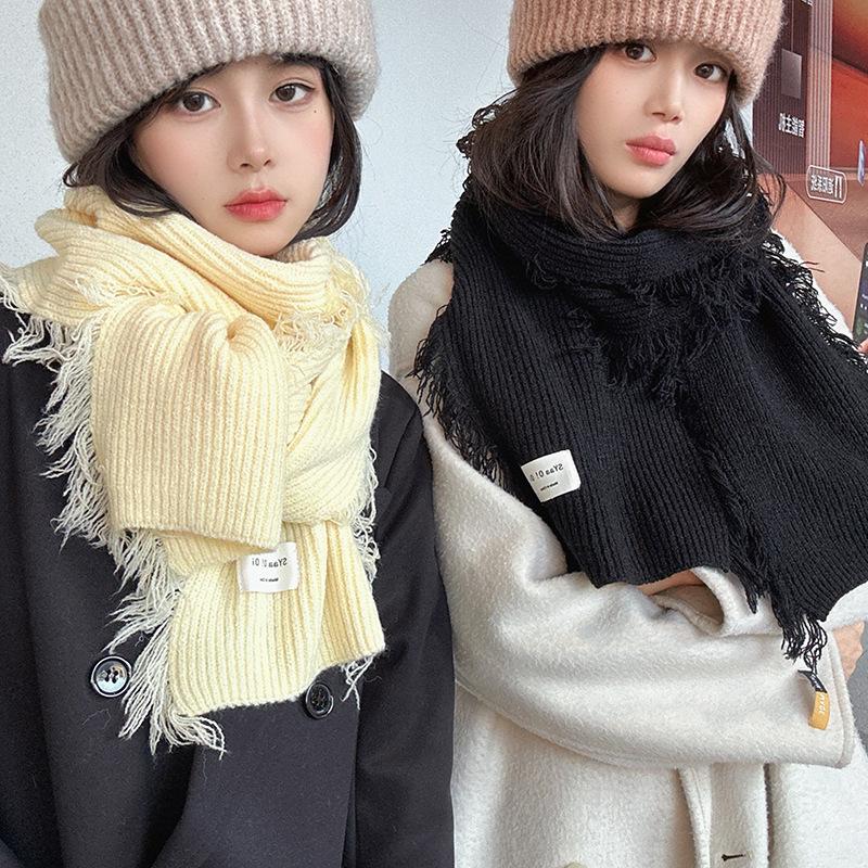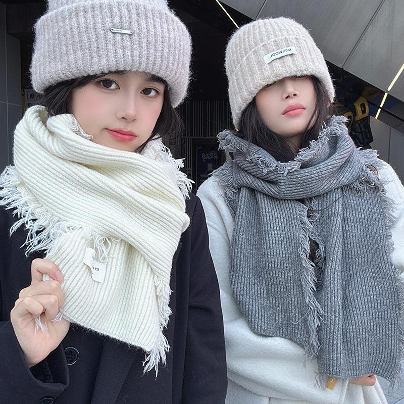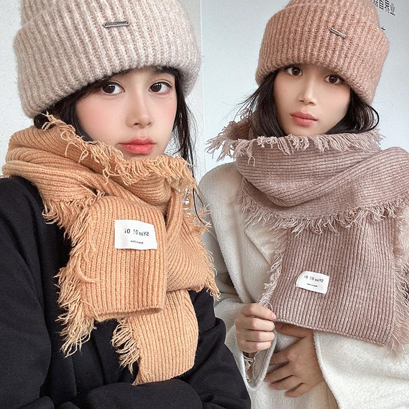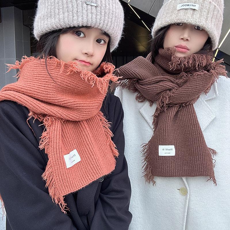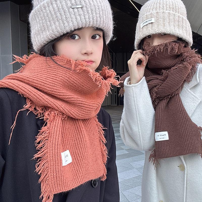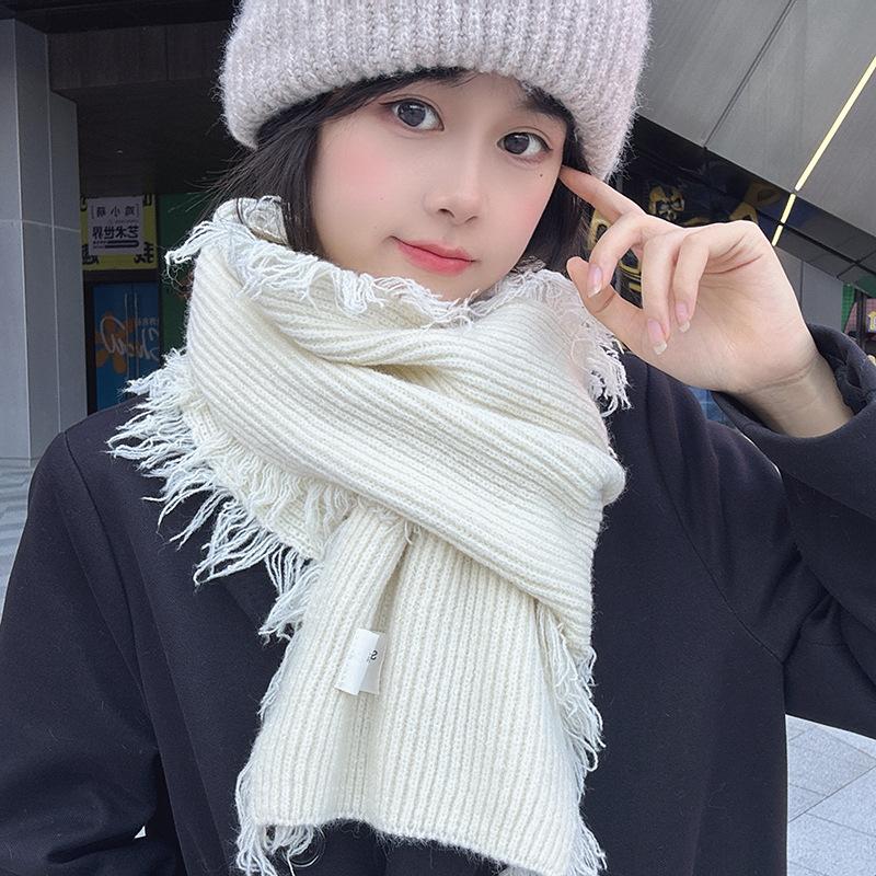 Estilo de diseñador ~ azul oscuro azul claro * bufanda versátil de color sólido estilo coreano deshilachado bufanda cálida gruesa otoño e invierno