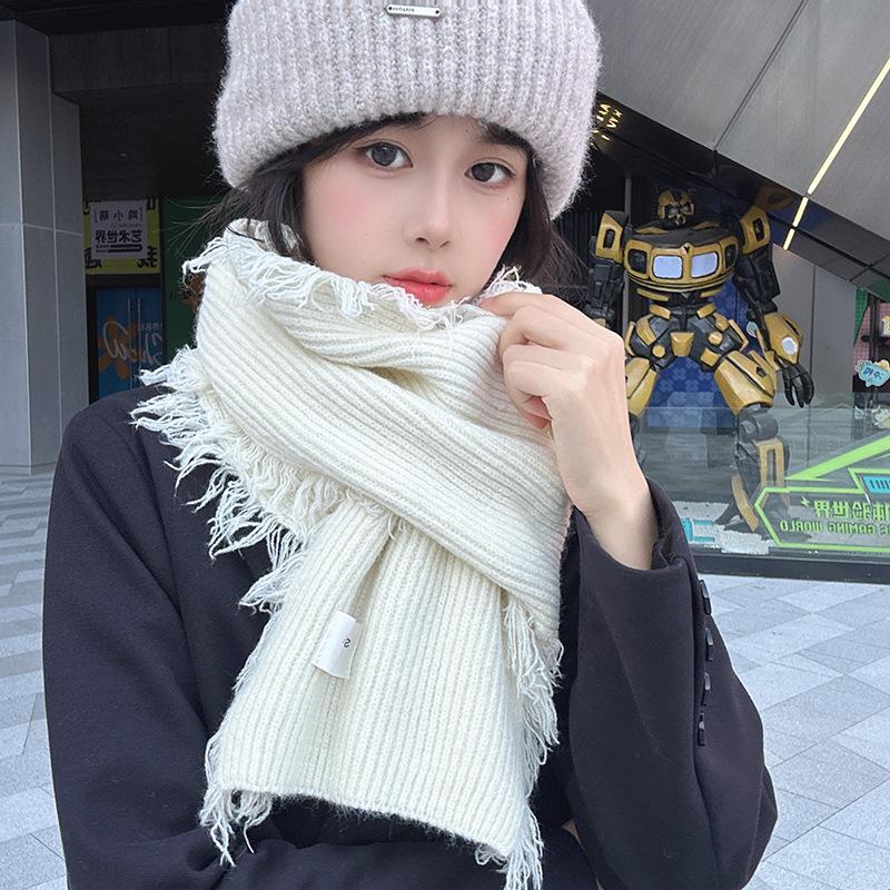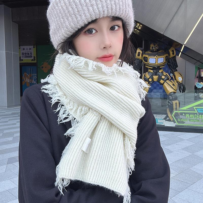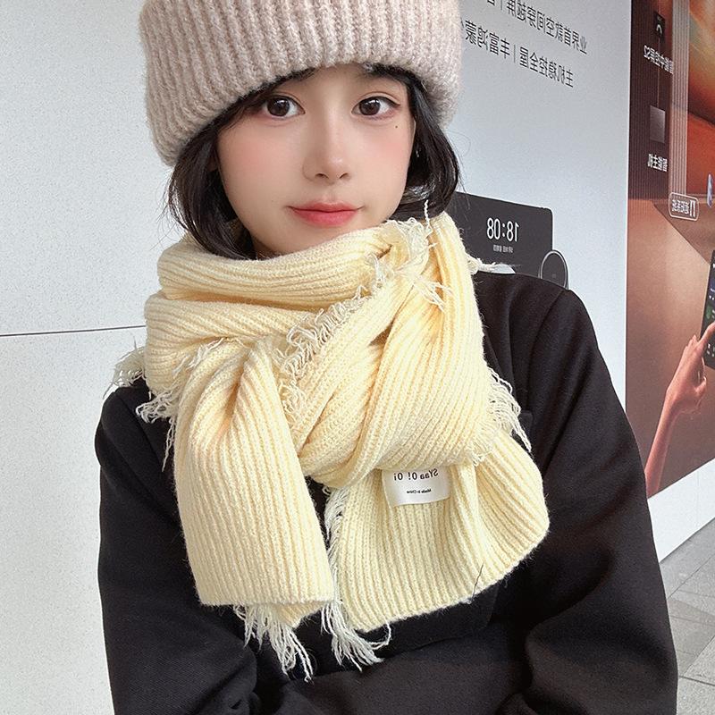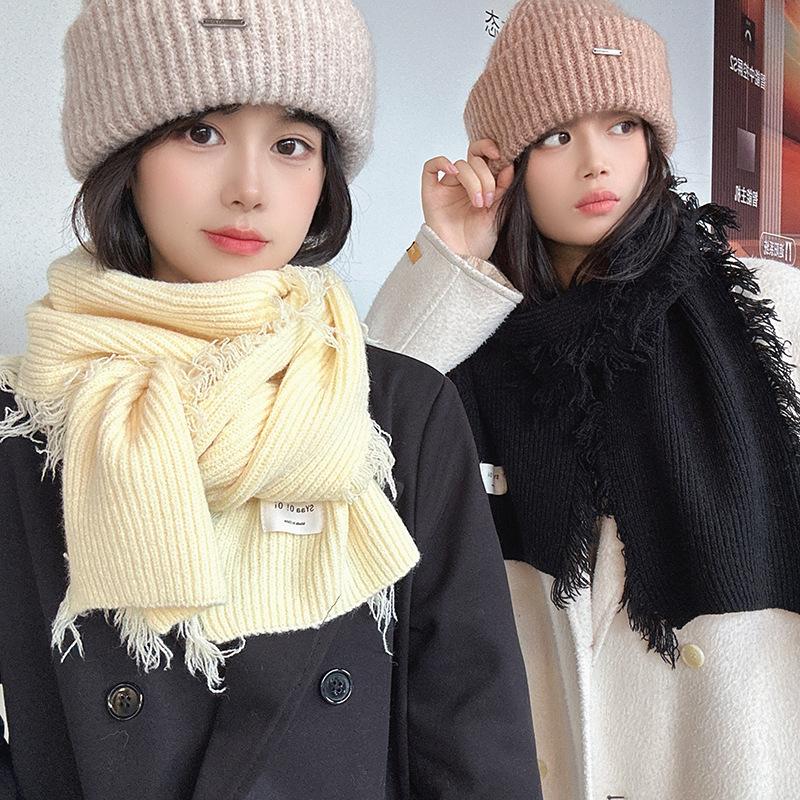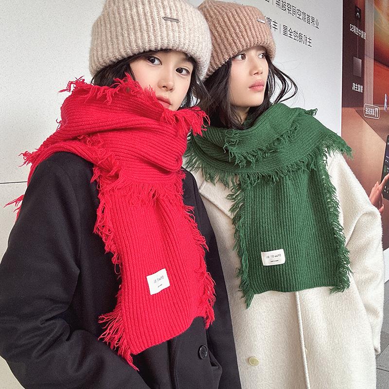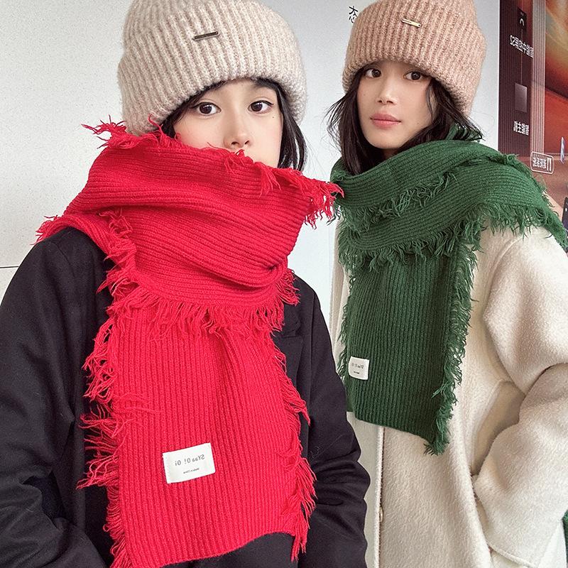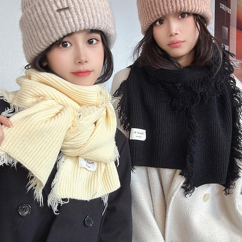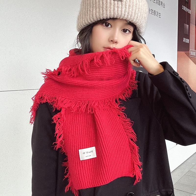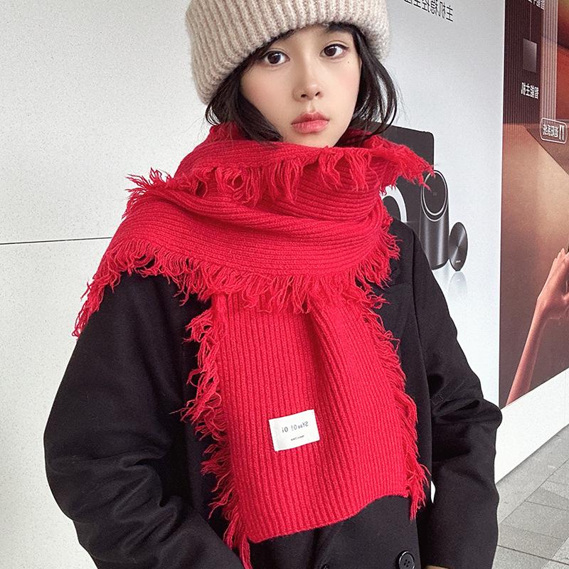Estilo de diseñador ~ azul oscuro azul claro * bufanda versátil de color sólido estilo coreano deshilachado bufanda cálida gruesa otoño e invierno