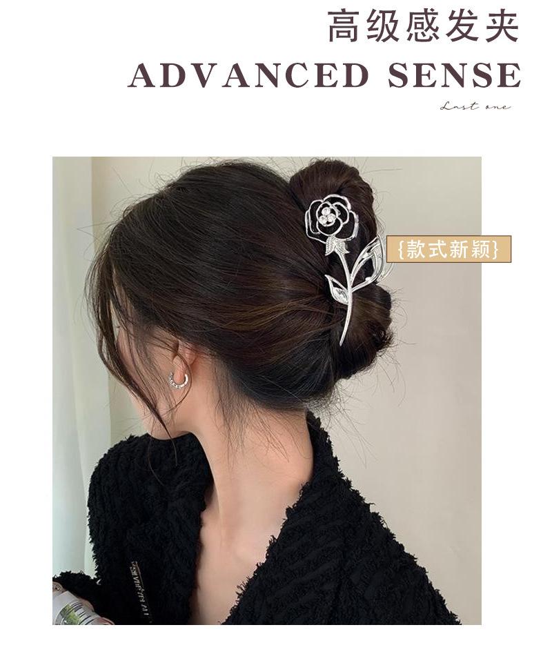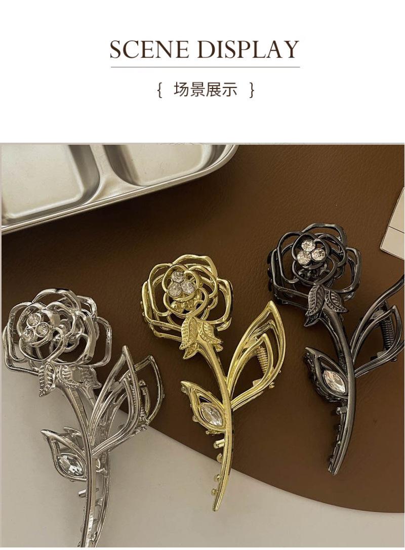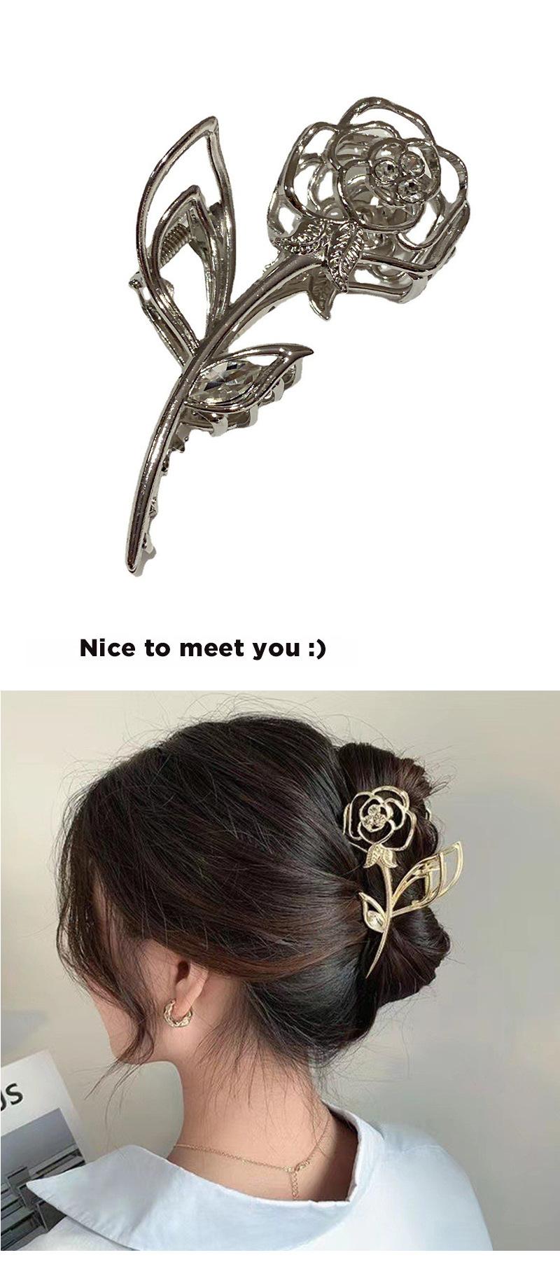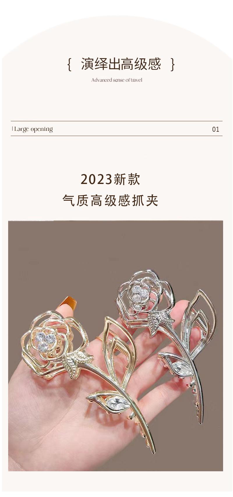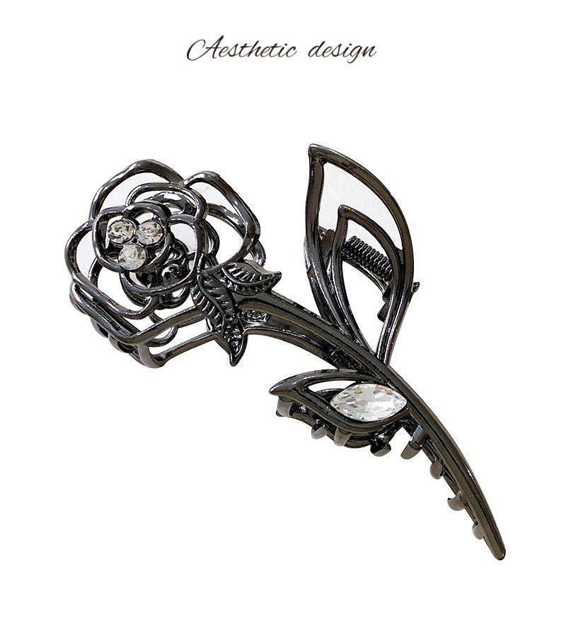 Pinza para el cabello elegante con flor de rosa para damas europeas y americanas, metal hueco grande, moda para la parte trasera de la cabeza
