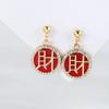 18K gold: Fortune tag necklace, Silver Needle +18K gold: Fortune tag earrings, 18K gold: fu character tag neck...