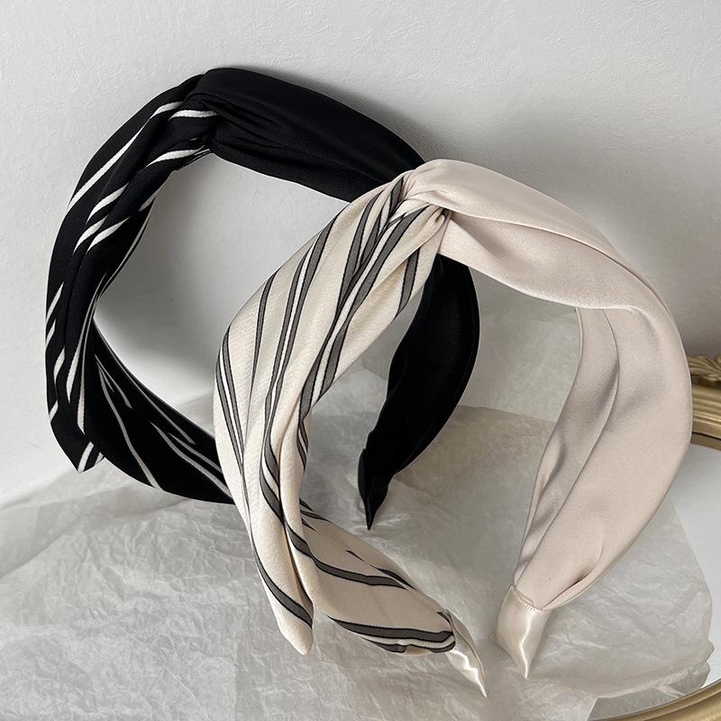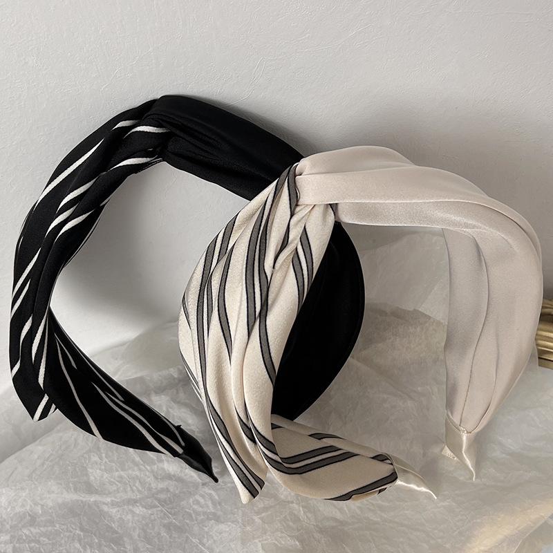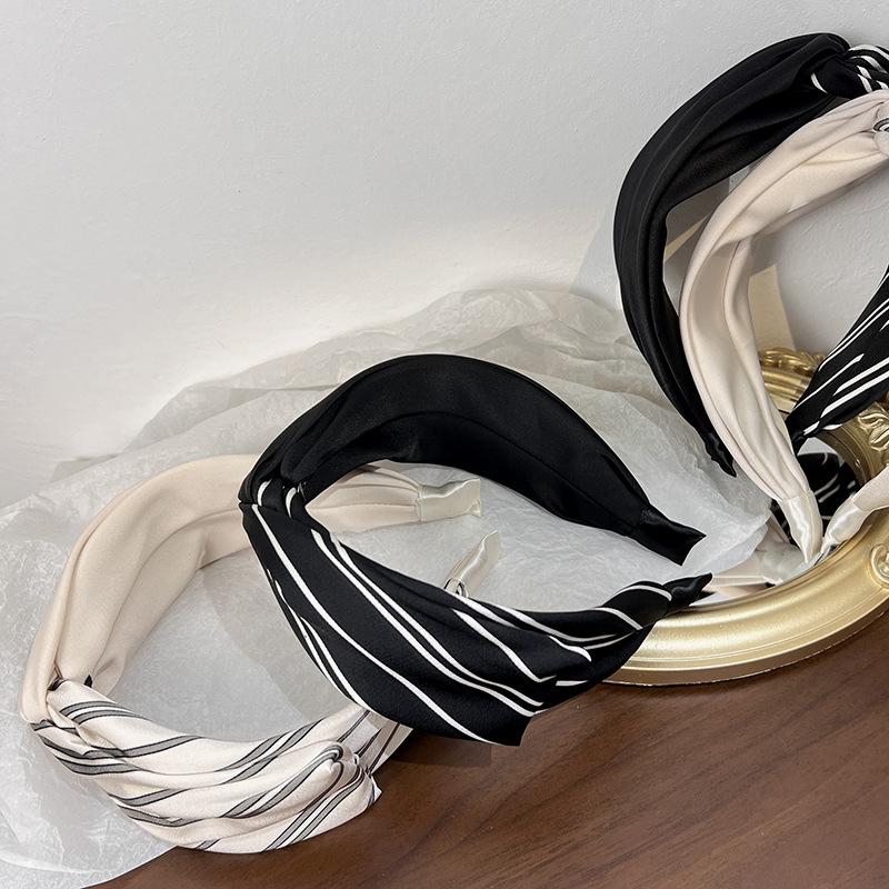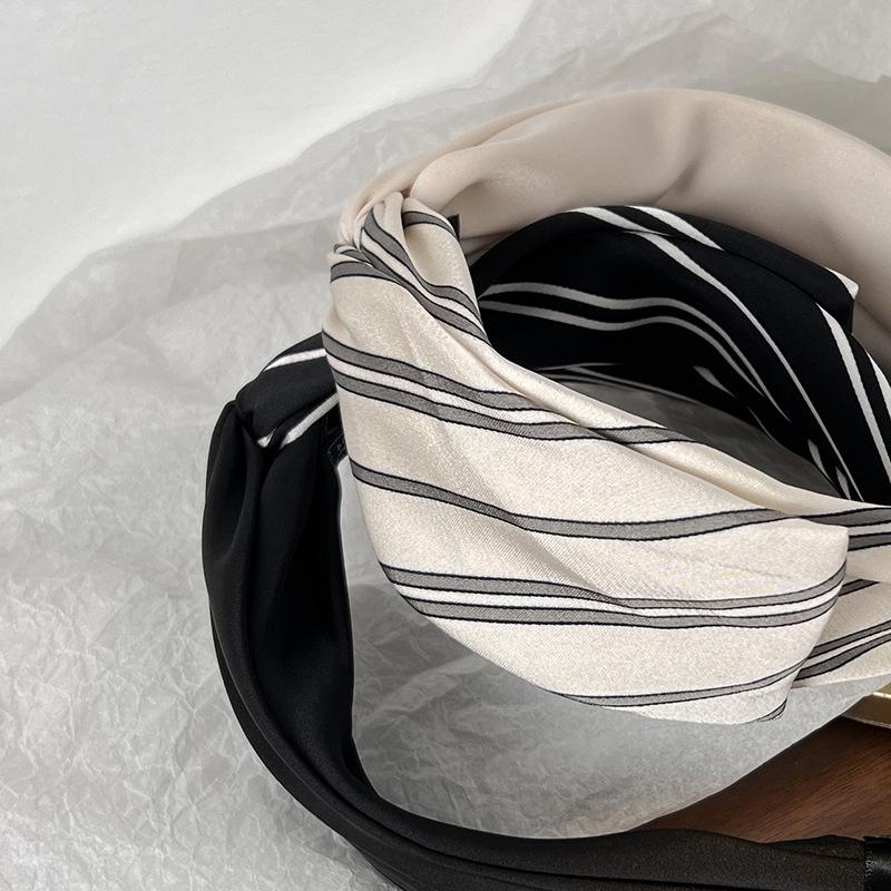 Diadema Francés Nuevo Estilo de Alta Gama Rayas Cruzadas Color Bloqueado Diadema Ancha Pasador Negro Elegante Accesorios Coreanos para el Cabello