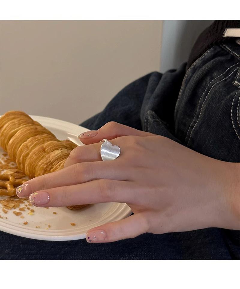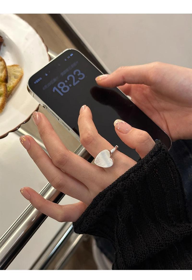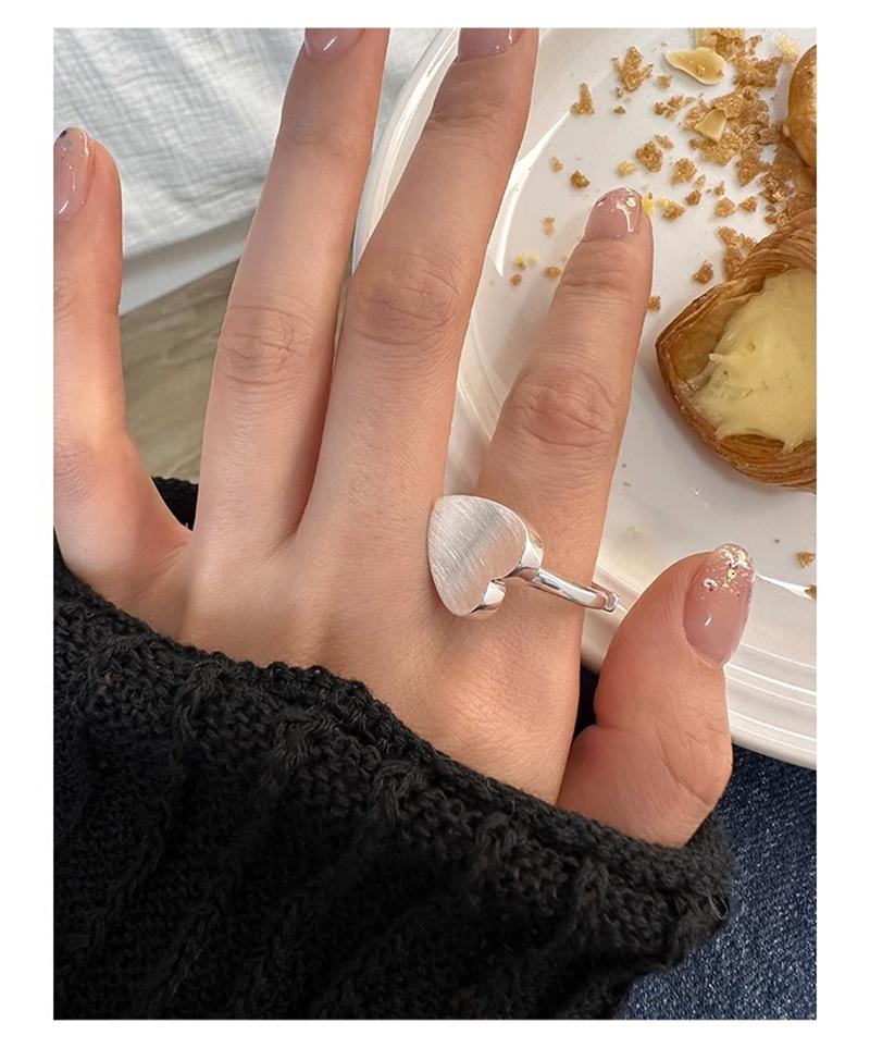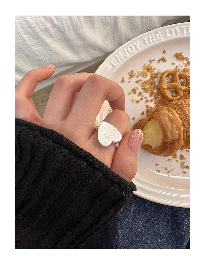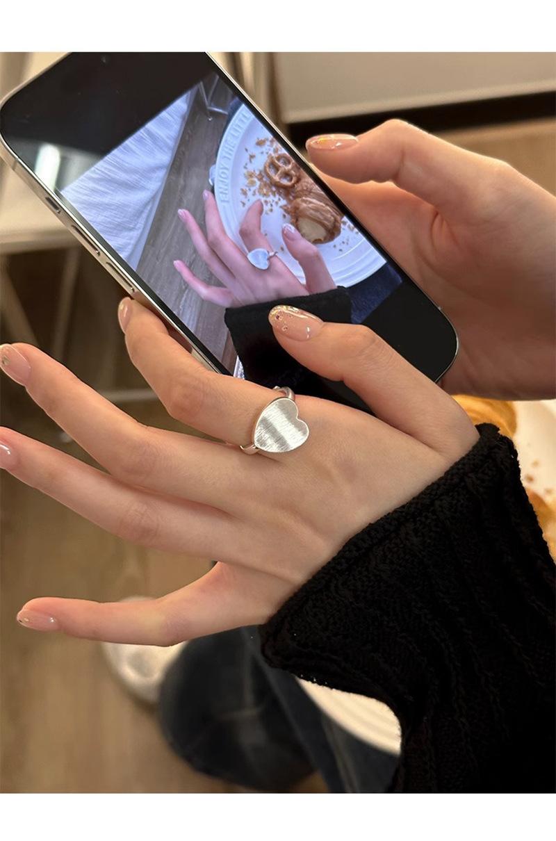 Anillo de Amor para Mujer Moda de Verano Anillo Personalizado Cepillado en Forma de Corazón Simple Nicho Abierto Ajustable Anillo de Dedo Índice Trendy