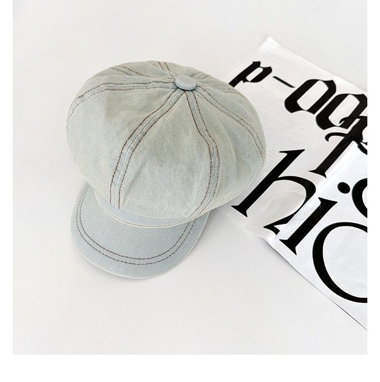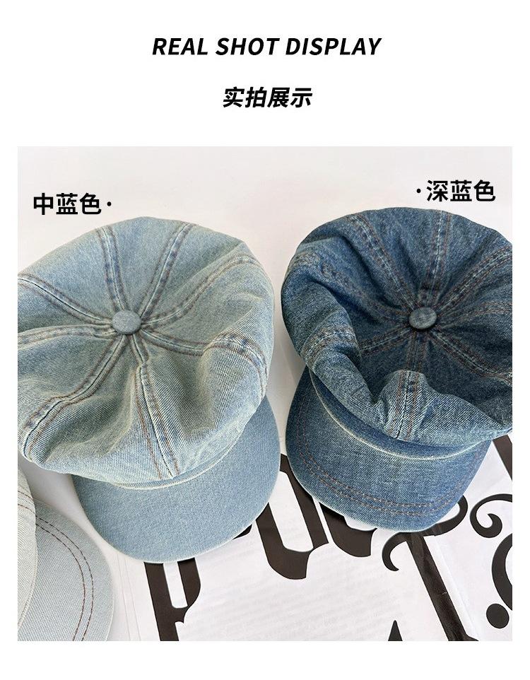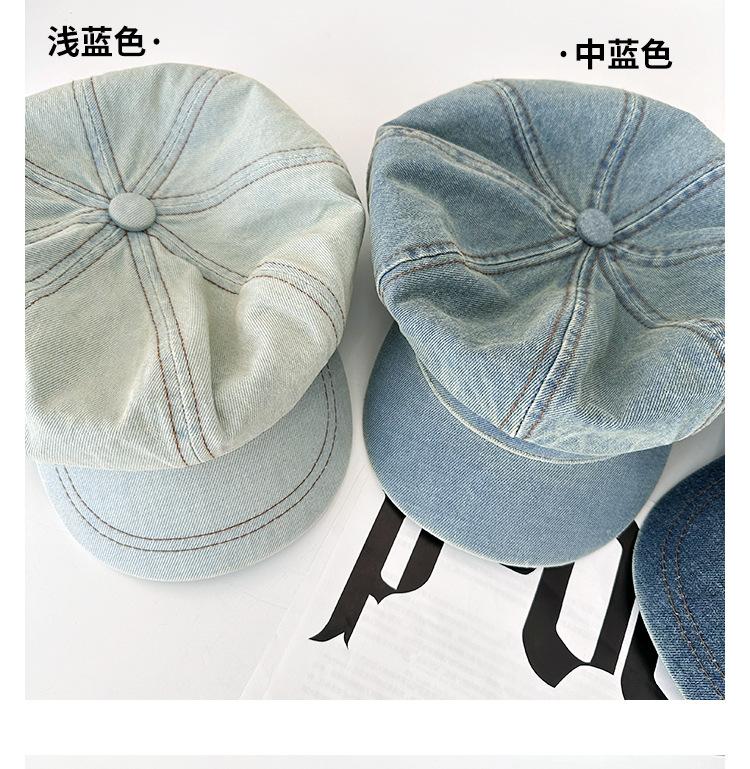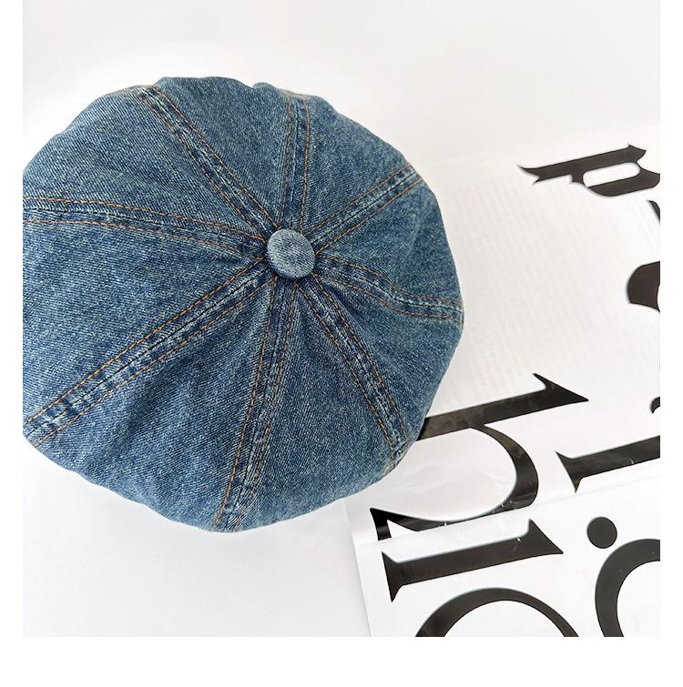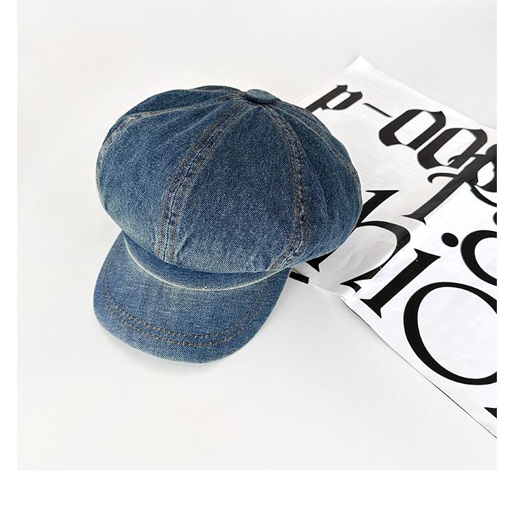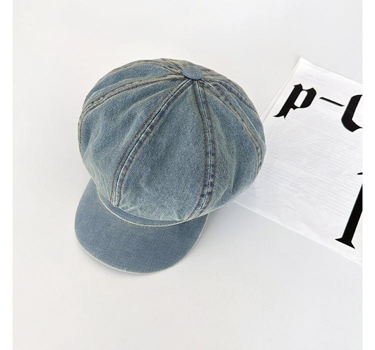 Boina de mezclilla retro japonesa desgastada para mujer, que hace que la cara se vea pequeña, combina con todo, sombrero de pintor artístico octogonal, sombrero de repartidor de periódicos, moda