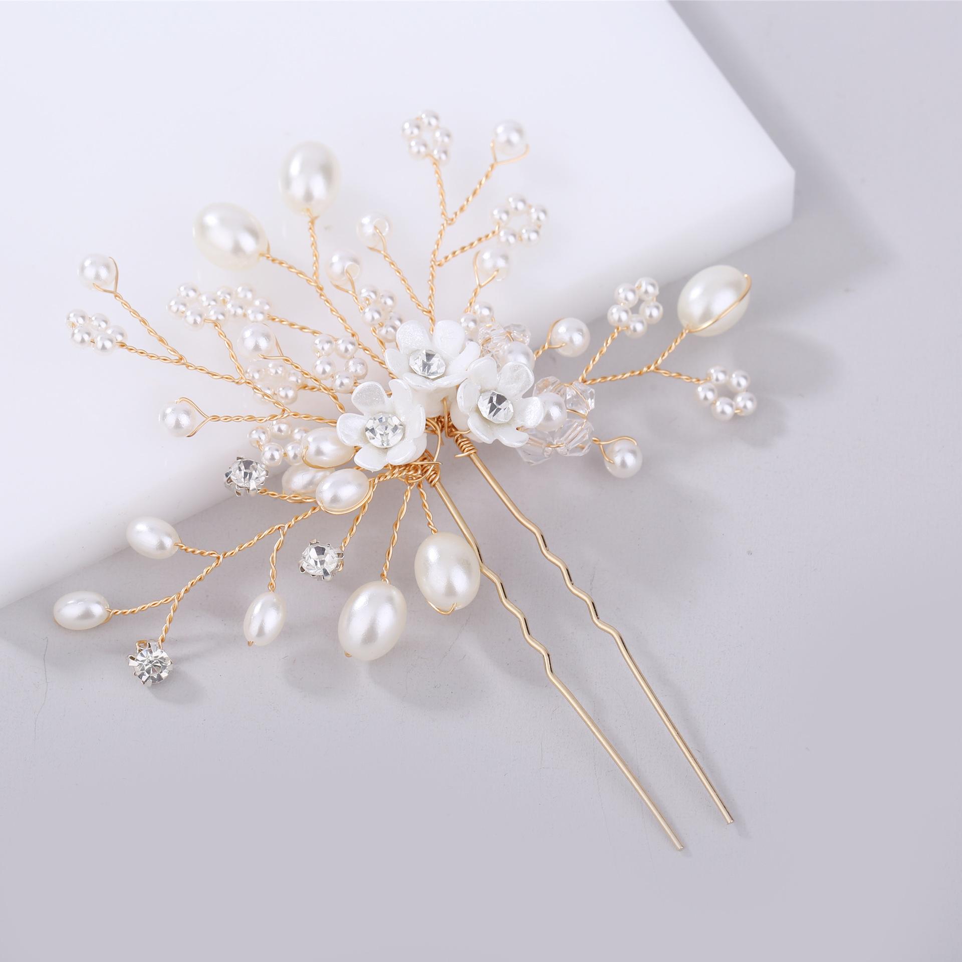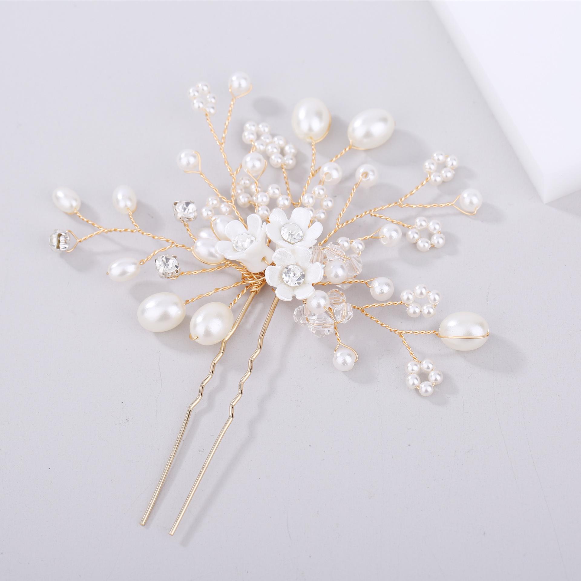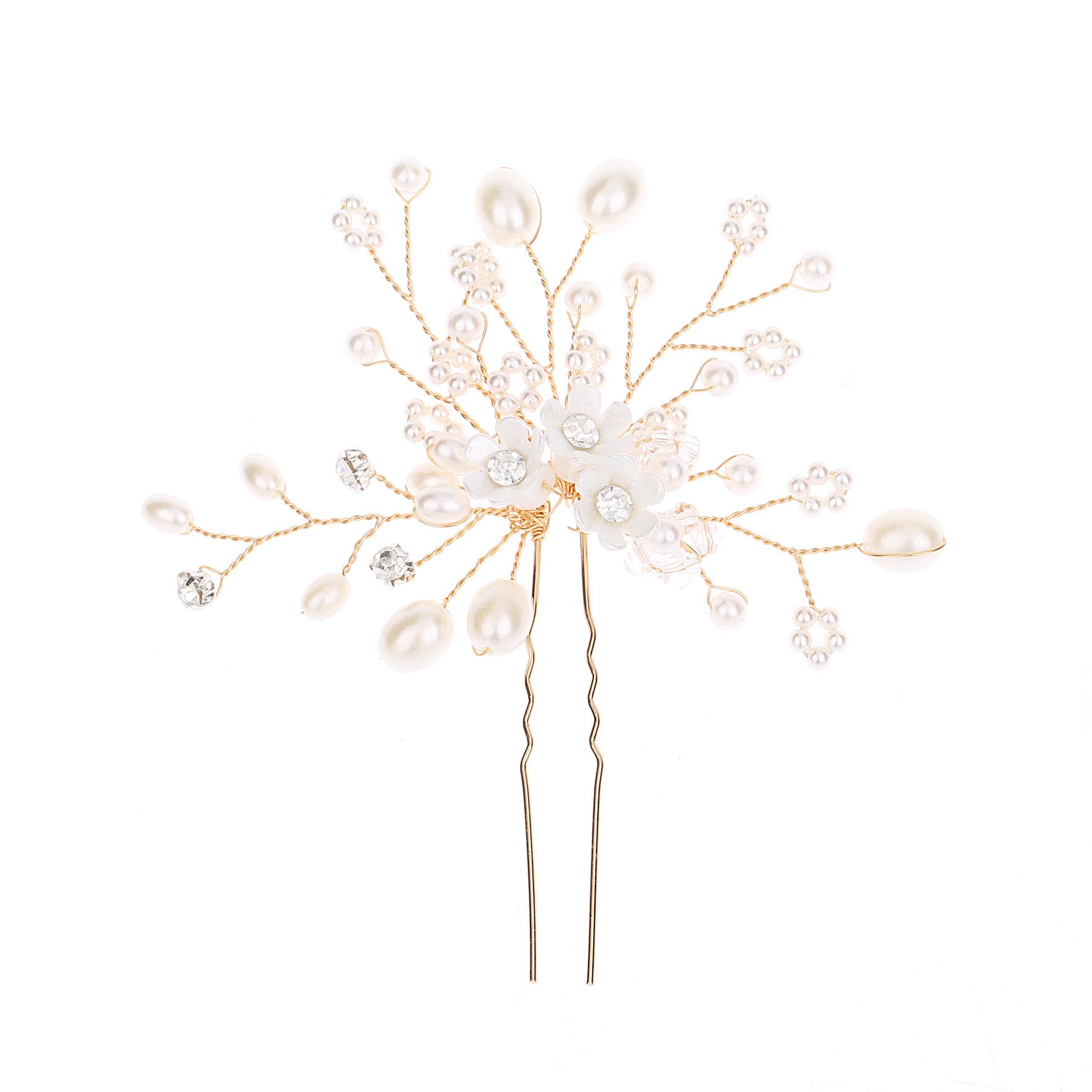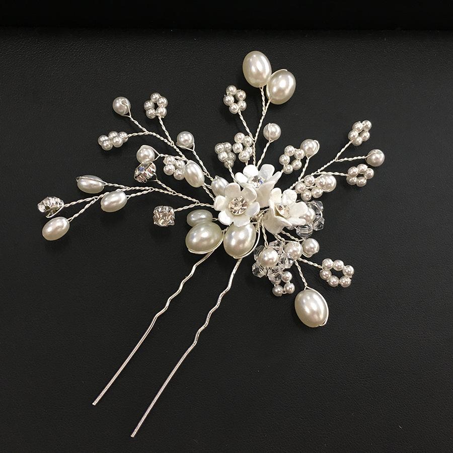 Joyería nupcial tocado Europa y Estados Unidos transfronterizo hecho a mano horquilla de perlas pedrería cuentas de arroz accesorios para el cabello accesorios de boda venta al por mayor